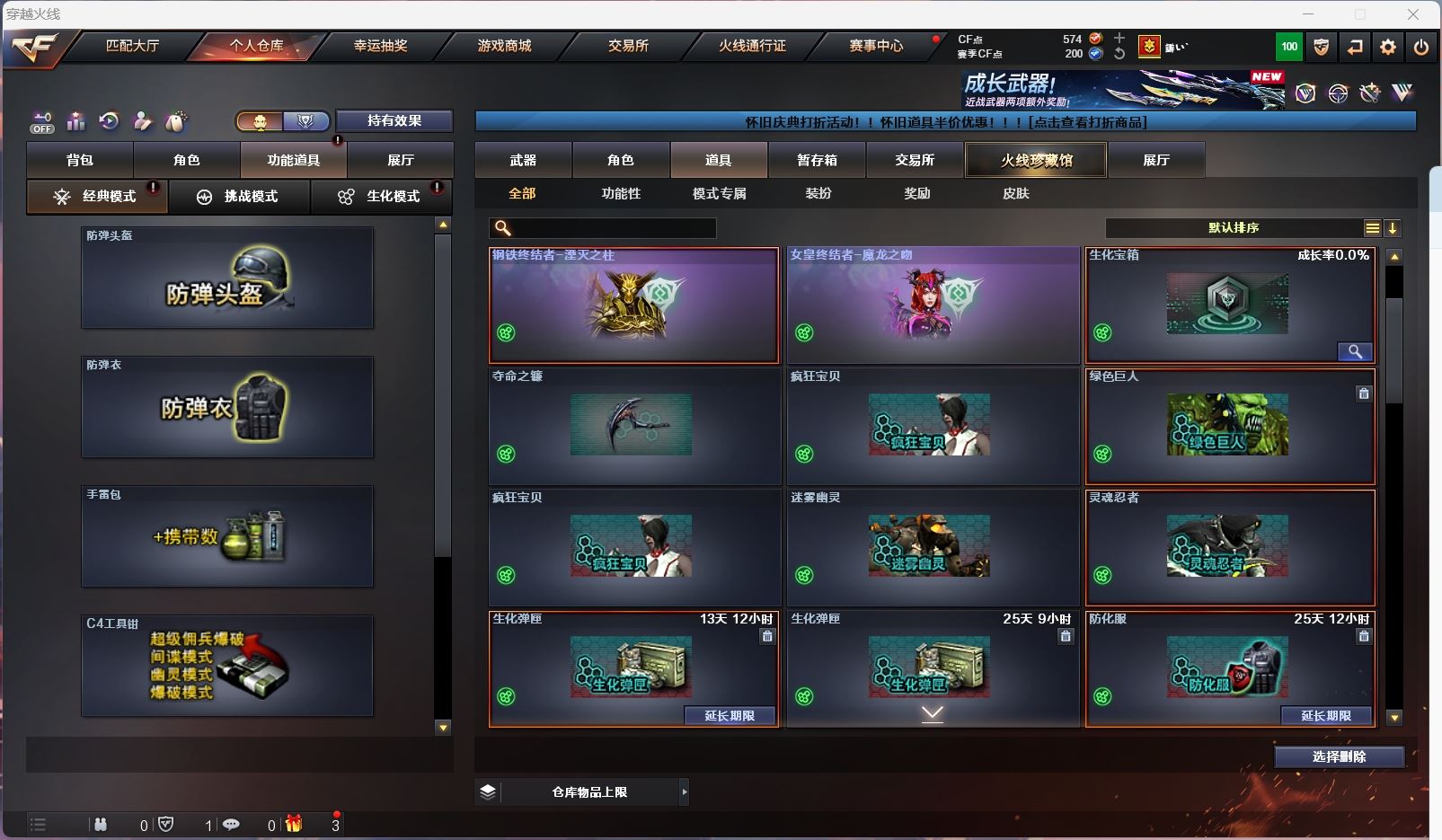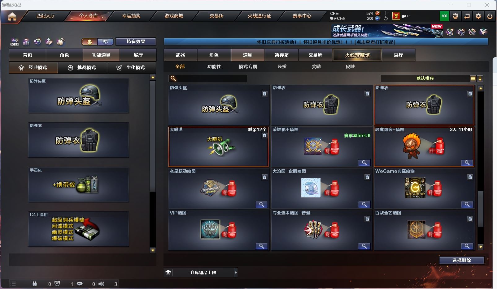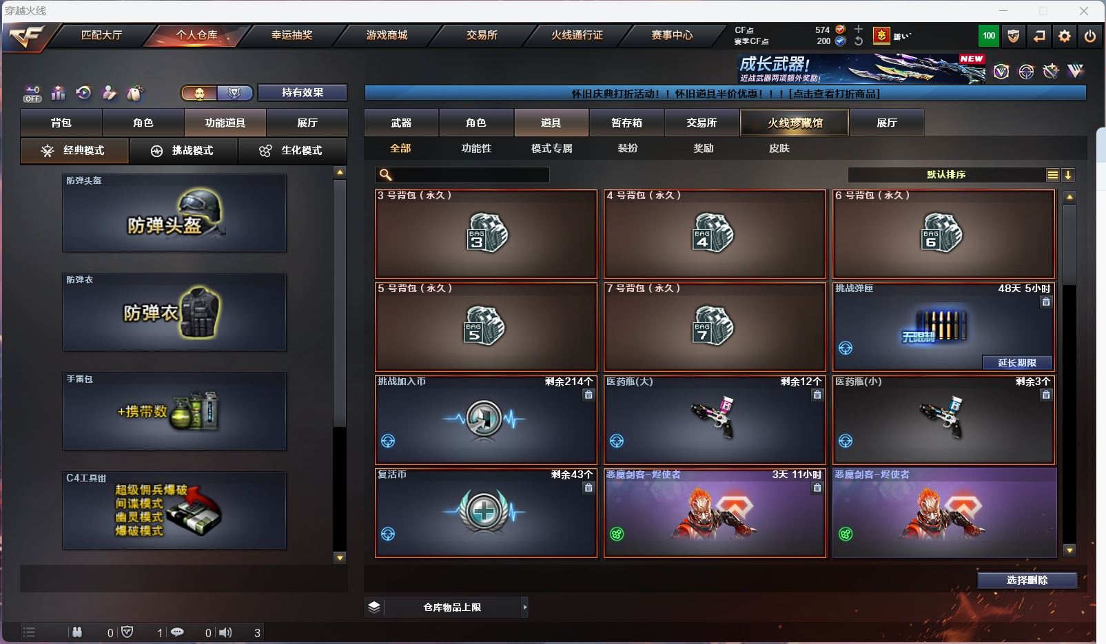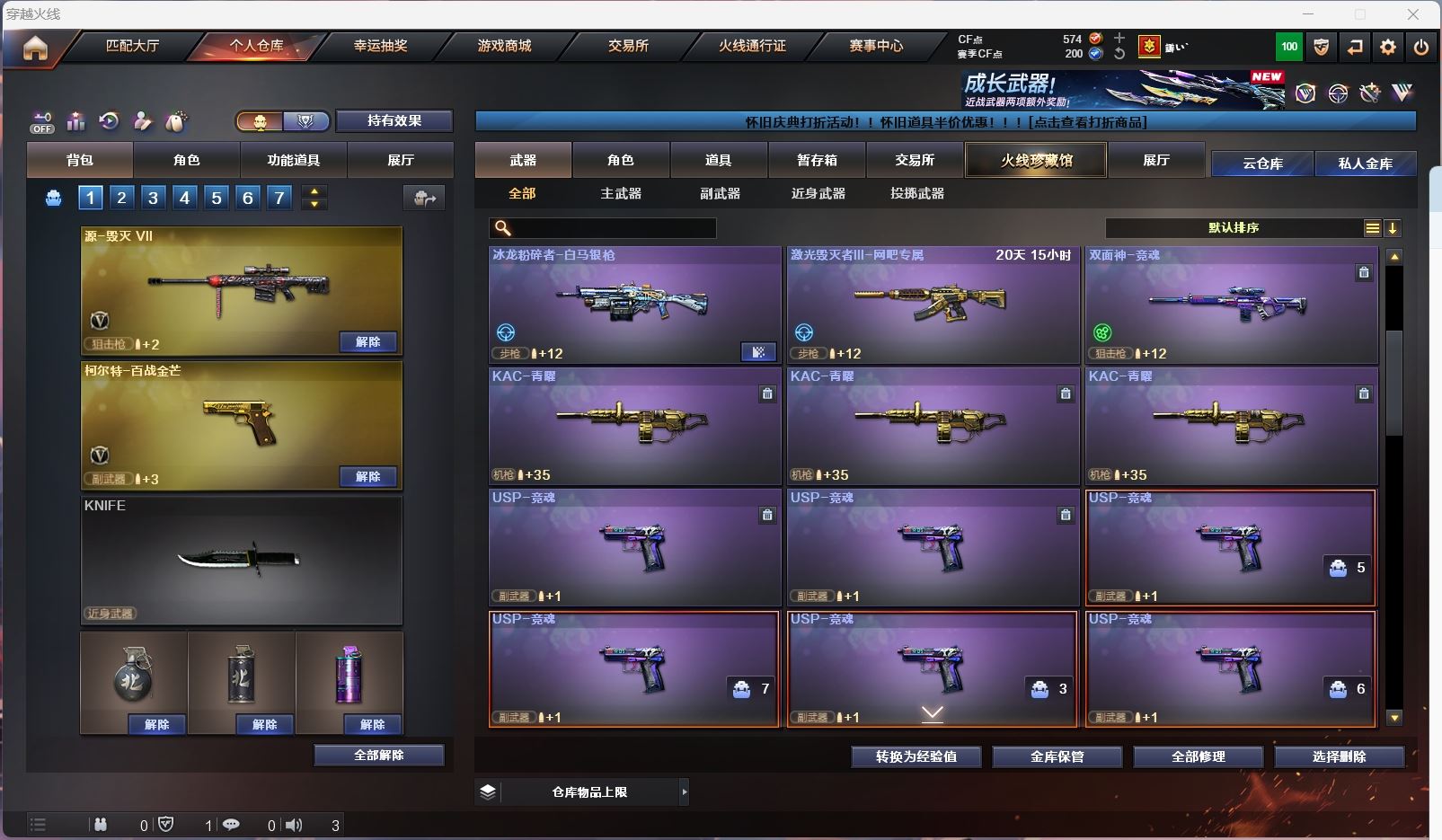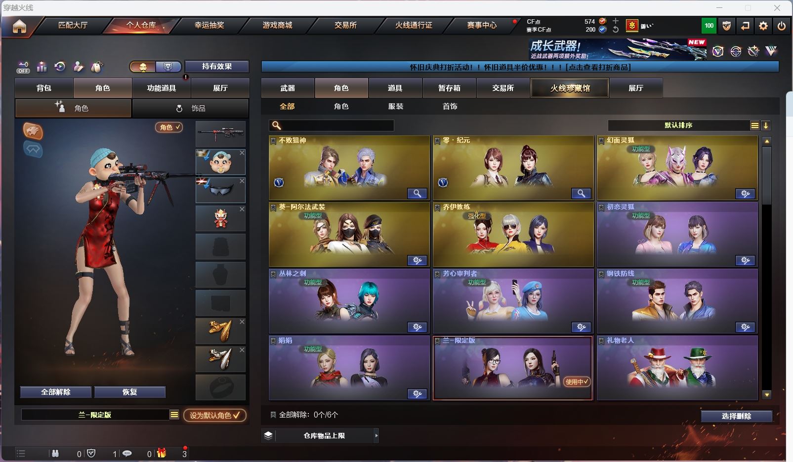 hmc AK030587山西一区7v【白虎电玩 】【武器:朱雀 炼狱 】【手枪:柯尔特百战金芒】【刀具:麒麟刺 屠龙】【角色:不败狙神 零纪元 幻面灵狐 】----更多炫彩背包/光效/名片/武器具体看图!截图展示段位不代实际段位,赛季更新等不可抗拒因素发生变化、时限道具不保证所剩时间、标题未写送点券默认不送】【主播担保+安全至上+性价比 买号卖号只选金牌商家一左友】