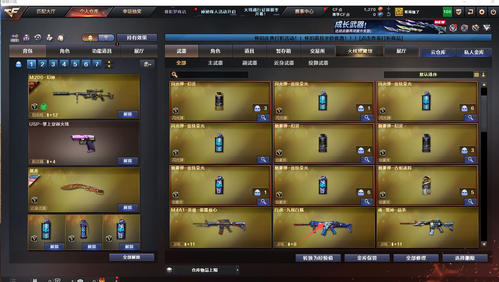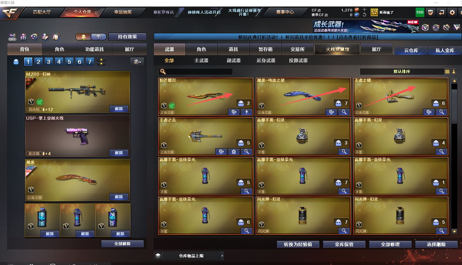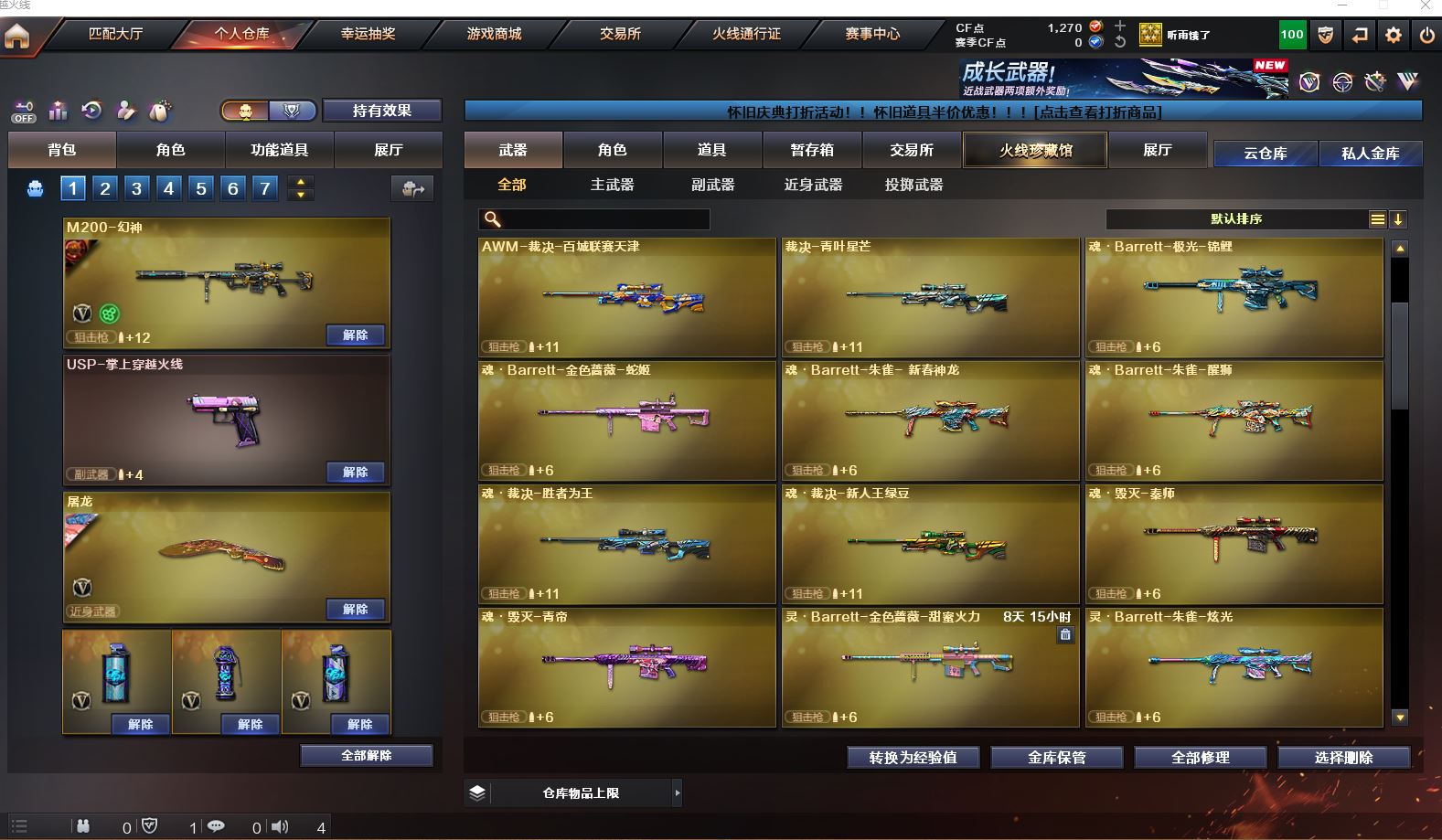 【Lv.100 元帅】VIP4 61V,3王者,2炫金,幻神青鹤/幻神丹凤/毁灭英雄计划 /毁灭虹光风暴 /毁灭黑大圣/极光高能霹雳 /天龙CFSTAR/裁决凤灵/火麒麟CFSTAR/火麒麟心动糖果/研/幻面灵狐/M200-幻神/Barrett-毁灭/Barrett-极光/Barrett-暗月传说/王者星神-觉醒版/M200-幻神音效卡/M4A1-苍鸣雷神音效卡/M4A1-黑骑士音效卡/Barrett-毁灭音效卡(截图展示段位不代表实际段位,如赛季更新等不可抗拒因素发生变化、时限道具不保证所剩时间,其余道具看截图或咨询客服)