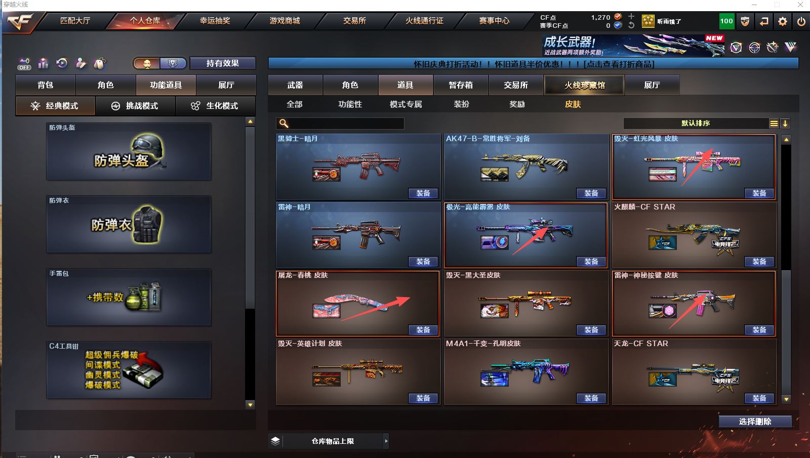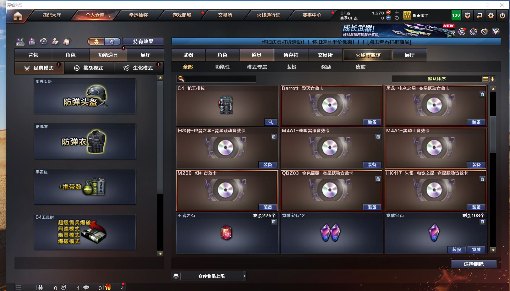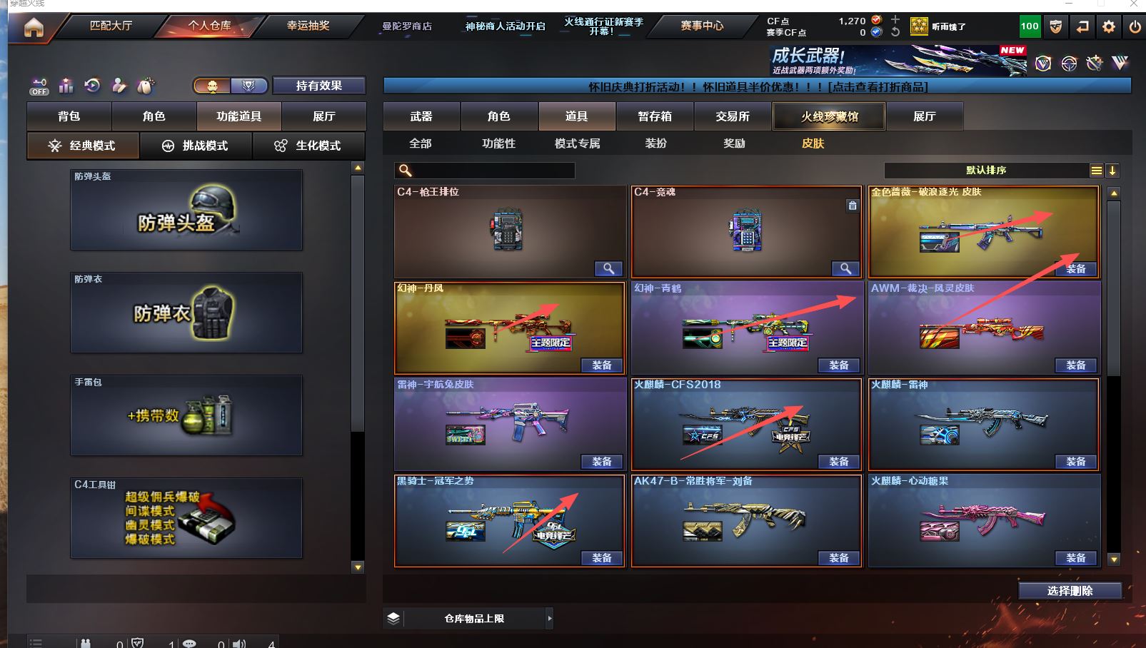 【Lv.100 元帅】VIP4 61V,3王者,2炫金,幻神青鹤/幻神丹凤/毁灭英雄计划 /毁灭虹光风暴 /毁灭黑大圣/极光高能霹雳 /天龙CFSTAR/裁决凤灵/火麒麟CFSTAR/火麒麟心动糖果/研/幻面灵狐/M200-幻神/Barrett-毁灭/Barrett-极光/Barrett-暗月传说/王者星神-觉醒版/M200-幻神音效卡/M4A1-苍鸣雷神音效卡/M4A1-黑骑士音效卡/Barrett-毁灭音效卡(截图展示段位不代表实际段位,如赛季更新等不可抗拒因素发生变化、时限道具不保证所剩时间,其余道具看截图或咨询客服)