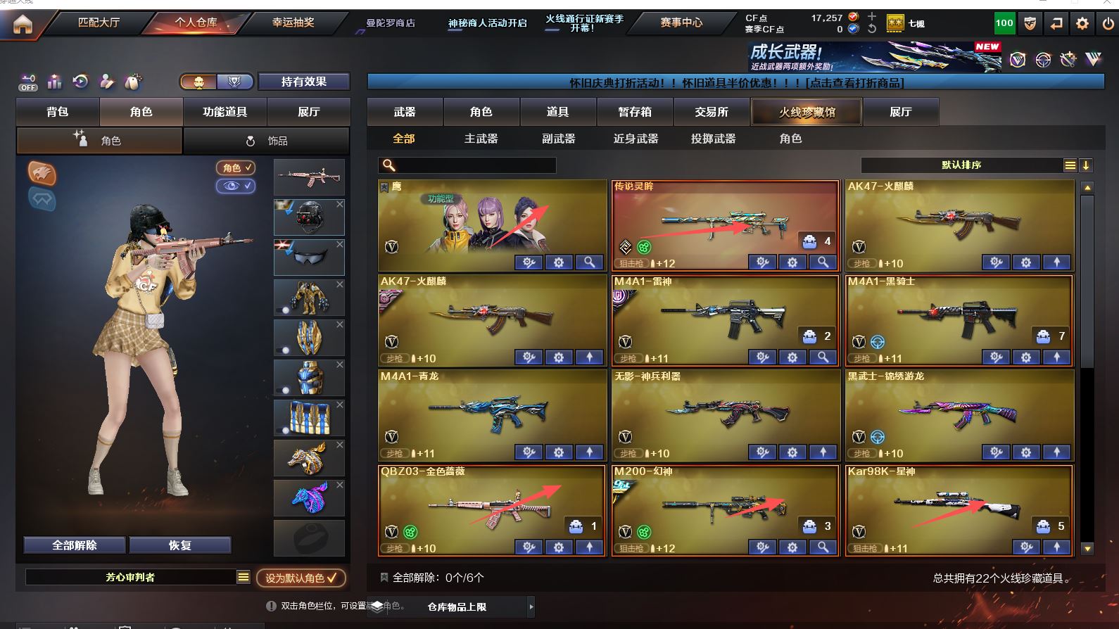 Lv.86 少将5】VIP6 22V,1王者,传说灵眸/幻神冠军之幻/幻神降龙/火麒麟心动糖果/雷神R.LGDCFPLS18冠军/雷神脉冲核心/麒麟刺荣耀世冠白鲨/鹰/M200-幻神/Kar98K-星神/M4A1-青龙/M4A1-雷神/M4A1-黑骑士/(截图展示段位不代表实际段位,如赛季更新等不可抗拒因素发生变化、时限道具不保证所剩时间,其余道具看截图或咨询客服)