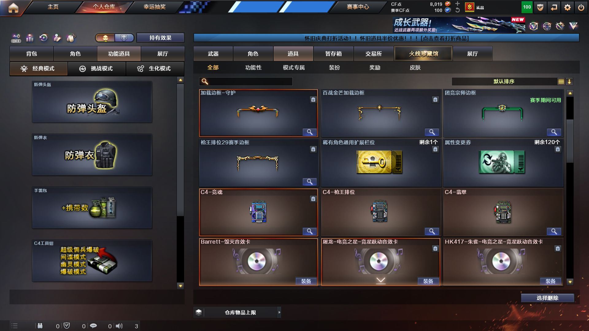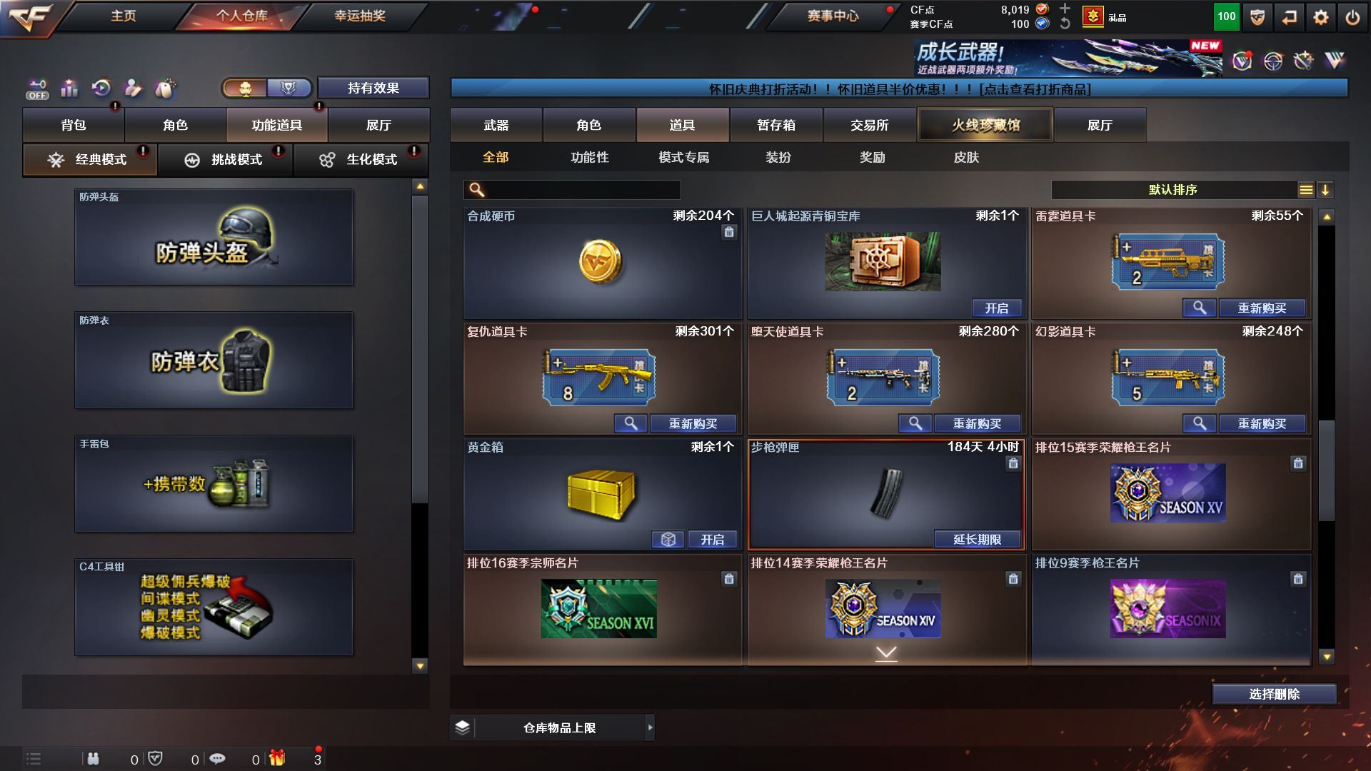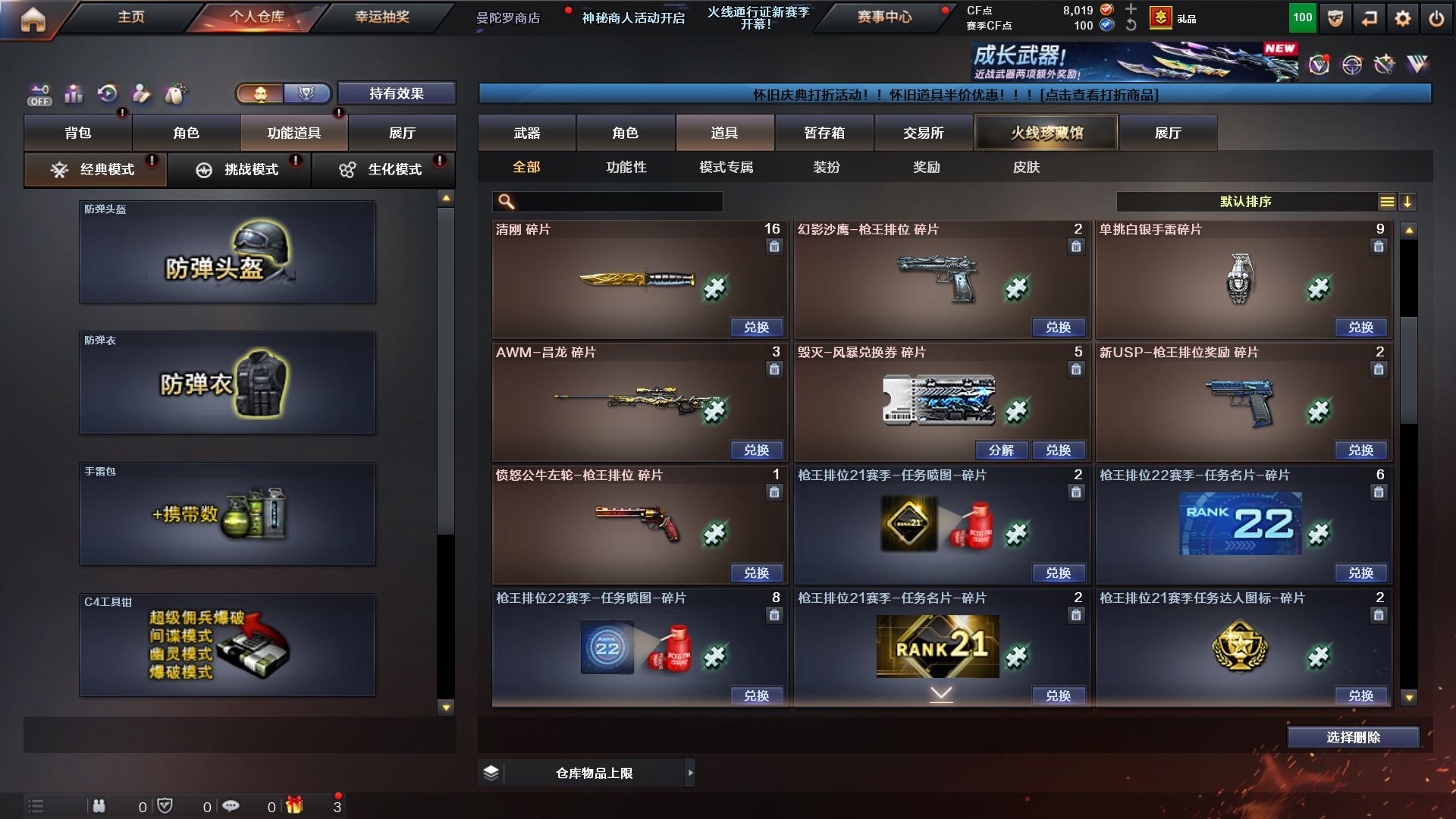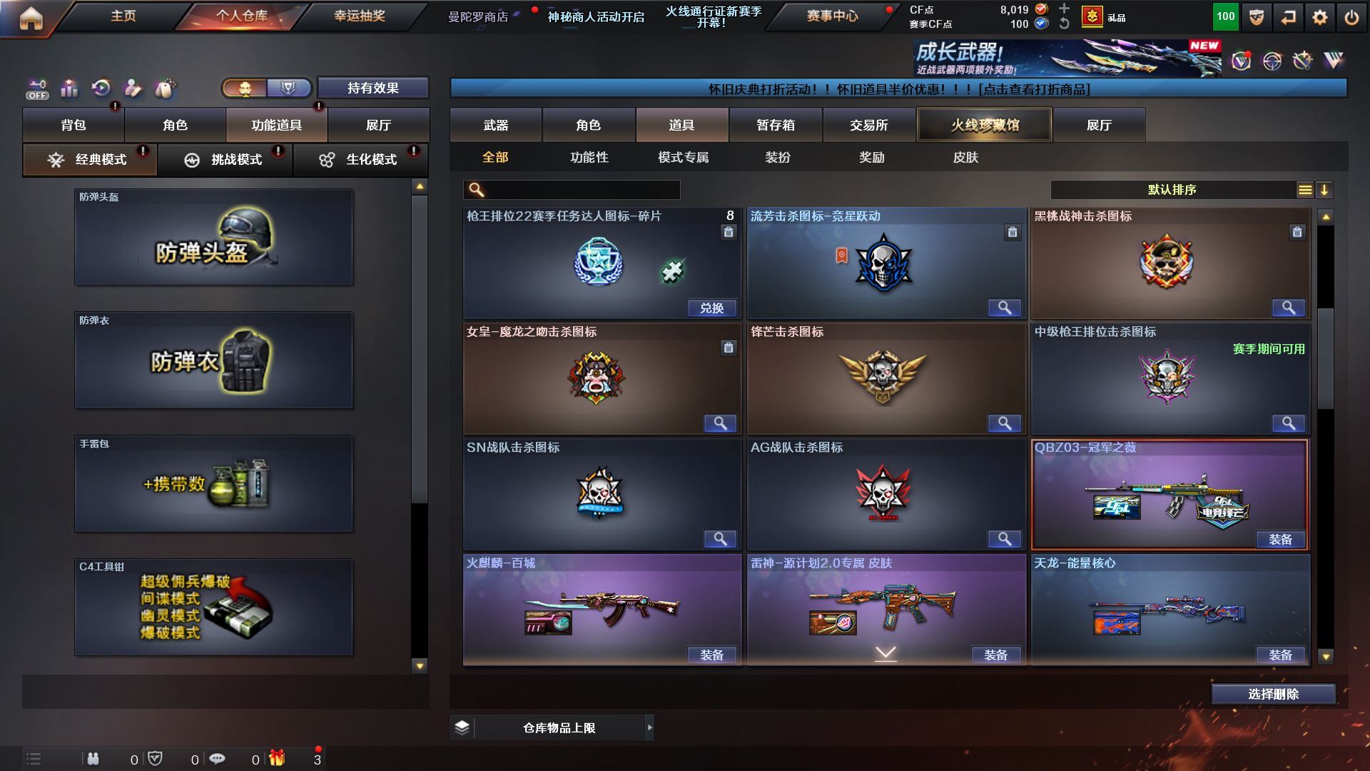 r51941 可二次 广西一区 可排位【102V】【热门武器】:QBZ03-金色蔷薇*2,M200-幻神,死亡之眼,M4A1-黑骑士,汤姆逊-烈龙*5,RPK-盘龙*5,加特林-炼狱*5,沙鹰-修罗*6【王者炫金武器】:超新星-悦享,王者之势,王者之武,王者之魄,王者之怒,王者之力,炼狱-悦蓝,炫金毁灭*3【音效卡】:Barrett-毁灭音效卡,炼狱-百战金芒-庆典舞曲音效卡【皮肤】:QBZ03-冠军之薇,雷神-能量核心*4,雷神-荣耀之魄,雷神-源计划2.0专属 皮肤,M4A1-再燃火线,火麒麟-雷神,火麒麟-百城,火麒麟-心动糖果,毁灭-暗月*2,毁灭-荣耀之怒,毁灭-英雄计划 皮肤,黑龙-暗月,黑骑士-暗月*2,无影-能量核心,天启-暗月*2,天龙-秘银*2,天龙-能量核心,极光-能量核心,天神-暗月*3,屠龙-荣耀之锋*2,轻型军用手斧-再燃火线【角色】:零,葵,樱,瞳,电竞教官-云悠悠,王者-零,狐影,初恋灵狐,风暴女,兰-新年限定,灵狐者-黄金海岸,龙儿,龙儿-小淘气,潘多拉-X,潘多拉-甜心教官,蛇姬,斯沃特-X,蜀雪,新娜塔莎,影武者-X,职业选手,海豹突击队【人偶武器】:迷你裂空之翼,夺魂,深渊终结者手雷,迷你深渊冰龙-王绿豆【暴走生化】:死亡之眼,超级对讲机【挑战大师】:冰龙粉碎者-白马银枪*2,激光毁灭者III-白马银枪,神圣爆裂者-末日III【英雄级武器】:M4A1-千变*2,AK47-火麒麟*3,M4A1-黑龙*2,M4A1-雷神*6,M4A1-黑骑士,AK47-无影*3,M4A1-死神*2,AK47-黑武士,AN94-超新星,M4A1-武圣,无影-神兵利器,黑武士-锦绣游龙,M4A1-玫瑰精灵,QBZ03-金色蔷薇*2,AK-47-猩红传说,AWM-天龙*2,Barrett-毁灭,Barrett-极光*6,AWM-裁决,M200-幻神,Barrett-金色蔷薇*2,RPK-盘龙*5,加特林-炼狱*5,炼狱-百战金芒,汤姆逊-烈龙*5,沙鹰-修罗*6,沙鹰-天神*2,Glock18-武圣,屠龙*6,龙啸*2,擎天*5,麒麟刺*5,麒麟刺-百战金芒,王者之击-觉醒版*2,高爆手雷-竞技荣光,高爆手雷-云龙,闪光弹-竞技荣光,烟雾弹-竞技荣光,烟雾弹-云龙,M4A1-赤狱骑士【道具】:EP战队炫彩背包,云山科技背包,炫彩背包,百战金芒炫彩背包,超级背包,哔哩哔哩名片,女皇终结者-魔龙之吻,救世主-黑桃战神,妩媚妖姬,绿色巨人,灵魂忍者,迷雾幽灵,夺命之镰,防化服*2,枪王排位28赛季金色流光,枪王排位29赛季金色流光,语音特效-盛典烟火,萌萌小葵表情,电玩兔兔表情,EP战队名片,防弹头盔*8,防弹衣*8,C4工具钳*7,手雷包*6【特殊枪械】:1黑骑士,5烈龙,5盘龙,5炼狱】各种道具详情看截图、低价出售找回包 赔、截图展示段位不代 表实际段位,如赛季更新等不可抗拒因素发生变化、时限道具不保证所剩时间、标题未写送点劵默认不送【卖号买号首选亿梦】