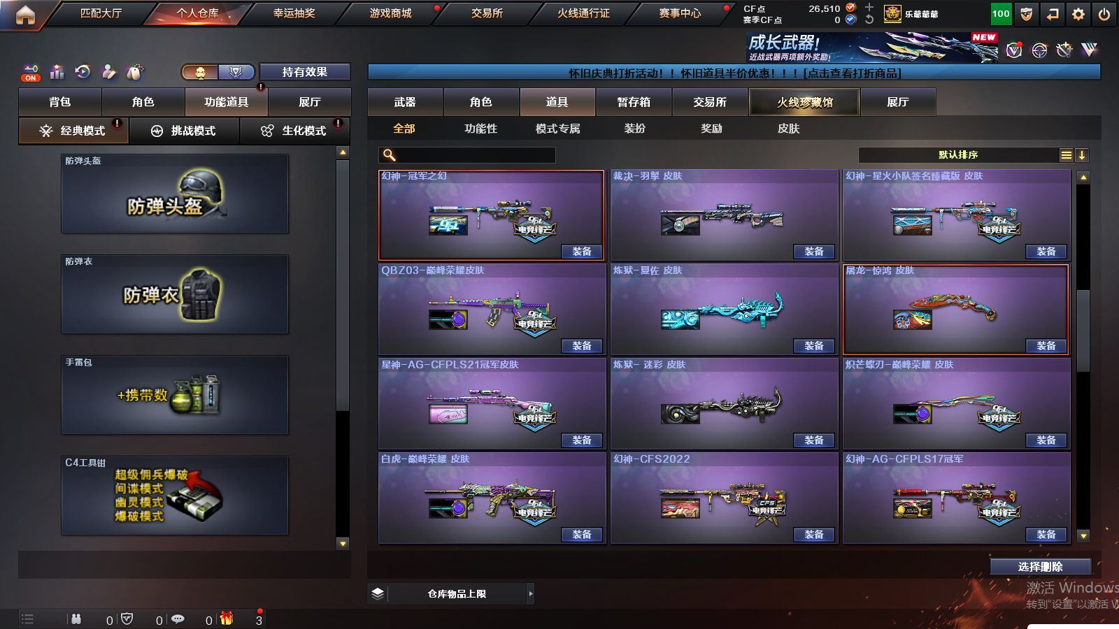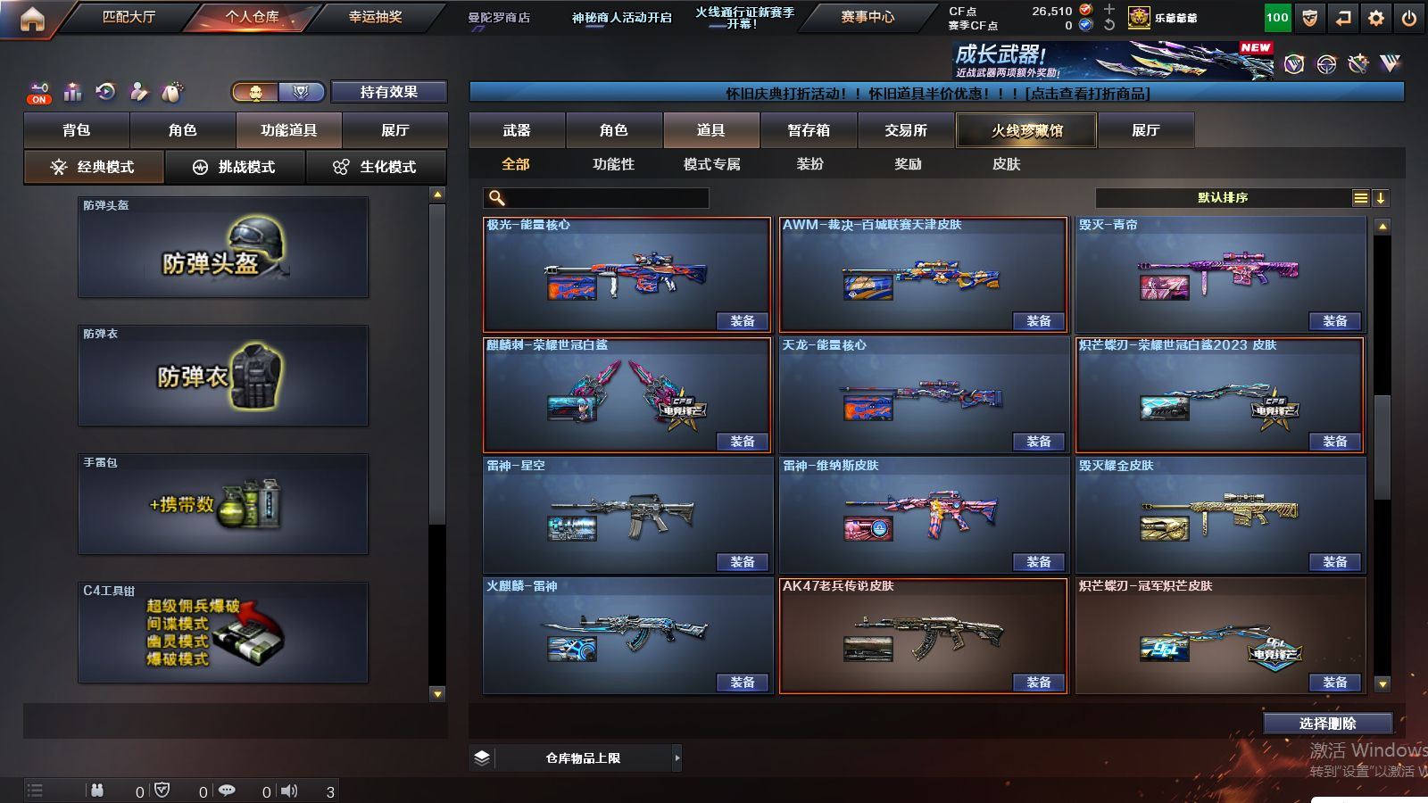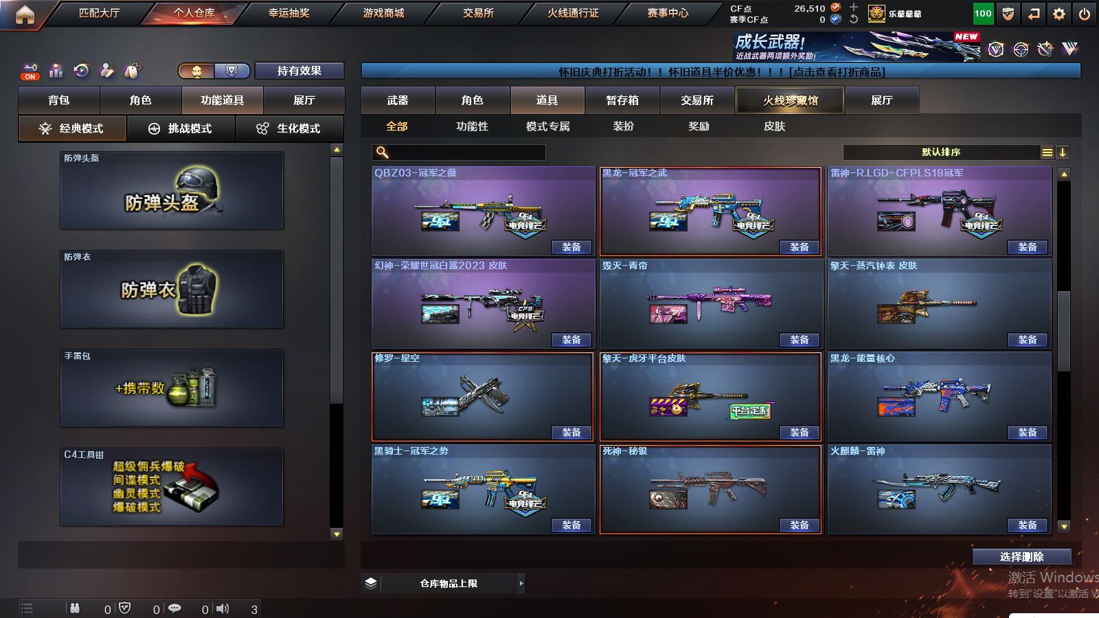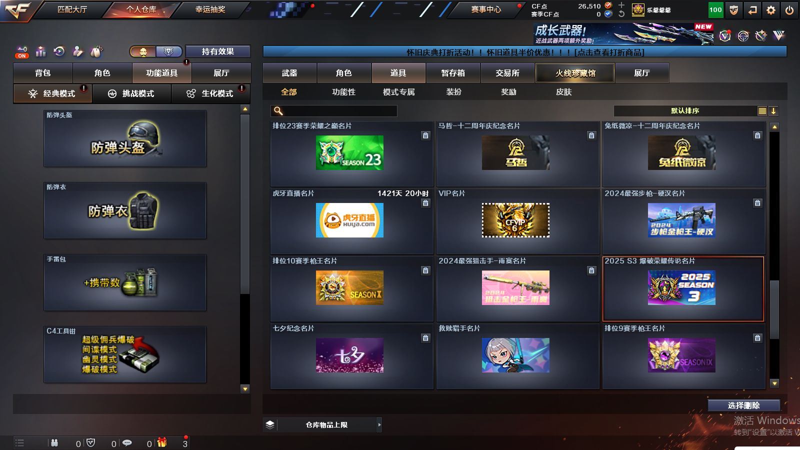 r51928 可二次可排位山西一区-166V【传说武器】:传说幽冥【热门武器】:传说幽冥,G36C-幻影,QBZ03-金色蔷薇*2,Scar Light-白虎,M200-幻神*2,柯尔特-荣耀世冠白鲨2023*2,金色蔷薇-古蛇迷踪,修罗-古蛇迷踪,死亡之眼*3,荣耀世冠-雷神,白虎-电玩蓝兔,柯尔特-冠军之特*2,荣耀世冠-柯尔特,Kar98K-星神*2,牛牛-AK47,M4A1-黑骑士*2,汤姆逊-烈龙*4,COP-白鲨*2,USP-雷暴,COP 357-幻灵,沙鹰-修罗*3,Knife-冠军之刃,炽芒蝶刃,炽芒蝶刃-冠军炽芒皮肤,炽芒蝶刃-荣耀世冠白鲨2023 皮肤,荣耀世冠-龙啸,COP 357-极地霜雄【王者炫金武器】:USP-雷暴王者,雷霆王者之锋,斩神刀-雷暴王者,炫金毁灭,炫金修罗【音效卡】:修罗-古蛇迷踪音效卡,M200-幻神音效卡,AK47-火麒麟音效卡,M4A1-黑骑士音效卡,Barrett-毁灭音效卡,AWM-裁决音效卡,Kar98K-星神音效卡,Barrett-碧霄极光音效卡,炼狱-百战金芒-庆典舞曲音效卡,死神-雪域霜狐-怀旧音效卡,M4A1-雷神-怀旧音效卡,AK47-火麒麟-怀旧音效卡【皮肤】:幻神-冠军之幻,幻神-AG-CFPLS17冠军,幻神-CFS2022,幻神-星耀 皮肤,幻神-动感闪耀 皮肤,幻神-电流骇客 皮肤,幻神-星火小队签名臻藏版 皮肤,幻神-荣耀世冠白鲨2023 皮肤,幻神-传奇欧欧 皮肤,幻神-AG-CFPL S24冠军 皮肤,幻神-荣耀世冠EP 皮肤,幻神-KZ-CFPLS25冠军 皮肤,白虎-巅峰荣耀 皮肤,白虎-白鲨-CFPLS23冠军,QBZ03-冠军之薇,QBZ03-AG-CFPLS19冠军,QBZ03-巅峰荣耀皮肤,金色蔷薇-Heartshot皮肤,QBZ03-CFS2024 皮肤,裁决-流光秘银,裁决-巅峰荣耀 皮肤,裁决-羽掣 皮肤,裁决-典雅胡桃 皮肤,裁决-运输船 皮肤,Kar98K-星神-AG-CFPLS21冠军皮肤,Kar98K-星神-冠军之星皮肤,星神-黯钢战甲 皮肤,星神-CFS2025 皮肤,雷神-能量核心*2,雷神-荣耀之魄,雷神-星空,雷神-R.LGD-CFPLS18冠军,雷神-机甲刑天皮肤,雷神-维纳斯皮肤,雷神-梦蝶 皮肤,M4A1-再燃火线,火麒麟-雷神,火麒麟-冠军之心,火麒麟-华夏之心,火麒麟-巅峰荣耀,火麒麟-玉面羞花 皮肤,毁灭-荣耀之怒,毁灭耀金皮肤,毁灭-冠军之怒,毁灭-CFS2020,毁灭-星耀 皮肤,毁灭-梦蝶 皮肤,毁灭-巅峰荣耀 皮肤,毁灭-英雄计划 皮肤,黑龙-能量核心,黑龙-冠军之武,黑骑士-冠军之势,黑骑士-CFS2021,黑骑士-AG-S4冠军典藏,死神-秘银,AK47-黑武士-361,黑武士-典韦皮肤,修罗-冠军之魂,天神-暗月,屠龙-荣耀之锋*3,屠龙-星耀 皮肤,屠龙-小叮当 皮肤,屠龙-破浪逐光 皮肤,屠龙-巅峰荣耀 皮肤*2,屠龙-惊鸿 皮肤,龙啸-冠军之啸,炽芒蝶刃-冠军炽芒皮肤,炽芒蝶刃-荣耀世冠白鲨2023 皮肤,炽芒蝶刃-巅峰荣耀 皮肤【角色】:葵,关小雨,晴雅,隼,机械姬,华,战地猎狐,王者之瞳,雪域霜狐,蛇隐宗,奇洋探员,修道士,云海玲珑,暗夜-X,初恋灵狐,兰妹妹,灵狐者-黄金海岸,灵狐者-七夕宝贝,龙儿-小淘气,麻雀,潘多拉-X,潘多拉-甜心教官,蛇姬,铁骑荣耀,维纳斯,樱-战斗天使,影武者-X,智影【人偶武器】:COP-白鲨*2,天龙-曼陀罗,火麒麟-灵狐,茸茸小松狮,海滩汪汪-巴雷特,COP-旗袍,牛牛-AK47,迷你牛魔王,迷你牛牛【暴走生化】:死亡之眼*3,超级对讲机【挑战大师】:冰龙粉碎者-白马银枪,激光毁灭者III【英雄级武器】:QBZ03-金色蔷薇*2,M4A1-猎神,王者之魄-觉醒版,AK-47-猩红传说*2,白虎-电玩蓝兔,荣耀世冠-雷神,M200-幻神*2,Kar98K-星神*2,Barrett-金色蔷薇,王者之怒-觉醒版,王者之光-觉醒版,炼狱-百战金芒,炼狱-悦蓝-觉醒版,汤姆逊-烈龙*4,AA-12-雷霆*3,沙鹰-修罗*3,沙鹰-天神*7,USP-雷暴,COP 357-雷霆王者-觉醒版,COP 357-幻灵,柯尔特-冠军之特*2,柯尔特-荣耀世冠白鲨2023*2,柯尔特-无冕之王,荣耀世冠-柯尔特,柯尔特-荣耀世冠EP,COP 357-云龙*5,丛林匕首-玄豹【道具】:泡泡象背包,防弹头盔*5,防弹衣*5,C4工具钳*4,手雷包*3【特殊枪械】:1白虎,2黑骑士,4烈龙,各种道具详情看截图、低价出售找回包 赔、截图展示段位不代 表实际段位,如赛季更新等不可抗拒因素发生变化、时限道具不保证所剩时间、标题未写送点劵默认不送【卖号买号首选亿梦】