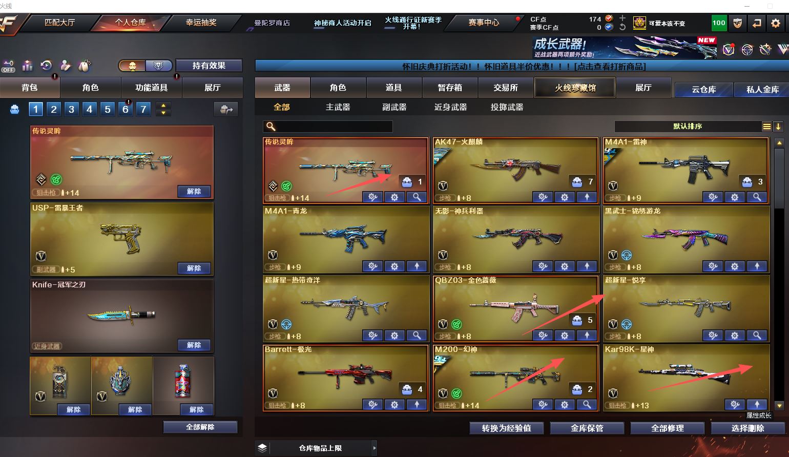 【Lv.102 荣耀元帅】VIP5 51V,5王者,1炫金,传说灵眸/幻神N9/幻神宠儿/幻神冠军之幻/天龙传奇白鲨/火麒麟CFSTAR/火麒麟心动糖果/火麒麟雷神/传奇石头横秒之巅/雷神荣耀之魄/黑骑士AGS4冠军典藏/鹰/兰-巾帼英雄/战地猎狐/M200-幻神/Barrett-极光/Kar98K-星神/M4A1-青龙/M4A1-雷神/QBZ03-金色蔷薇-热带奇洋音效卡/Barrett-极光音效卡(截图展示段位不代表实际段位,如赛季更新等不可抗拒因素发生变化、时限道具不保证所剩时间,其余道具看截图或咨询客服)