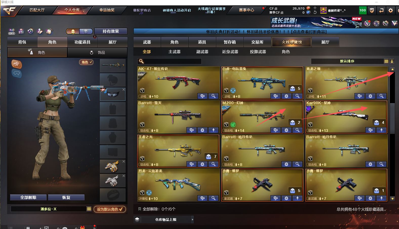 【Lv.101 大元首】VIP5 47V,3王者,传说灵眸/幻神星火小队/幻神黄忠/星神巅峰荣耀 /火麒麟CFSTAR/孙权/雷神动感闪耀 /黑骑士冠军之势/黑龙冠军之武/战神粉色甜心/屠龙春桃 /_零/_樱/鹰/M200-幻神/Barrett-毁灭/Barrett-暗月传说(2)/王者之光-觉醒版/Kar98K-星神/(截图展示段位不代表实际段位,如赛季更新等不可抗拒因素发生变化、时限道具不保证所剩时间,其余道具看截图或咨询客服)