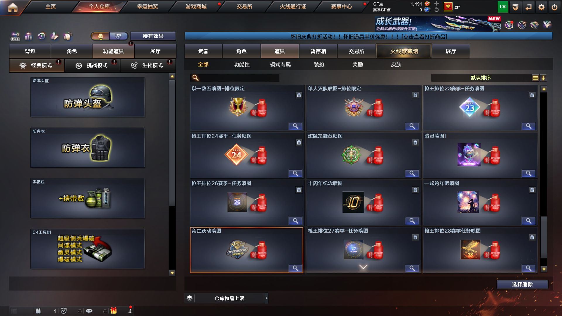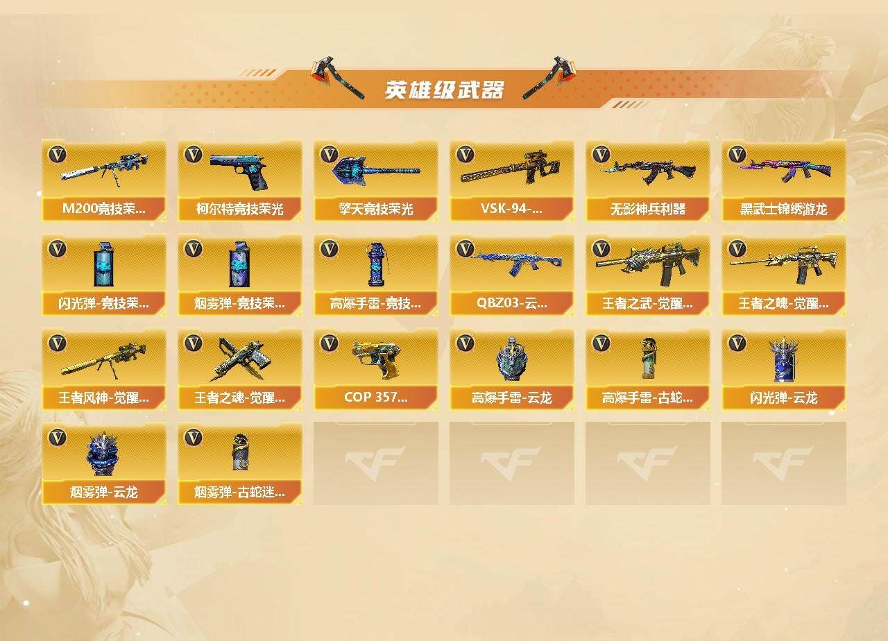 可二次 广西一区 可排位【63V】【热门武器】:G36C-幻影,QBZ03-金色蔷薇,Scar Light-白虎,HK417-朱雀,M4A1-青龙,M200-幻神,M200-竞技荣光,死亡之眼,汤姆逊-烈龙,RPK-盘龙,加特林-炼狱,斯泰尔-蝴蝶,MK5-炽火炎龙,沙鹰-修罗*2【王者炫金武器】:王者之戮,王者之翼,王者之势,王者星霆,USP-雷暴王者【音效卡】:M4A1-雷神音效卡,QBZ03-天罚音效卡【皮肤】:幻神-电流骇客 皮肤,雷神-暗月,雷神-耀金皮肤,火麒麟-雷神,毁灭-星空,毁灭-英雄计划 皮肤,M4A1-千变-孔明皮肤,修罗-能量核心,屠龙-星火燎原【角色】:电竞教官-云悠悠,鹰,王者-瞳-闭月羞花,王者-魅影,蛇隐宗,乔伊教练,修道士,暗夜-X,初恋灵狐,飞虎队-X,风暴女,嘉年华灵狐,娟娟,蛇姬,游珑儿【人偶武器】:天龙-曼陀罗,MK5-炽火炎龙,斯泰尔-蝴蝶,巴雷特-零-水下丽影,深渊终结者手雷【暴走生化】:死亡之眼【挑战大师】:神圣爆裂者III,激光毁灭者III-白马银枪【英雄级武器】:AK47-火麒麟,M4A1-雷神,AK47-无影*2,AK47-黑武士,AN94-超新星,M4A1-青龙,HK417-朱雀,Scar Light-白虎,QBZ03-天罚,无影-神兵利器,G36C-幻影,QBZ03-云龙,黑武士-锦绣游龙,M4A1-玫瑰精灵,QBZ03-金色蔷薇,M4A1-猎神,王者之武-觉醒版,王者之魄-觉醒版,Barrett-毁灭*2,AWM-裁决,M200-幻神,M200-竞技荣光,VSK-94-金蚀,王者风神-觉醒版,RPK-盘龙,加特林-炼狱,汤姆逊-烈龙,沙鹰-修罗*2,沙鹰-天神*4,COP 357-雷霆王者-觉醒版,柯尔特-竞技荣光,王者之魂-觉醒版,屠龙*2,龙啸,擎天,擎天-竞技荣光,高爆手雷-竞技荣光*2,高爆手雷-云龙,高爆手雷-古蛇迷踪,闪光弹-竞技荣光,闪光弹-云龙,烟雾弹-竞技荣光,烟雾弹-云龙,烟雾弹-古蛇迷踪【道具】:背包-葫芦兄弟,超级背包,女皇终结者-魔龙之吻,绿色巨人,灵魂忍者,迷雾幽灵,夺命之镰,防化服*2,金色流光-枪王排位*2,星辰流光-枪王排位,枪王排位28赛季金色流光,防弹头盔*2,防弹衣*3,C4工具钳*3,手雷包*2【特殊枪械】:蝴蝶斯泰尔+1烈龙,1白虎,1烈龙,1盘龙,1炼狱,1蝴蝶斯泰尔】各种道具详情看截图、低价出售找回包 赔、截图展示段位不代 表实际段位,如赛季更新等不可抗拒因素发生变化、时限道具不保证所剩时间、标题未写送点劵默认不送【卖号买号首选亿梦】