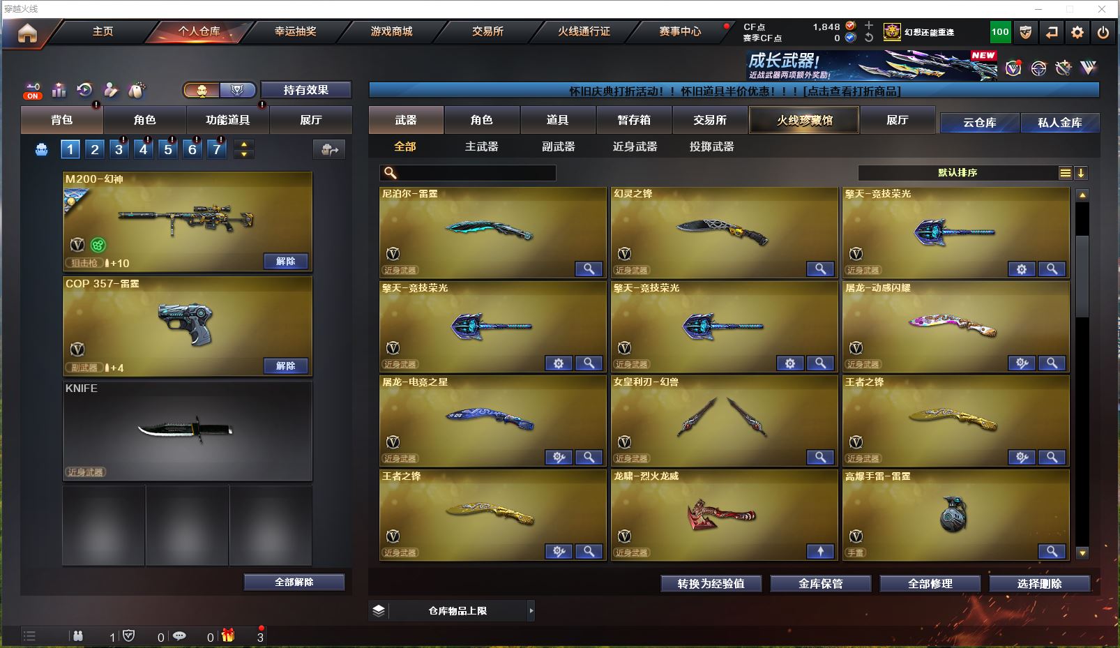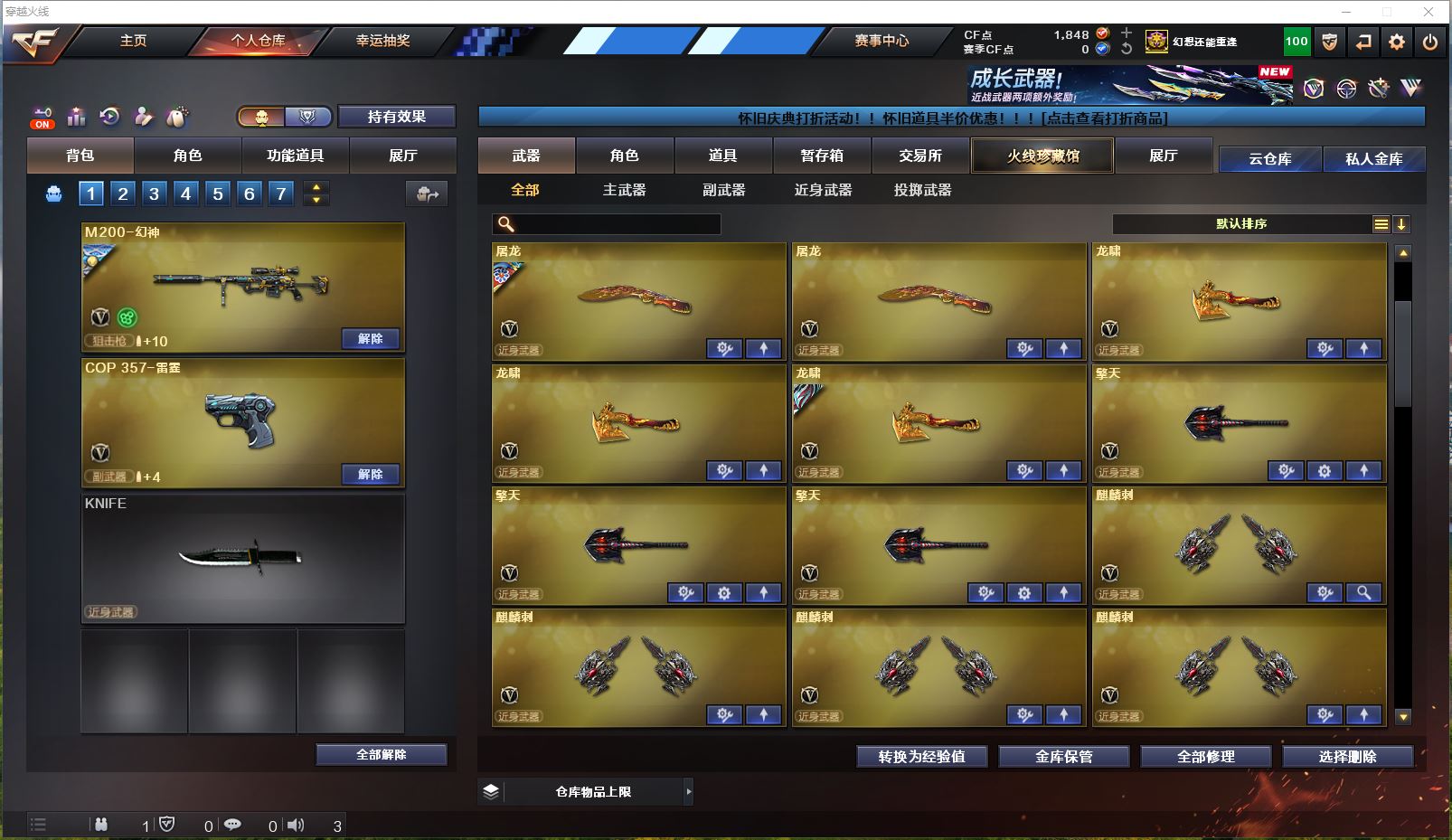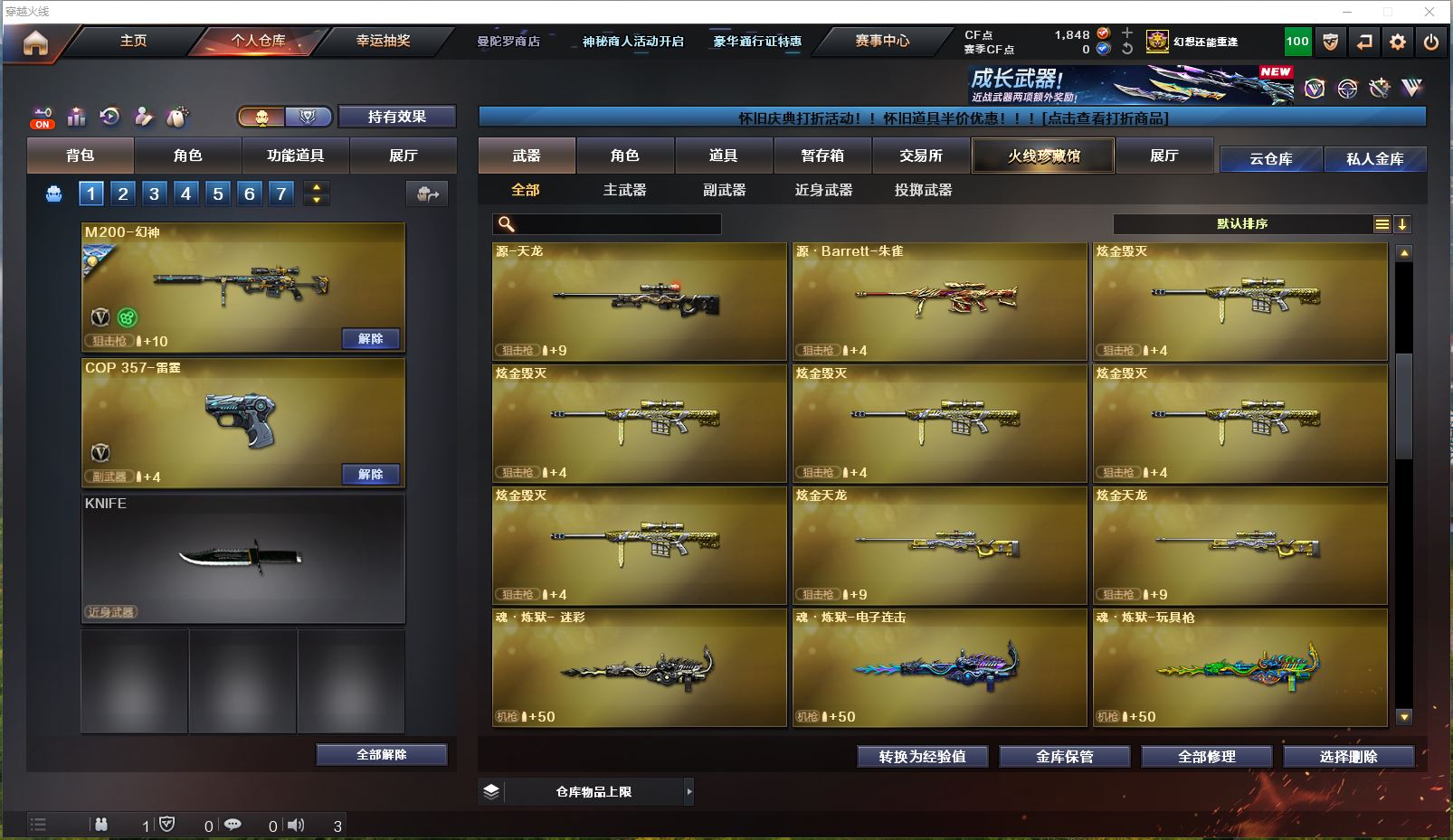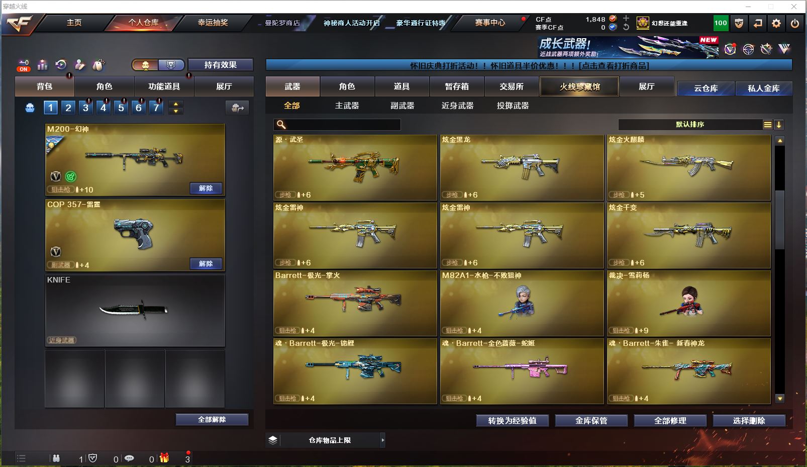Lv.102段位新锐1,VIP6,169V,1传说,23王者,14炫金,1848CF点,游戏年龄10年;【传说武器1】:传说暗裔;【稀有套装1】:竞技荣光套装;【重要角色17】:电竞教官-云悠悠/鹰/炫/樱/葵/零/不败狙神/幻面灵狐/雅典娜/王者-零-传说之路/王者-零-国色天香/奇洋探员/云海玲珑/乔伊教练/修道士/铁骑荣耀/兰-限定版;【武器皮肤50】:幻神-荣耀世冠EP皮肤/幻神-宠儿-2021MVP/毁灭-虹光风暴/毁灭-墨兰/毁灭-荣耀之怒/毁灭-BEAN-2020MVP/毁灭耀金/毁灭-星空/极光-能量核心/天龙-CFSTAR/白虎-电玩粉兔/黑龙-能量核心/黑骑士-暗月/雷神-传奇N9/雷神-宠儿-2019MVP/雷神-暗月/黑骑士-伏羲/雷神-机甲刑天/雷神-虎将/黑骑士-地狱火*2/雷神-星空/雷神-能量核心*2/死神-秘银/黑龙-暗月/火麒麟-CFSTAR*3/无影-能量核心*2/火麒麟-心动糖果/战神-粉色甜心/AK47-B-常胜将军-曹操/AK47-B-常胜将军-孙权/无影耀金/修罗-CFSTAR*3/修罗耀金/修罗-能量核心/屠龙-春桃/屠龙-惊鸿/屠龙-荣耀之锋*2/龙啸-青青莓果/AK-47-雷神/金色蔷薇-电竞之星/毁灭-英雄计划/裁决-运输船皮肤;【英雄武器161】:M200-竞技荣光/M200-幻神/Barrett-碧霄极光/Barrett-暗月传说/Barrett-毁灭*2/barrett-金色蔷薇*2/Barrett-极光*3/AWM-裁决/AWM-天龙*2/ScarLight-白虎/QBZ03-金色蔷薇*2/黑骑士-海王/M4A1-黑骑士*6/M4A1-雷神*3/M4A1-黑龙*5/M4A1-死神*3/M4A1-猎神*2/M4A1-雷霆/M4A1-千变*2/M4A1-武圣/黑武士-锦绣游龙/无影-神兵利器/AK47-火麒麟*2/AK47-B-常胜将军/AK47-B-战士/AK47-B-身先士卒/AK47-黑鲨/AK47-黑武士*3/AK47-机械迷城/AK47-无影/HK417-朱雀-电竞之星/AN94-超新星/烈火-动感闪耀/加特林-炼狱*4/RPK-盘龙*7/汤姆逊-烈龙*7/AA-12-雷霆/柯尔特-竞技荣光/COP-堕天神/COP357-雷霆*2/COP-狼王/USP-雷暴/天神-动感闪耀/沙鹰-修罗*5/沙鹰-天神*2/沙鹰-幻兽/Glock18-武圣/屠龙-动感闪耀/幻灵之锋/屠龙*7/尼泊尔-雷霆/龙啸-烈火龙威/龙啸*3/擎天-竞技荣光*3/擎天*3/麒麟刺*4/女皇利刃-幻兽/高爆手雷-玄豹/手雷-动感闪耀/高爆手雷-竞技荣光*3/高爆手雷-幻灵*4/高爆手雷-雷霆*6/高爆手雷-幻兽/闪光弹-竞技荣光*3/闪光弹-幻灵*2/闪光弹-雷霆*6/闪光弹-幻兽/烟雾弹-荣耀世冠EP/烟雾弹-竞技荣光*3/烟雾弹-幻灵*2/烟雾弹-雷霆*6/烟雾弹-幻兽/屠龙-电竞之星/机械迷城-穹宇/9A91-烈火;【热门武器27】:6黑骑士/4炼狱/5修罗/6盘龙/6烈龙;【音效卡8】:HK417-朱雀-电竞之星-竞星跃动音效卡/屠龙-电竞之星-竞星跃动音效卡/Barrett-碧霄极光音效卡/AWM-昌龙-怀旧音效卡*2/M4A1-黑骑士音效卡/M200-幻神音效卡/Barrett-毁灭音效卡;【王者武器20】:王者星神-觉醒版/王者之怒-觉醒版/王者之怒/王者之幻-觉醒版/玫瑰精灵-悦动*5/王者之翼-觉醒版/王者之心-觉醒版/王者之影/天启-悦智-觉醒版/炼狱-悦蓝-觉醒版/炼狱-悦蓝*2/王者之魂-觉醒版/王者之锋-觉醒版*2/闪光弹-雷暴王者;【炫金武器14】:炫金毁灭*5/炫金天龙*2/炫金天神/炫金火麒麟/炫金修罗/炫金千变/炫金雷神*2/炫金黑龙;【小人枪15】:深渊终结者手雷/生化手雷-小钢*2/迷你牛牛/高爆手雷-饼干情人/AWM-灵狐-15周年嘉年华*3/生化手雷-机甲核心*2/烟雾弹-Orange-虎牙娘/魔能飞环-曼陀罗*2/海滩汪汪-巴雷特/裁决-雪莉杨;【暴走生化1】:死亡之眼;【挑战大师7】:末日裁决者*2/神圣爆裂者-末日III*2/阐释者III/火狱乱世-超越Max/激光毁灭者III;【官方截图】【所有武器的数量可能含有时效性,具体请以游戏内仓库实际拥有为准】【河南一区】【不可二次实名】