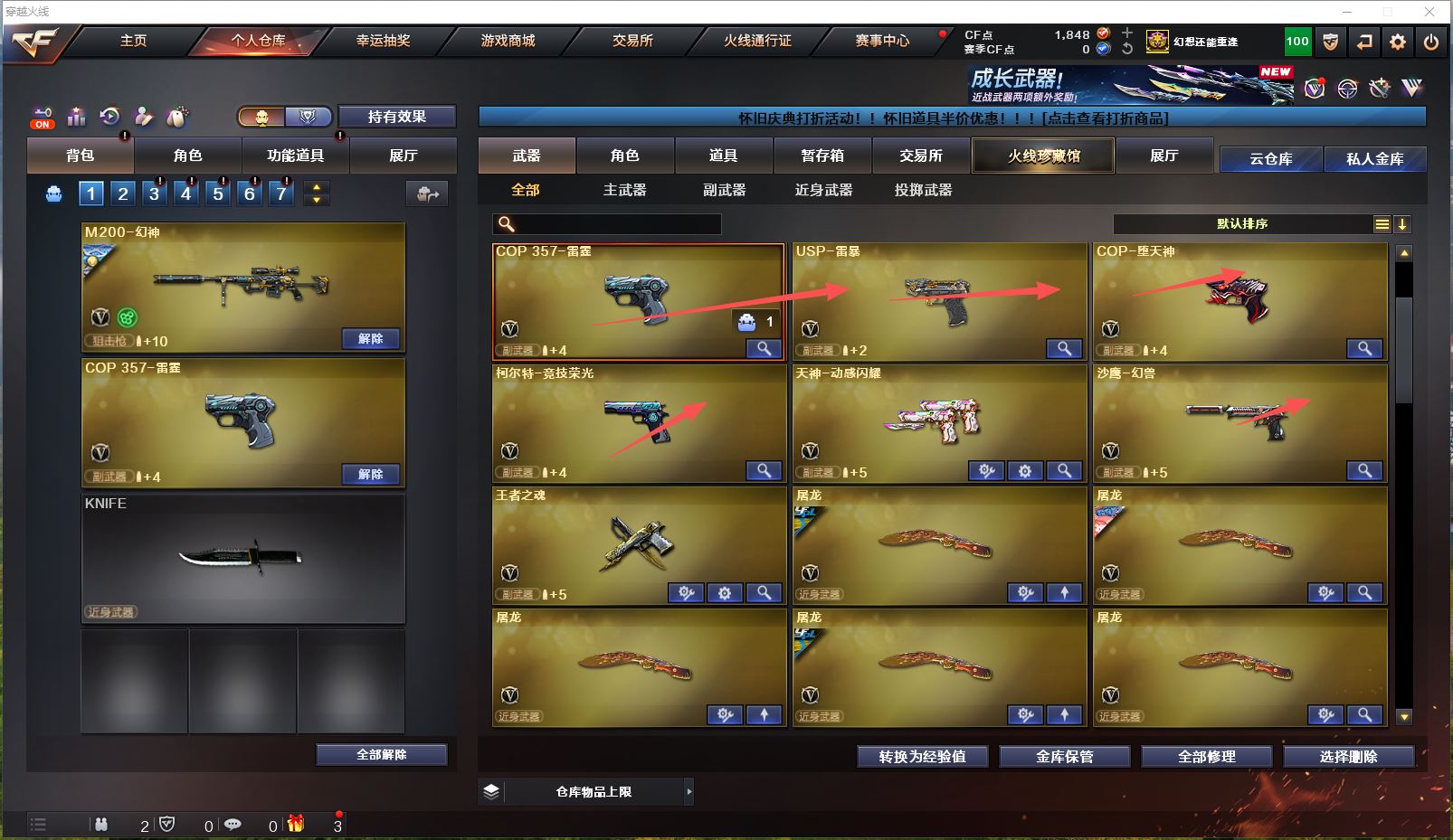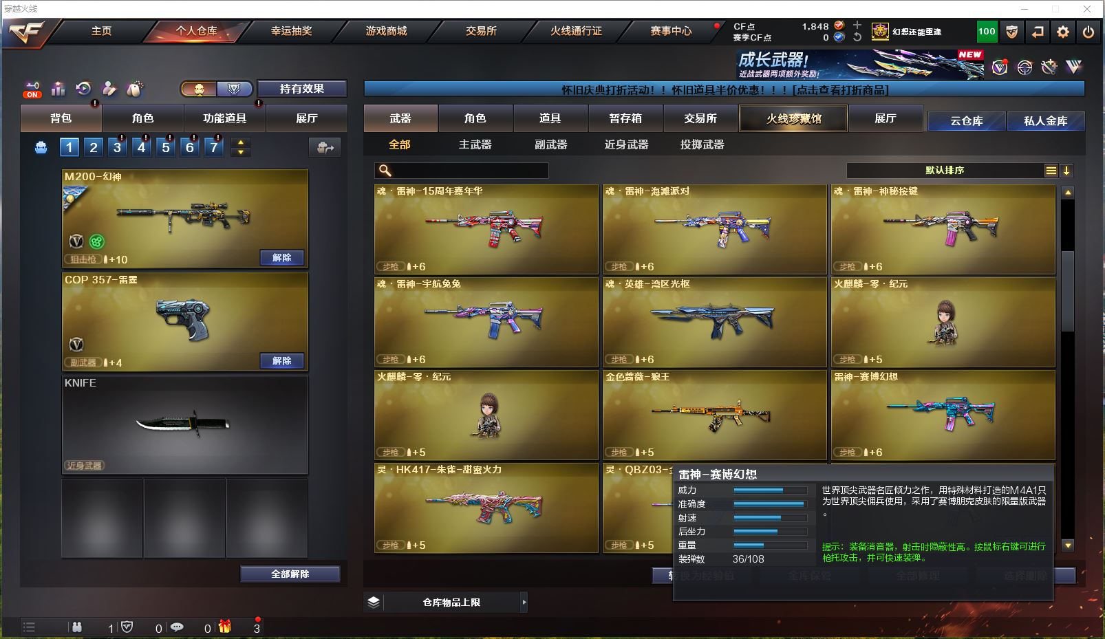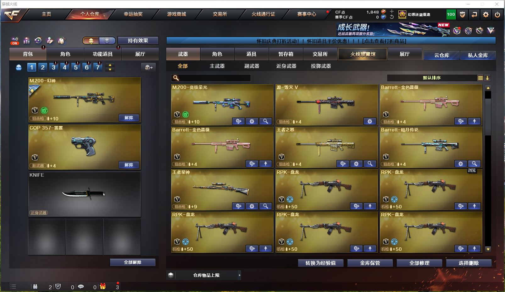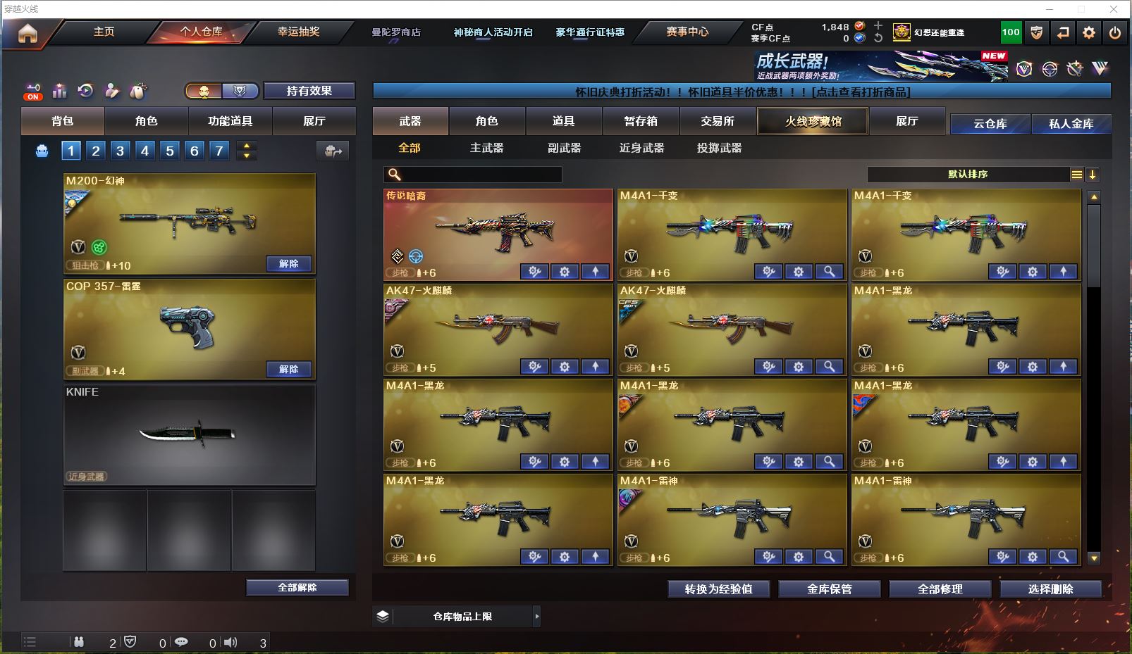 Lv.102段位新锐1,VIP6,169V,1传说,23王者,14炫金,1848CF点,游戏年龄10年;【传说武器1】:传说暗裔;【稀有套装1】:竞技荣光套装;【重要角色17】:电竞教官-云悠悠/鹰/炫/樱/葵/零/不败狙神/幻面灵狐/雅典娜/王者-零-传说之路/王者-零-国色天香/奇洋探员/云海玲珑/乔伊教练/修道士/铁骑荣耀/兰-限定版;【武器皮肤50】:幻神-荣耀世冠EP皮肤/幻神-宠儿-2021MVP/毁灭-虹光风暴/毁灭-墨兰/毁灭-荣耀之怒/毁灭-BEAN-2020MVP/毁灭耀金/毁灭-星空/极光-能量核心/天龙-CFSTAR/白虎-电玩粉兔/黑龙-能量核心/黑骑士-暗月/雷神-传奇N9/雷神-宠儿-2019MVP/雷神-暗月/黑骑士-伏羲/雷神-机甲刑天/雷神-虎将/黑骑士-地狱火*2/雷神-星空/雷神-能量核心*2/死神-秘银/黑龙-暗月/火麒麟-CFSTAR*3/无影-能量核心*2/火麒麟-心动糖果/战神-粉色甜心/AK47-B-常胜将军-曹操/AK47-B-常胜将军-孙权/无影耀金/修罗-CFSTAR*3/修罗耀金/修罗-能量核心/屠龙-春桃/屠龙-惊鸿/屠龙-荣耀之锋*2/龙啸-青青莓果/AK-47-雷神/金色蔷薇-电竞之星/毁灭-英雄计划/裁决-运输船皮肤;【英雄武器161】:M200-竞技荣光/M200-幻神/Barrett-碧霄极光/Barrett-暗月传说/Barrett-毁灭*2/barrett-金色蔷薇*2/Barrett-极光*3/AWM-裁决/AWM-天龙*2/ScarLight-白虎/QBZ03-金色蔷薇*2/黑骑士-海王/M4A1-黑骑士*6/M4A1-雷神*3/M4A1-黑龙*5/M4A1-死神*3/M4A1-猎神*2/M4A1-雷霆/M4A1-千变*2/M4A1-武圣/黑武士-锦绣游龙/无影-神兵利器/AK47-火麒麟*2/AK47-B-常胜将军/AK47-B-战士/AK47-B-身先士卒/AK47-黑鲨/AK47-黑武士*3/AK47-机械迷城/AK47-无影/HK417-朱雀-电竞之星/AN94-超新星/烈火-动感闪耀/加特林-炼狱*4/RPK-盘龙*7/汤姆逊-烈龙*7/AA-12-雷霆/柯尔特-竞技荣光/COP-堕天神/COP357-雷霆*2/COP-狼王/USP-雷暴/天神-动感闪耀/沙鹰-修罗*5/沙鹰-天神*2/沙鹰-幻兽/Glock18-武圣/屠龙-动感闪耀/幻灵之锋/屠龙*7/尼泊尔-雷霆/龙啸-烈火龙威/龙啸*3/擎天-竞技荣光*3/擎天*3/麒麟刺*4/女皇利刃-幻兽/高爆手雷-玄豹/手雷-动感闪耀/高爆手雷-竞技荣光*3/高爆手雷-幻灵*4/高爆手雷-雷霆*6/高爆手雷-幻兽/闪光弹-竞技荣光*3/闪光弹-幻灵*2/闪光弹-雷霆*6/闪光弹-幻兽/烟雾弹-荣耀世冠EP/烟雾弹-竞技荣光*3/烟雾弹-幻灵*2/烟雾弹-雷霆*6/烟雾弹-幻兽/屠龙-电竞之星/机械迷城-穹宇/9A91-烈火;【热门武器27】:6黑骑士/4炼狱/5修罗/6盘龙/6烈龙;【音效卡8】:HK417-朱雀-电竞之星-竞星跃动音效卡/屠龙-电竞之星-竞星跃动音效卡/Barrett-碧霄极光音效卡/AWM-昌龙-怀旧音效卡*2/M4A1-黑骑士音效卡/M200-幻神音效卡/Barrett-毁灭音效卡;【王者武器20】:王者星神-觉醒版/王者之怒-觉醒版/王者之怒/王者之幻-觉醒版/玫瑰精灵-悦动*5/王者之翼-觉醒版/王者之心-觉醒版/王者之影/天启-悦智-觉醒版/炼狱-悦蓝-觉醒版/炼狱-悦蓝*2/王者之魂-觉醒版/王者之锋-觉醒版*2/闪光弹-雷暴王者;【炫金武器14】:炫金毁灭*5/炫金天龙*2/炫金天神/炫金火麒麟/炫金修罗/炫金千变/炫金雷神*2/炫金黑龙;【小人枪15】:深渊终结者手雷/生化手雷-小钢*2/迷你牛牛/高爆手雷-饼干情人/AWM-灵狐-15周年嘉年华*3/生化手雷-机甲核心*2/烟雾弹-Orange-虎牙娘/魔能飞环-曼陀罗*2/海滩汪汪-巴雷特/裁决-雪莉杨;【暴走生化1】:死亡之眼;【挑战大师7】:末日裁决者*2/神圣爆裂者-末日III*2/阐释者III/火狱乱世-超越Max/激光毁灭者III;【官方截图】【所有武器的数量可能含有时效性,具体请以游戏内仓库实际拥有为准】【河南一区】【不可二次实名】
