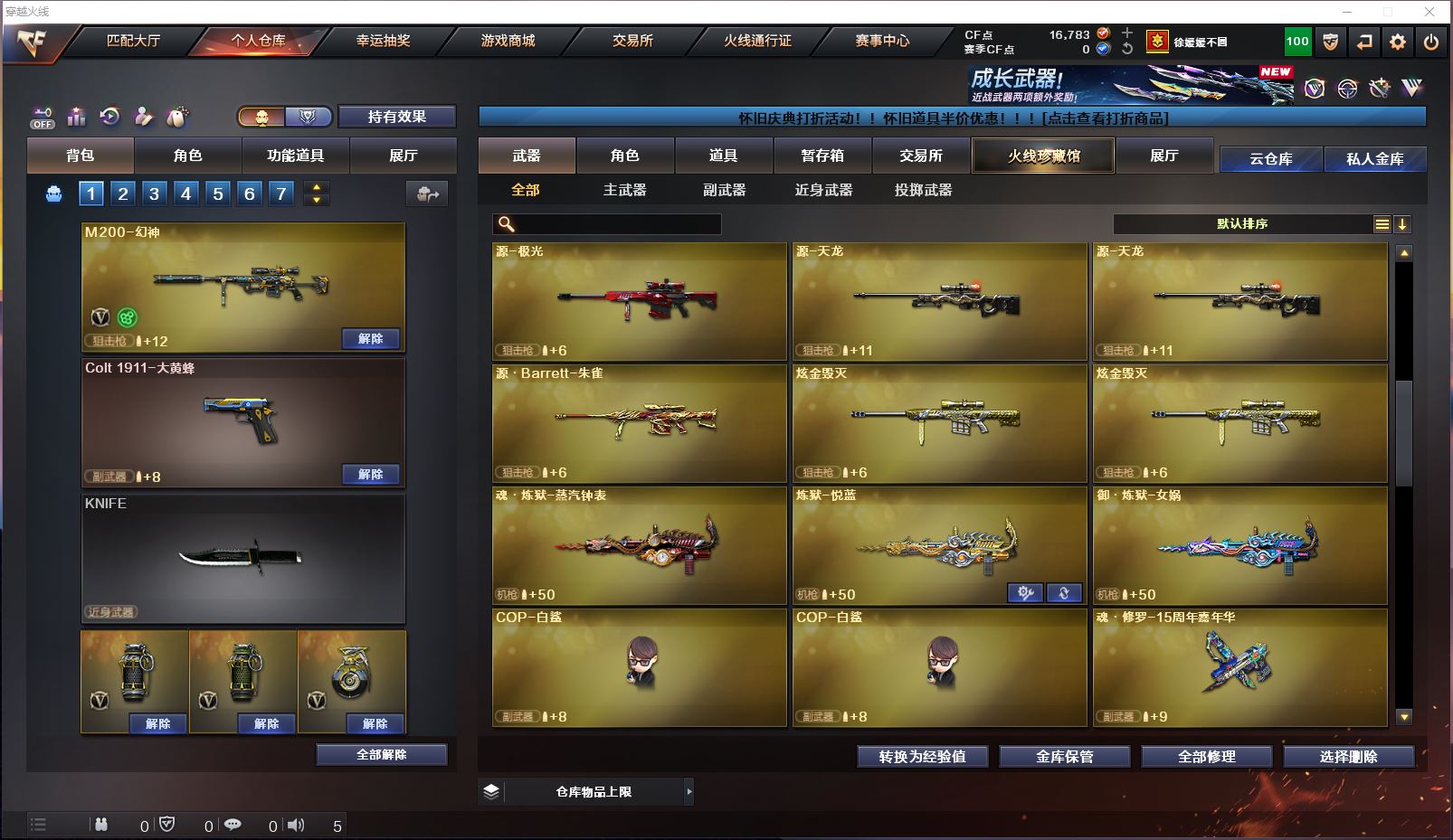 【Lv.100 高阶大元帅】 135V,8王者,7炫金,毁灭CFPL冠军/毁灭耀金/毁灭黑大圣/巴雷特SV/天龙传奇70KG/天龙传奇白鲨/天龙能量核心/火麒麟传奇EVEN/火麒麟CFSTAR/火麒麟AG/魅影/_迷迭香/M200-幻神/Barrett-毁灭(4)/barrett-金色蔷薇(4)/王者之怒-觉醒版(2)/Kar98K-星神/Barrett-毁灭音效卡/AWM-裁决音效卡/Barrett-极光音效卡(截图展示段位不代表实际段位,如赛季更新等不可抗拒因素发生变化、时限道具不保证所剩时间,其余道具看截图或咨询客服)