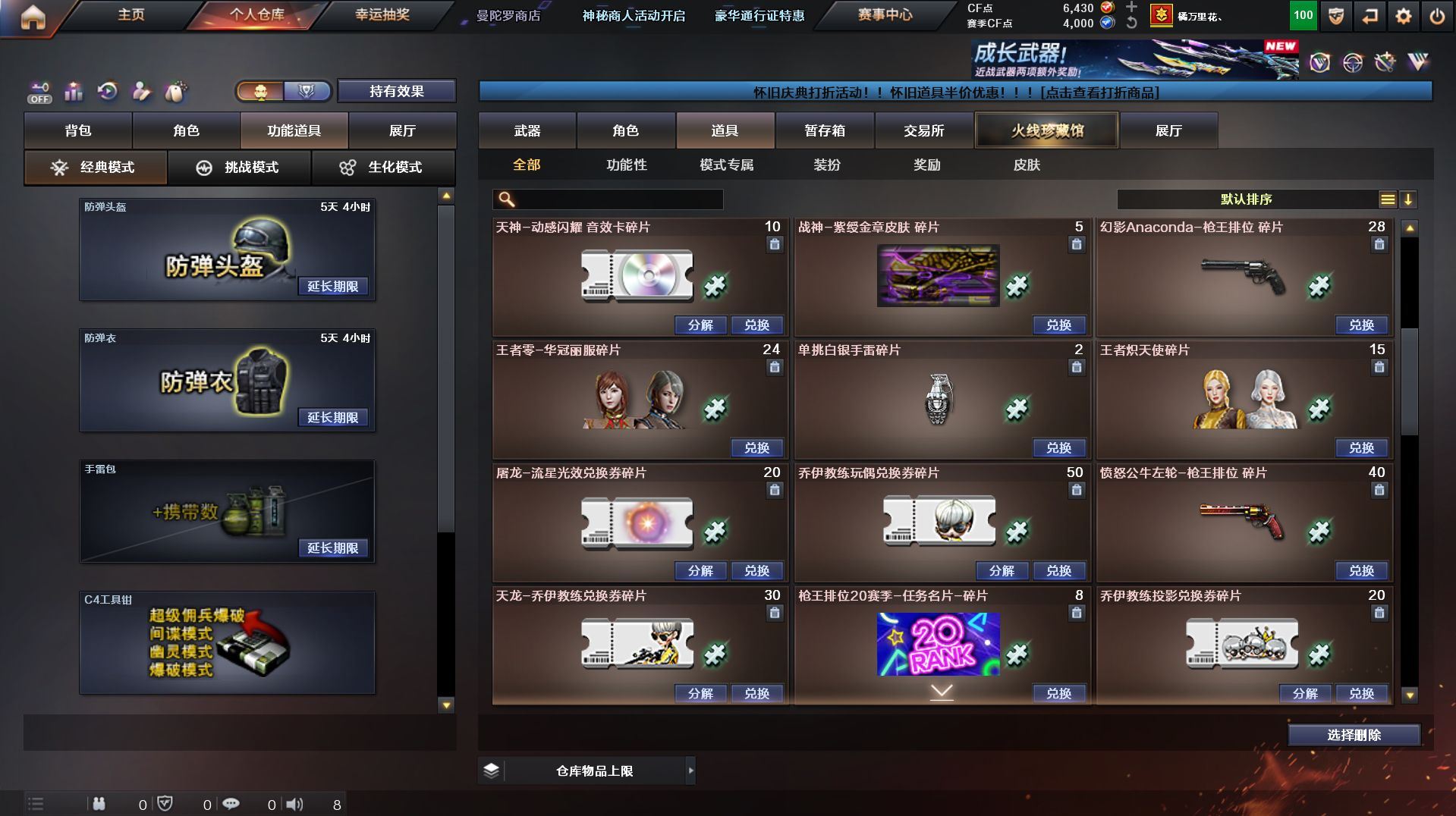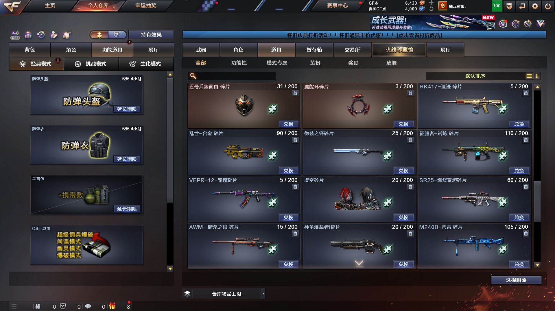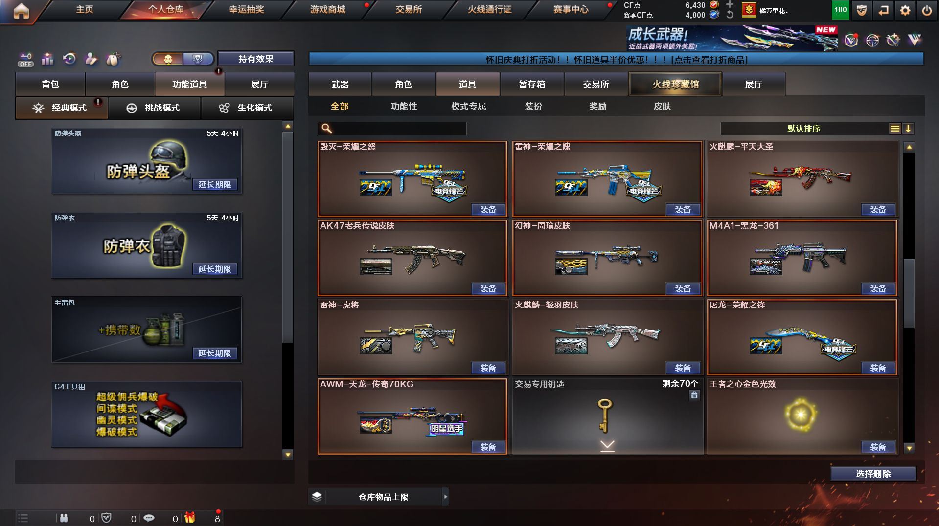 可二次 福建一区 可二次【78V】【传说武器】:传说暗裔【热门武器】:传说暗裔,QBZ03-金色蔷薇,Scar Light-白虎,HK417-朱雀,M200-幻神,M4A1-黑骑士,汤姆逊-烈龙*6,RPK-盘龙*6,加特林-炼狱,斯泰尔-蝴蝶,USP-雷暴,荣耀世冠-龙啸,金刚伞【王者炫金武器】:王者之戮,王者之影,王者之光,炫金毁灭【音效卡】:M4A1-黑龙音效卡,M4A1-黑骑士音效卡,绝迹语音包【皮肤】:幻神-周瑜皮肤,白虎-电玩粉兔皮肤,雷神-荣耀之魄,雷神-虎将,雷神-杨戬,雷神-烈虎皮肤*2,雷神-宇航兔皮肤,火麒麟-轻羽皮肤,火麒麟-平天大圣,火麒麟-荣耀世冠AG,火麒麟-心动糖果,毁灭-荣耀之怒,毁灭-BEAN-2020MVP,M4A1-黑龙-361,黑骑士-暗月,无影-能量核心,战神-紫绶金章皮肤,AK47-B-常胜将军-曹操*2,AK47-B-常胜将军-刘备,AK47-B-常胜将军-孙权*2,AWM-天龙-传奇70KG,炼狱-玩具枪皮肤,屠龙-荣耀之锋,屠龙-荣耀世冠AG*2【角色】:炫,王者-瞳-闭月羞花,王者零-华冠丽服,王者-魅影,乔伊教练,风暴女,虎妞,麻雀,曼陀罗-礼服,斯沃特-X,甜心偶像,蜀雪,职业选手【人偶武器】:斯泰尔-蝴蝶,M37-葵,迷你深渊冰龙,迷你牛牛,迷你生化手雷,深渊终结者手雷,闪光弹-貂蝉,高爆手雷-大乔,灵狐娃娃手雷【暴走生化】:黑龙吞噬者,超级对讲机【挑战大师】:火狱乱世-超越Max,神圣爆裂者III,AK47-冰龙粉碎者,冰龙粉碎者-白马银枪,激光毁灭者III-白马银枪,激光毁灭者III*3【英雄级武器】:AK47-火麒麟*2,M4A1-黑龙,M4A1-雷神,M4A1-黑骑士,AK12-天启,HK417-朱雀,Scar Light-白虎,无影-神兵利器,QBZ03-金色蔷薇,王者之心-觉醒版,王者之势-觉醒版,AK-47-猩红传说,王者冰魄-觉醒版,黑骑士-海王,AK47-B-常胜将军,AWM-天龙*2,Barrett-毁灭,M200-幻神,王者之决-觉醒版,RPK-盘龙*6,加特林-炼狱,汤姆逊-烈龙*6,AA-12-雷霆,沙鹰-天神*5,USP-雷暴,COP 357-雷霆王者-觉醒版,柯尔特-电竞装甲,天神-动感闪耀,屠龙,擎天,麒麟刺,屠龙-动感闪耀,荣耀世冠-龙啸,斩神刀-雷暴,王者之啸-觉醒版,王者之击-觉醒版*2,雷霆王者之锋-觉醒版,高爆手雷-雷暴*4,手雷-动感闪耀,闪光弹-雷暴*4,闪光弹-雷霆王者-觉醒版,烟雾弹-雷暴*4,烟雾弹-雷霆王者-觉醒版【道具】:Q9战队炫彩背包,炫彩背包,虎牙炫彩背包,超级背包,黄金生化钩,变异宝贝,夺命之镰,防化服,金色流光-枪王排位,斯沃特表情,防弹头盔,防弹衣,C4工具钳*3,手雷包*2【特殊枪械】:蝴蝶斯泰尔+6烈龙,1白虎,1黑骑士,6烈龙,6盘龙,1炼狱,1蝴蝶斯泰尔】各种道具详情看截图、低价出售找回包 赔、截图展示段位不代 表实际段位,如赛季更新等不可抗拒因素发生变化、时限道具不保证所剩时间、标题未写送点劵默认不送【卖号买号首选亿梦】