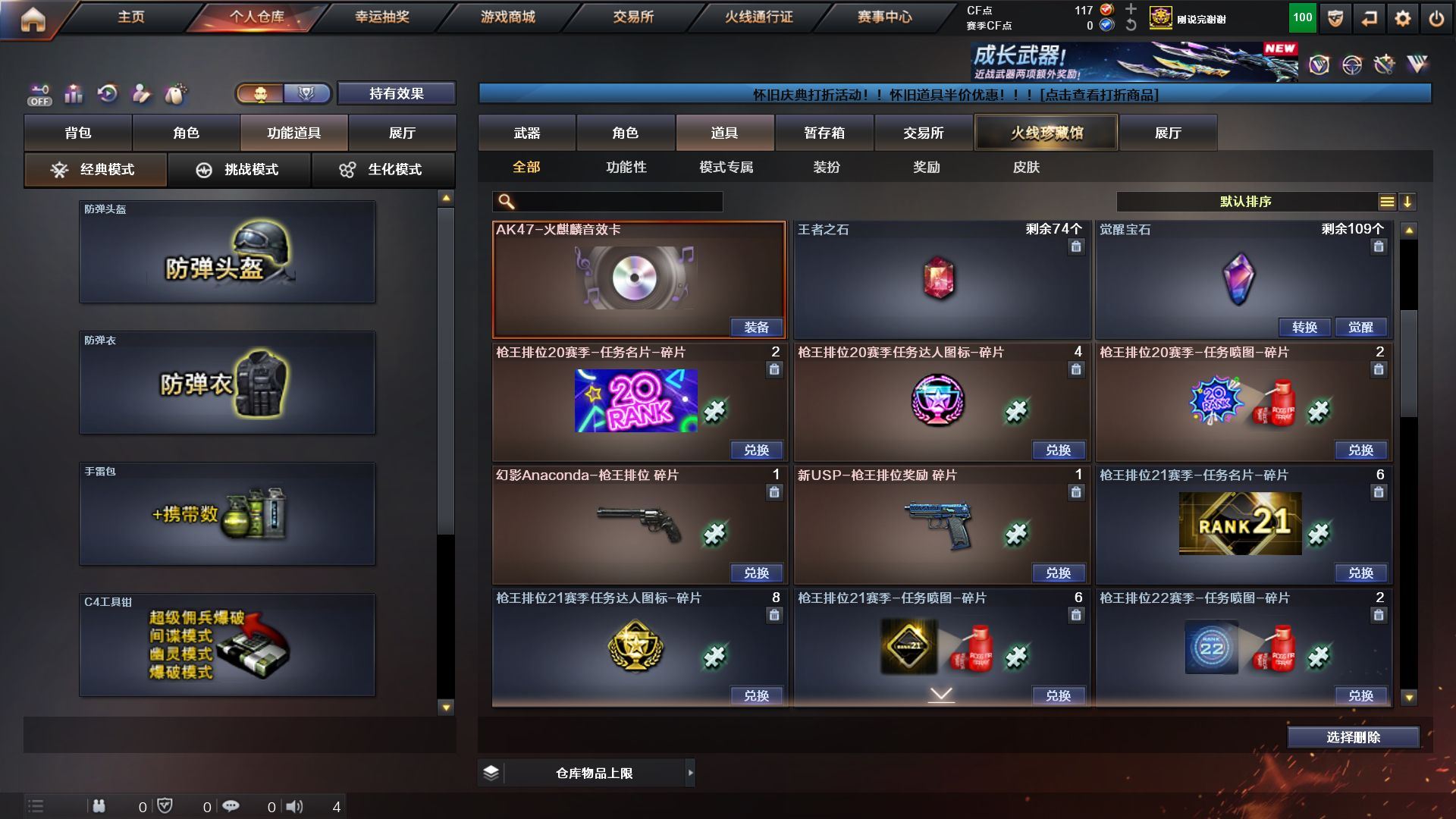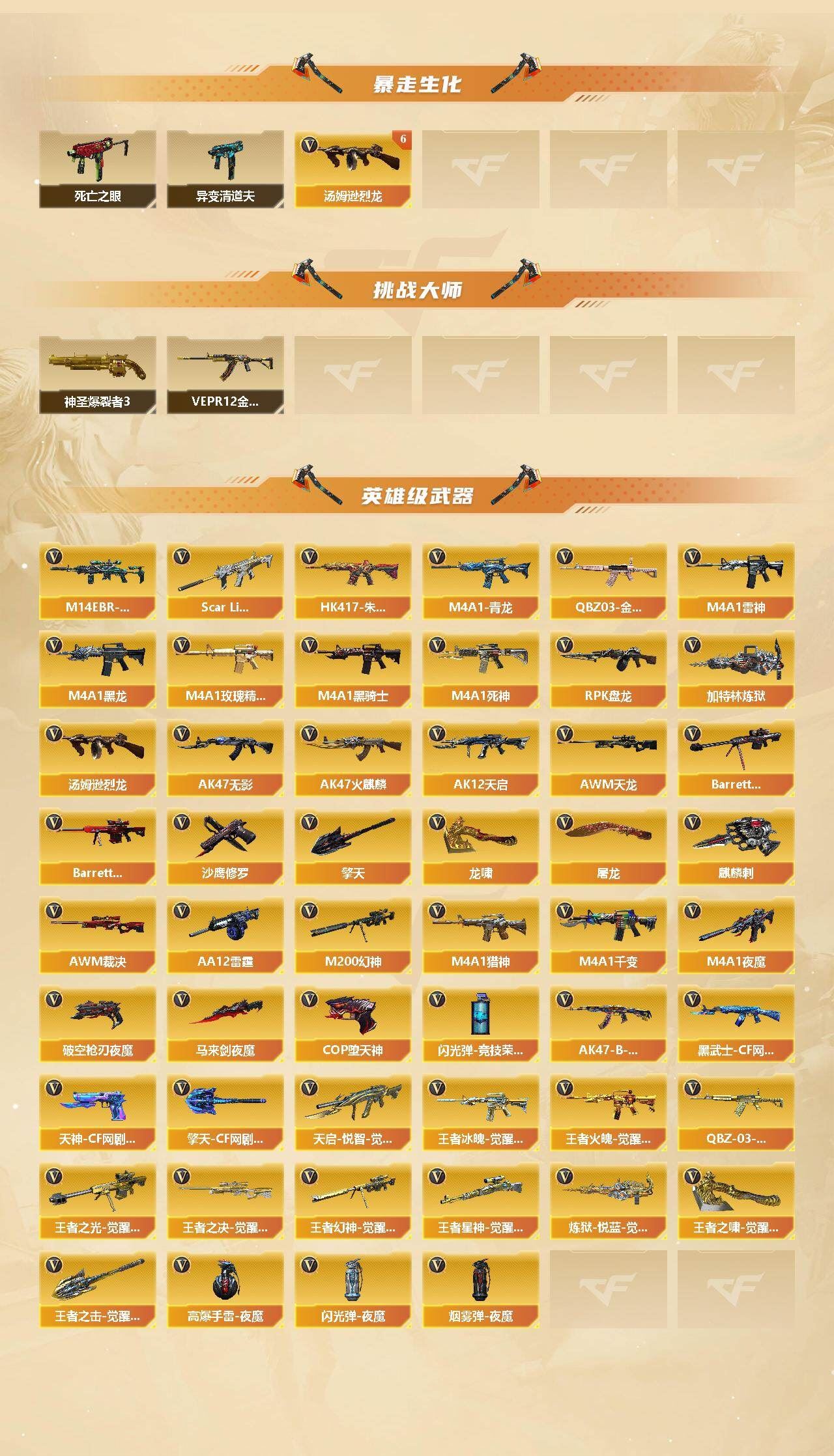 可二次 上海一区 可排位【122V】【传说武器】:传说圣灵【热门武器】:传说圣灵,QBZ03-金色蔷薇,M14EBR-玄武,Scar Light-白虎,HK417-朱雀,M4A1-青龙,M200-幻神,死亡之眼,金色小号,M4A1-黑骑士,汤姆逊-烈龙*8,RPK-盘龙*2,加特林-炼狱,斯泰尔-蝴蝶,COP-堕天神*2,沙鹰-修罗*10,金刚伞【王者炫金武器】:王者之鲨,王者之影,王者之心,王者芳薇,王者之决,王者之光,王者之灵,王者之锋,炫金火麒麟,炫金骑士,炫金雷神,炫金毁灭*2,炫金修罗【音效卡】:AK47-火麒麟音效卡,M4A1-黑骑士音效卡,Barrett-毁灭音效卡【皮肤】:幻神-周瑜皮肤,雷神-冠军之魄,火麒麟-华夏之心,火麒麟-平天大圣,火麒麟-心动糖果,毁灭耀金皮肤,毁灭-CFS2020,毁灭-SV-CFPLS16冠军,黑龙-能量核心*2,黑龙-暗月,无影耀金皮肤,战神-紫绶金章皮肤,战神-流金岁月皮肤*2,AK47-B-常胜将军-曹操,AK47-B-常胜将军-刘备,AK47-B-常胜将军-孙权,天龙-能量核心,AWM-天龙-传奇70KG,AWM-天龙-传奇白鲨,极光-能量核心,修罗-能量核心【角色】:零,葵,樱,魅影,迷迭香,凌霄,机械姬,审判者,王者-瞳-闭月羞花,王者樱-热浪之夏,王者-葵-貂蝉,王者潘多拉,灵狐者-职业经理,潘多拉-X,潘多拉-甜心教官,青霞仙子,斯沃特-X,铁骑荣耀【人偶武器】:斯泰尔-蝴蝶,海滩汪汪-巴雷特,迷你生化手雷,闪光弹-小乔,闪光弹-貂蝉,高爆手雷-大乔,Barrett-夜玫瑰,灵狐娃娃手雷【暴走生化】:异变清道夫,死亡之眼【挑战大师】:神圣爆裂者III,VEPR-12-金魔*3【英雄级武器】:M4A1-千变*2,AK47-火麒麟*4,M4A1-黑龙*7,M4A1-雷神,M4A1-黑骑士,AK47-无影,M4A1-死神,AK12-天启,M4A1-青龙,HK417-朱雀,Scar Light-白虎,M4A1-夜魔,M14EBR-玄武,M4A1-玫瑰精灵*3,QBZ03-金色蔷薇,M4A1-猎神,天启-悦智-觉醒版,AK47-B-战神,王者冰魄-觉醒版,王者火魄-觉醒版,QBZ-03-王者蔷薇-觉醒版,黑武士-CF网剧冠军,AWM-天龙*2,Barrett-毁灭*3,Barrett-极光*2,AWM-裁决,M200-幻神,王者之光-觉醒版,王者之决-觉醒版,王者幻神-觉醒版,王者星神-觉醒版,RPK-盘龙*2,加特林-炼狱,炼狱-悦蓝-觉醒版,汤姆逊-烈龙*8,AA-12-雷霆,沙鹰-修罗*10,COP-堕天神*2,破空枪刃-夜魔,天神-CF网剧冠军,屠龙*4,龙啸*2,马来剑-夜魔,擎天*3,麒麟刺,擎天-CF网剧冠军,王者之啸-觉醒版,王者之击-觉醒版,高爆手雷-夜魔*7,闪光弹-夜魔*7,闪光弹-竞技荣光,烟雾弹-夜魔*7【道具】:超级背包,黄金生化钩*2,生化弹匣,夺命之镰,防化服,金色流光-枪王排位,C4-沙漠*2,防弹头盔*3,防弹衣*5,C4工具钳*2,手雷包【特殊枪械】:蝴蝶斯泰尔+6烈龙,1白虎,1黑骑士,6烈龙,2盘龙,1炼狱,1蝴蝶斯泰尔】各种道具详情看截图、低价出售找回包 赔、截图展示段位不代 表实际段位,如赛季更新等不可抗拒因素发生变化、时限道具不保证所剩时间、标题未写送点劵默认不送【卖号买号首选亿梦】