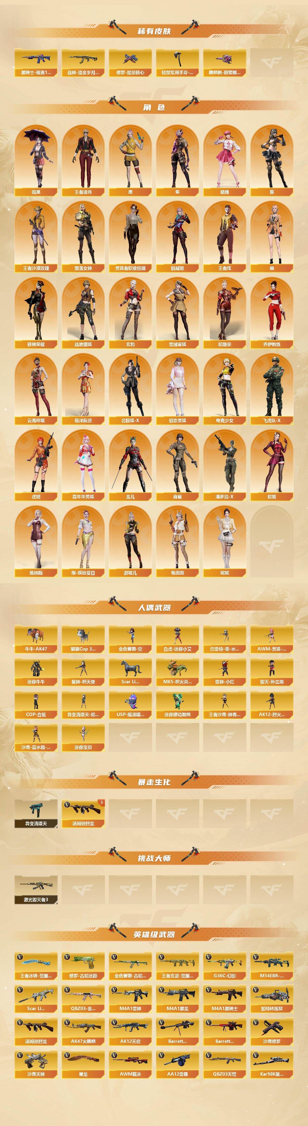 可二次 广东一区 可排位【187V】【传说武器】:传说圣谕,传说灵眸【传说角色】:传说星骇,传说影煞【热门武器】:传说灵眸,传说圣谕,G36C-幻影,QBZ03-金色蔷薇,M14EBR-玄武,Scar Light-白虎,M200-幻神*2,柯尔特-荣耀世冠白鲨2023,金色蔷薇-古蛇迷踪,修罗-古蛇迷踪,M200-竞技荣光,青龙之魄,Kar98K-星神,金色小号,牛牛-AK47,M4A1-黑骑士,汤姆逊-烈龙*5,加特林-炼狱*2,金色蔷薇-空,猫猫Cop 357,MK5-炽火炎龙,羊驼玩偶,雷神-小红,毁灭-孙三炮,COP-白鲨,COP-堕天神,COP 357-幻灵,沙鹰-修罗*3,黄金猫猫手套-白鲨,金刚伞【音效卡】:擎天-云海游龙音效卡,屠龙-云海游龙音效卡,M200-幻神音效卡,M4A1-雷神音效卡,M4A1-雷神-云海游龙音效卡,M4A1-黑龙音效卡,M4A1-黑骑士音效卡,AWM-裁决音效卡,Scar Light-白虎音效卡,Kar98K-星神音效卡,QBZ03-天罚音效卡,Barrett-碧霄极光音效卡*2,炼狱-百战金芒-庆典舞曲音效卡,死神-雪域霜狐-怀旧音效卡,AWM-昌龙-怀旧音效卡*2【皮肤】:幻神-冠军之幻,幻神-宠儿-2021MVP,幻神-星耀 皮肤,幻神-纸灯龙皮肤,幻神-Heartshot 皮肤,幻神-荣耀世冠白鲨2023 皮肤,幻神-曹操 皮肤,Scar Light-白虎-暗星,QBZ03-冠军之薇,QBZ03-荣耀世冠白鲨,金色蔷薇-量子蔷薇 皮肤,QBZ03-荣耀世冠EP 皮肤,裁决-叶芒苍灵 皮肤,星神-璀璨皮肤,星神-美杜莎 皮肤,雷神-星空,M4A1-战神赵云,雷神-宠儿-2019MVP,雷神-杨戬,雷神-R.LGD-CFPLS18冠军,雷神-烈虎皮肤,雷神-维纳斯皮肤,M4A1-雷神-巅峰荣耀皮肤,M4A1-再燃火线,火麒麟-战神关羽,火麒麟-平天大圣,火麒麟-巅峰荣耀,毁灭-冠军之怒,毁灭-战神张飞【角色】:葵,雨棠,鹰,晴雅,隼,机械姬,玄豹,妮妮,战地猎狐,王者炫,王者凌霄,王者沙漠玫瑰,堕落女神,雪域霜狐,蛇隐宗,奇洋探员,乔伊教练,云海玲珑,北极狐-X,初恋灵狐,电竞少女,飞虎队-X,虎妞,嘉年华灵狐,灵狐者-职业经理【人偶武器】:雷神-小红,COP-白鲨,毁灭-孙三炮,星神-炽天使,白虎-迷你小艾,金色蔷薇-空,王者沙鹰-神勇金戈,迷你宝贝,MK5-炽火炎龙,异变清道夫-蛇影双骄,USP-摇滚暗灵,迷你律动酷熊,巴雷特-零-水下丽影【英雄级武器】:AK47-火麒麟,M4A1-黑龙,M4A1-雷神*2,M4A1-黑骑士,AK12-天启,M4A1-堕天神,Scar Light-白虎,M14EBR-玄武,QBZ03-天罚,无影-神兵利器,G36C-幻影,QBZ03-云龙,黑武士-锦绣游龙,超新星-热带奇洋,金色蔷薇-古蛇迷踪,FAMAS G2-天戎,死神-雪域霜狐,SCAR Light-玄豹,QBZ03-金色蔷薇,Barrett-毁灭,AWM-裁决,M200-幻神*2,Kar98K-星神,M200-竞技荣光,VSK-94-金蚀,COP-堕天神,COP 357-雷霆王者-觉醒版,COP 357-幻灵,柯尔特-荣耀世冠白鲨2023,柯尔特-无冕之王,柯尔特-竞技荣光,COP 357-云龙*2,Anaconda-玄豹,USP-冥王*2【道具】:茸茸松狮背包,喜狮迎春背包,AG战队炫彩背包,BS战队炫彩背包,CFS限定背包,云海游龙炫彩背包,古蛇迷踪炫彩背包,奇洋探员-海龟背包,女皇终结者-背包,炫彩背包,热带奇洋炫彩背包,百战金芒炫彩背包,老虎背包,超级背包,C4-再燃火线,防弹头盔*4,防弹衣*4,C4工具钳*5,手雷包*5】各种道具详情看截图、低价出售找回包 赔、截图展示段位不代 表实际段位,如赛季更新等不可抗拒因素发生变化、时限道具不保证所剩时间、标题未写送点劵默认不送【卖号买号首选亿梦】