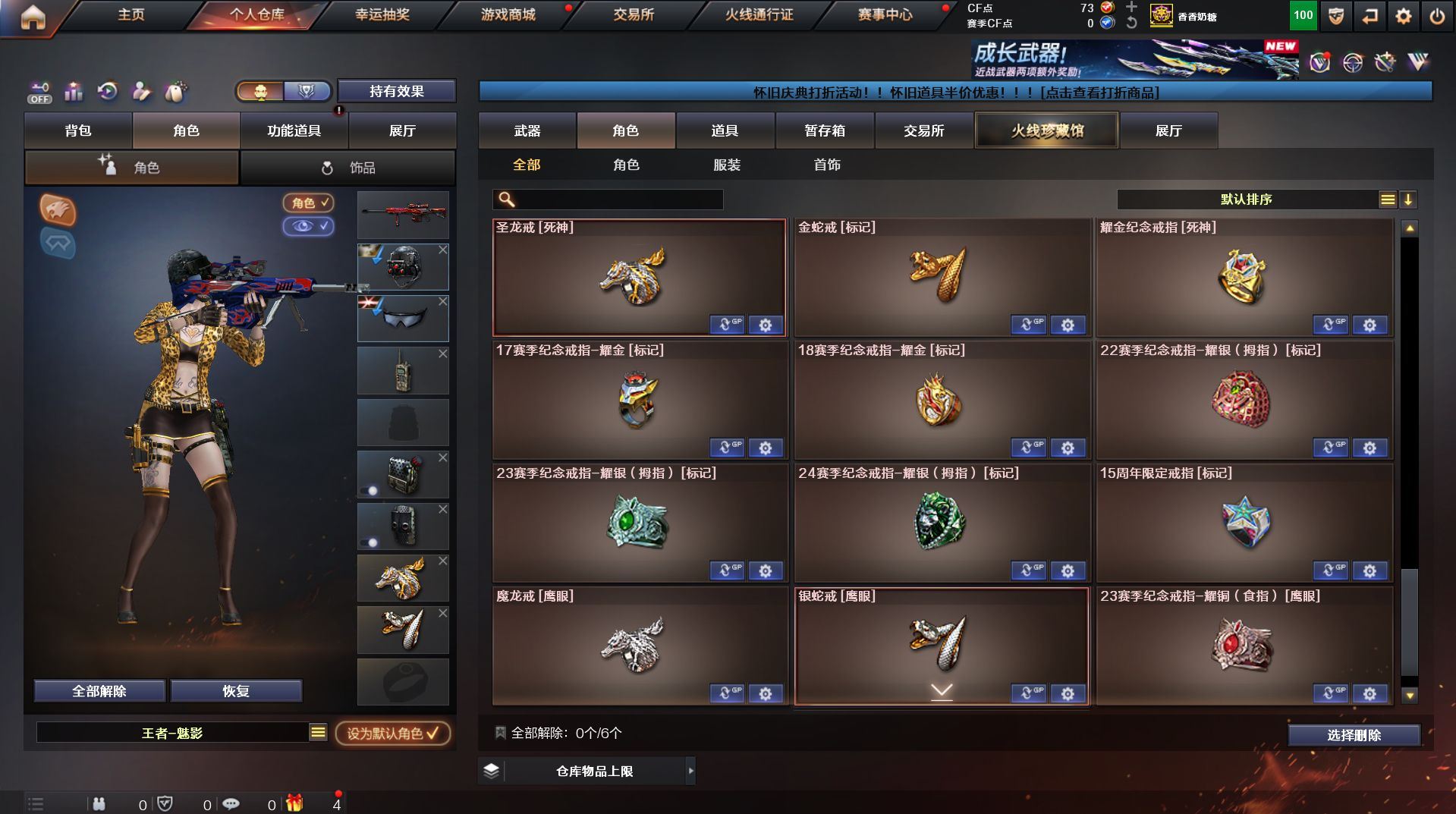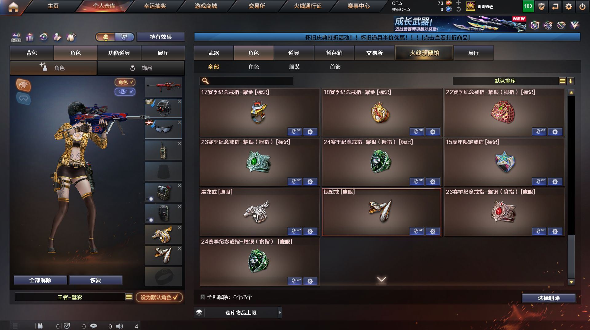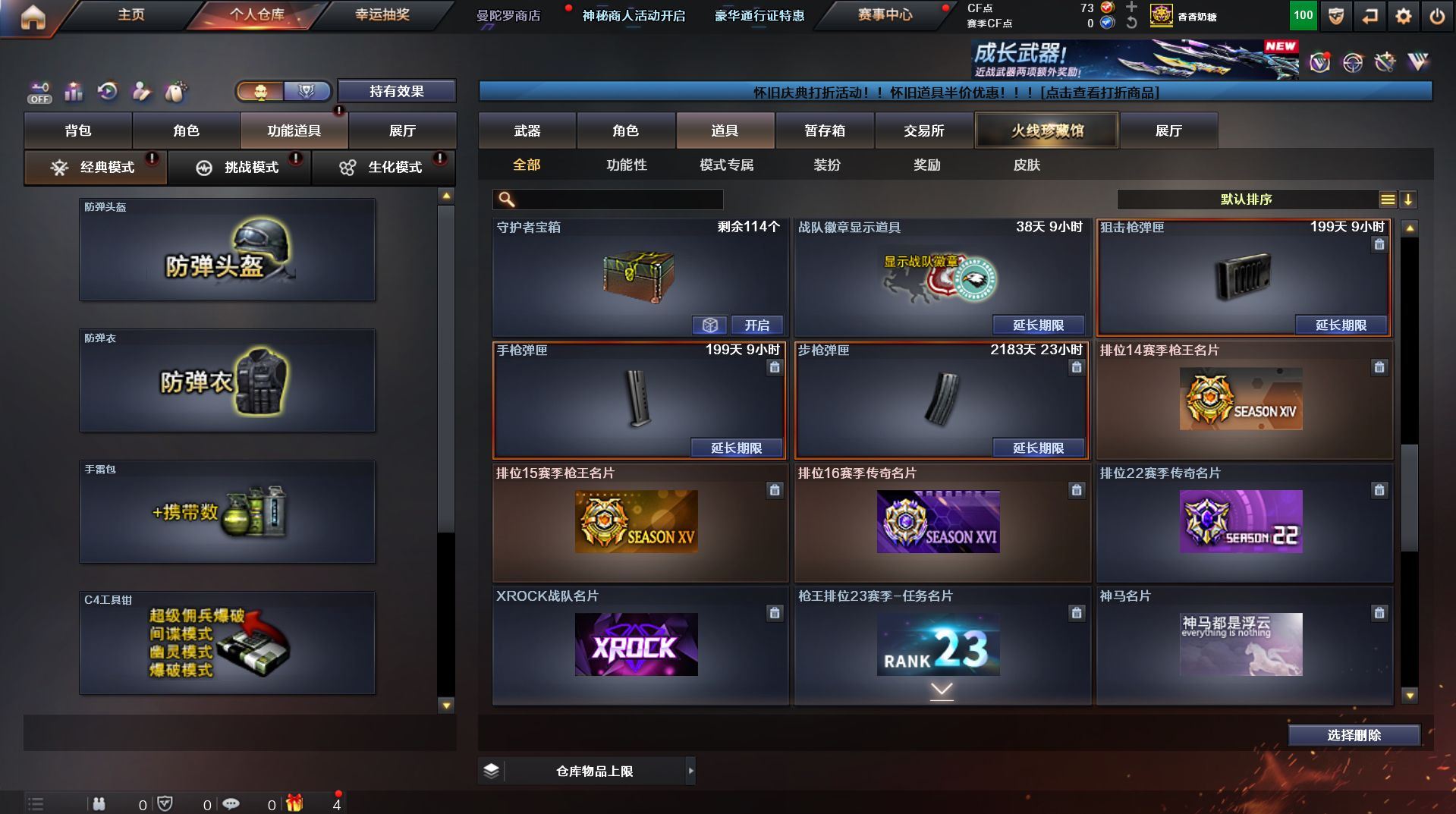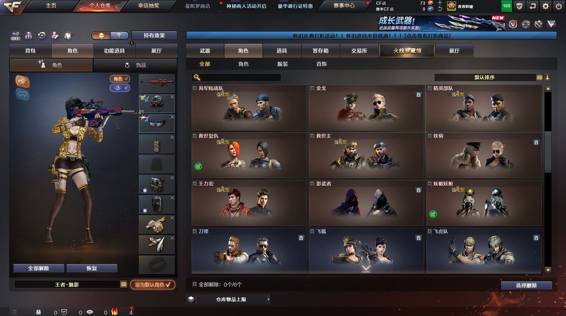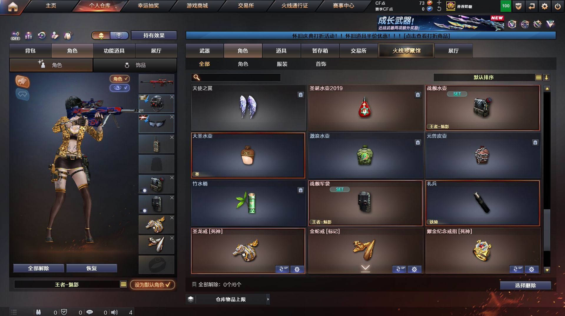 可二次 湖南一区 可排位【59v】【热门武器】:QBZ03-金色蔷薇*2,Scar Light-白虎,M200-幻神,死亡之眼,金色小号,Cat-刀锋,M4A1-黑骑士,汤姆逊-烈龙*4,RPK-盘龙,加特林-炼狱,火麒麟-绝迹,沙鹰-修罗【王者炫金武器】:王者之影,王者之魂,炫金骑士,炫金雷神,炫金武士,炫金修罗【音效卡】:AK47-火麒麟音效卡,M4A1-雷神音效卡,M4A1-黑骑士音效卡,Barrett-毁灭音效卡,Barrett-极光音效卡,Scar Light-白虎音效卡【皮肤】:雷神-荣耀之魄,雷神-星空,火麒麟-百城,火麒麟-心动糖果,毁灭-黑大圣皮肤,M4A1-千变-孔明皮肤,黑骑士耀金皮肤,无影-能量核心,战神-粉色甜心皮肤,战神-紫绶金章皮肤,战神-流金岁月皮肤*2,天龙-能量核心,AWM-天龙-传奇70KG,AWM-天龙-传奇白鲨,极光-能量核心,修罗-星空【角色】:葵,王者樱-热浪之夏,王者-魅影,暗夜-X,嘉年华灵狐,龙儿,潘多拉-X,潜龙队-X,斯沃特-X,蜀雪,铁骑-乘风破浪,铁骑荣耀,兔囡囡,雪莉杨,雪莉杨-摸金校尉,樱-缤纷夏日,影武者-X,职业选手【人偶武器】:火麒麟-绝迹,AWM-灵狐-15周年嘉年华,M37-葵,Cat-刀锋,迷你深渊冰龙,迷你生化手雷,闪光弹-小乔【暴走生化】:死亡之眼,超级对讲机【挑战大师】:冰龙粉碎者-白马银枪*2,激光毁灭者III-白马银枪,激光毁灭者III,阐释者III【英雄级武器】:AK47-火麒麟*2,M4A1-黑龙,M4A1-雷神,M4A1-黑骑士,AK47-无影,AK12-天启*2,M4A1-武圣,Scar Light-白虎,M4A1-夜魔,QBZ03-金色蔷薇*2,王者之势-觉醒版,AK-47-猩红传说,AK47-B-战神,黑骑士-海王,AWM-天龙*2,Barrett-毁灭*2,Barrett-极光,M200-幻神,王者之怒-觉醒版,RPK-盘龙,加特林-炼狱,汤姆逊-烈龙*4,沙鹰-修罗,沙鹰-天神*4,柯尔特-电竞装甲,Glock18-武圣,屠龙*5,龙啸,马来剑-夜魔,擎天,斩神刀-雷暴,王者之击-觉醒版,高爆手雷-雷暴,高爆手雷-夜魔,闪光弹-雷暴,闪光弹-夜魔,烟雾弹-雷暴,烟雾弹-夜魔【道具】:EDG炫彩背包,XROCK炫彩背包,冰冰企鹅背包-猛男专用,炫彩背包,超级背包,妩媚妖姬,绿色巨人,灵魂忍者,变异宝贝,迷雾幽灵,生化弹匣,夺命之镰,防化服*3,金色流光-枪王排位,枪王排位28赛季金色流光,枪王排位29赛季金色流光,电玩兔兔表情,动感闪耀表情,C4-红龙,防弹头盔*4,防弹衣*4,C4工具钳*4,手雷包*5【特殊枪械】:1白虎,1黑骑士,4烈龙,1盘龙,1炼狱】各种道具详情看截图、低价出售找回包 赔、截图展示段位不代 表实际段位,如赛季更新等不可抗拒因素发生变化、时限道具不保证所剩时间、标题未写送点劵默认不送【卖号买号首选亿梦】