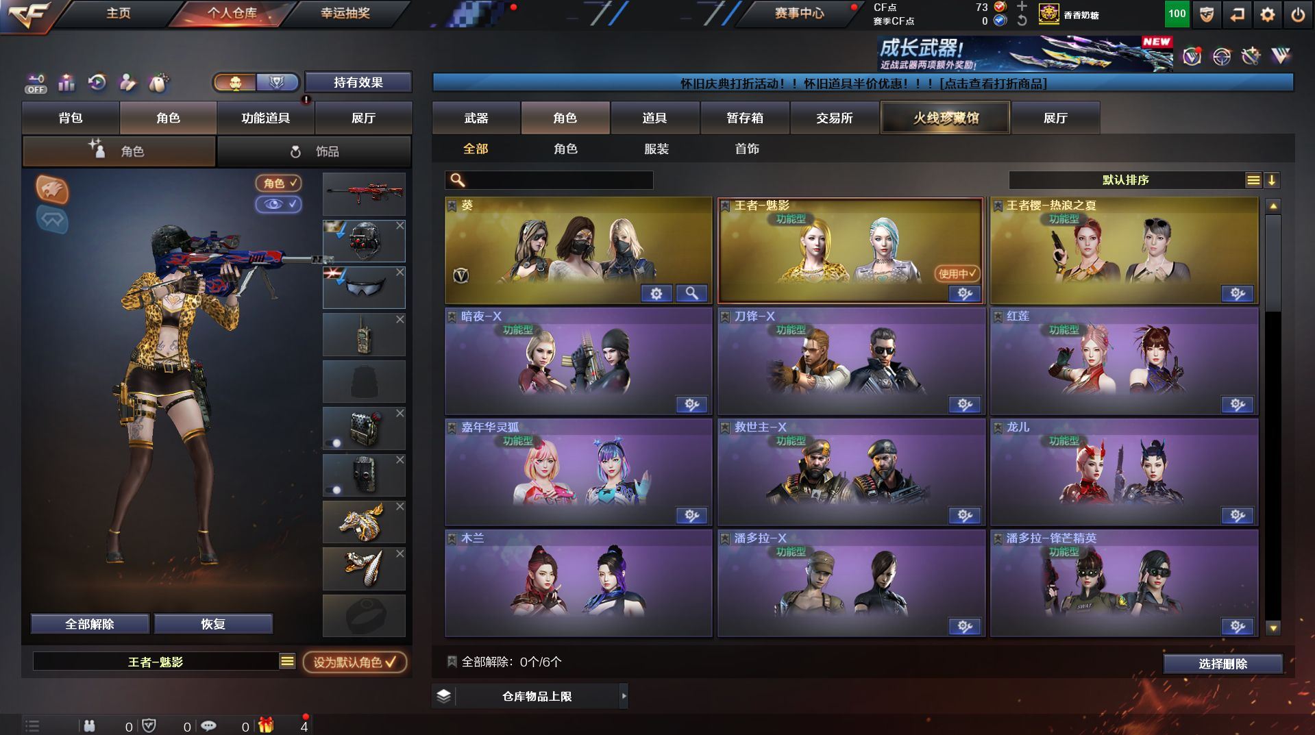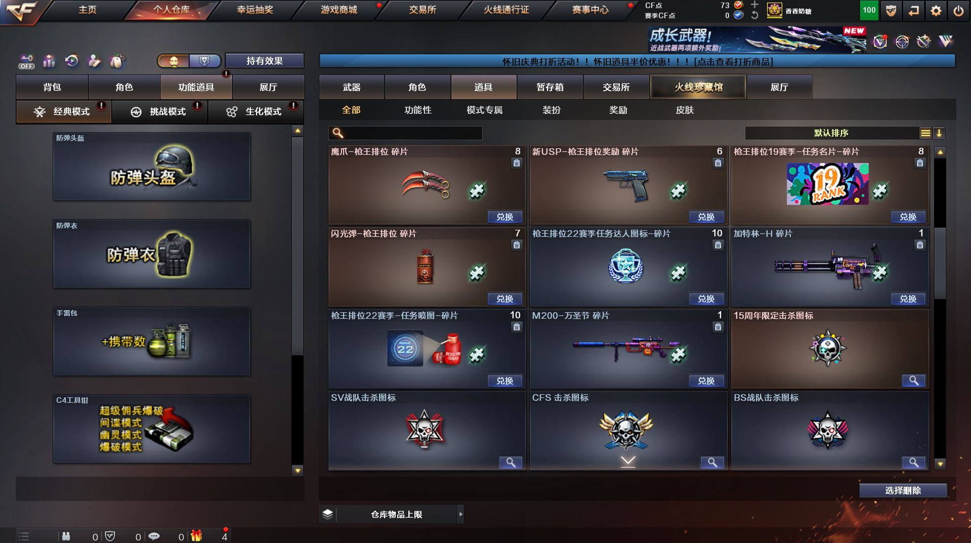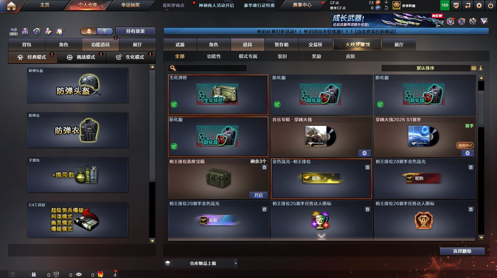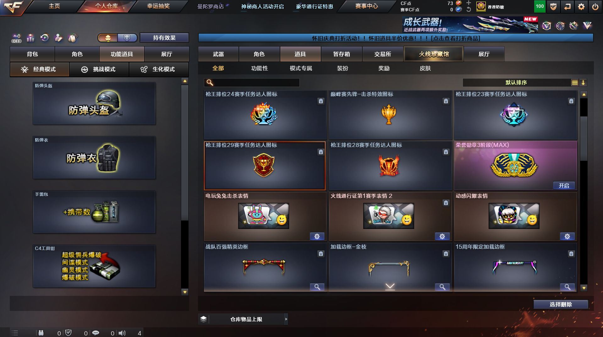 可二次 湖南一区 可排位【59v】【热门武器】:QBZ03-金色蔷薇*2,Scar Light-白虎,M200-幻神,死亡之眼,金色小号,Cat-刀锋,M4A1-黑骑士,汤姆逊-烈龙*4,RPK-盘龙,加特林-炼狱,火麒麟-绝迹,沙鹰-修罗【王者炫金武器】:王者之影,王者之魂,炫金骑士,炫金雷神,炫金武士,炫金修罗【音效卡】:AK47-火麒麟音效卡,M4A1-雷神音效卡,M4A1-黑骑士音效卡,Barrett-毁灭音效卡,Barrett-极光音效卡,Scar Light-白虎音效卡【皮肤】:雷神-荣耀之魄,雷神-星空,火麒麟-百城,火麒麟-心动糖果,毁灭-黑大圣皮肤,M4A1-千变-孔明皮肤,黑骑士耀金皮肤,无影-能量核心,战神-粉色甜心皮肤,战神-紫绶金章皮肤,战神-流金岁月皮肤*2,天龙-能量核心,AWM-天龙-传奇70KG,AWM-天龙-传奇白鲨,极光-能量核心,修罗-星空【角色】:葵,王者樱-热浪之夏,王者-魅影,暗夜-X,嘉年华灵狐,龙儿,潘多拉-X,潜龙队-X,斯沃特-X,蜀雪,铁骑-乘风破浪,铁骑荣耀,兔囡囡,雪莉杨,雪莉杨-摸金校尉,樱-缤纷夏日,影武者-X,职业选手【人偶武器】:火麒麟-绝迹,AWM-灵狐-15周年嘉年华,M37-葵,Cat-刀锋,迷你深渊冰龙,迷你生化手雷,闪光弹-小乔【暴走生化】:死亡之眼,超级对讲机【挑战大师】:冰龙粉碎者-白马银枪*2,激光毁灭者III-白马银枪,激光毁灭者III,阐释者III【英雄级武器】:AK47-火麒麟*2,M4A1-黑龙,M4A1-雷神,M4A1-黑骑士,AK47-无影,AK12-天启*2,M4A1-武圣,Scar Light-白虎,M4A1-夜魔,QBZ03-金色蔷薇*2,王者之势-觉醒版,AK-47-猩红传说,AK47-B-战神,黑骑士-海王,AWM-天龙*2,Barrett-毁灭*2,Barrett-极光,M200-幻神,王者之怒-觉醒版,RPK-盘龙,加特林-炼狱,汤姆逊-烈龙*4,沙鹰-修罗,沙鹰-天神*4,柯尔特-电竞装甲,Glock18-武圣,屠龙*5,龙啸,马来剑-夜魔,擎天,斩神刀-雷暴,王者之击-觉醒版,高爆手雷-雷暴,高爆手雷-夜魔,闪光弹-雷暴,闪光弹-夜魔,烟雾弹-雷暴,烟雾弹-夜魔【道具】:EDG炫彩背包,XROCK炫彩背包,冰冰企鹅背包-猛男专用,炫彩背包,超级背包,妩媚妖姬,绿色巨人,灵魂忍者,变异宝贝,迷雾幽灵,生化弹匣,夺命之镰,防化服*3,金色流光-枪王排位,枪王排位28赛季金色流光,枪王排位29赛季金色流光,电玩兔兔表情,动感闪耀表情,C4-红龙,防弹头盔*4,防弹衣*4,C4工具钳*4,手雷包*5【特殊枪械】:1白虎,1黑骑士,4烈龙,1盘龙,1炼狱】各种道具详情看截图、低价出售找回包 赔、截图展示段位不代 表实际段位,如赛季更新等不可抗拒因素发生变化、时限道具不保证所剩时间、标题未写送点劵默认不送【卖号买号首选亿梦】