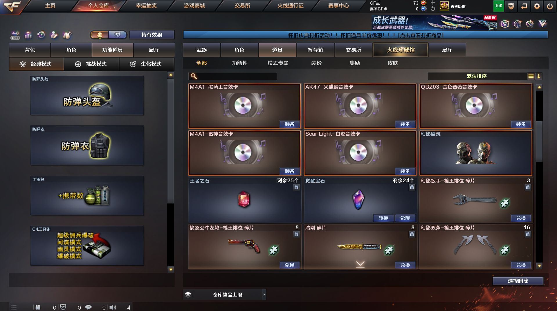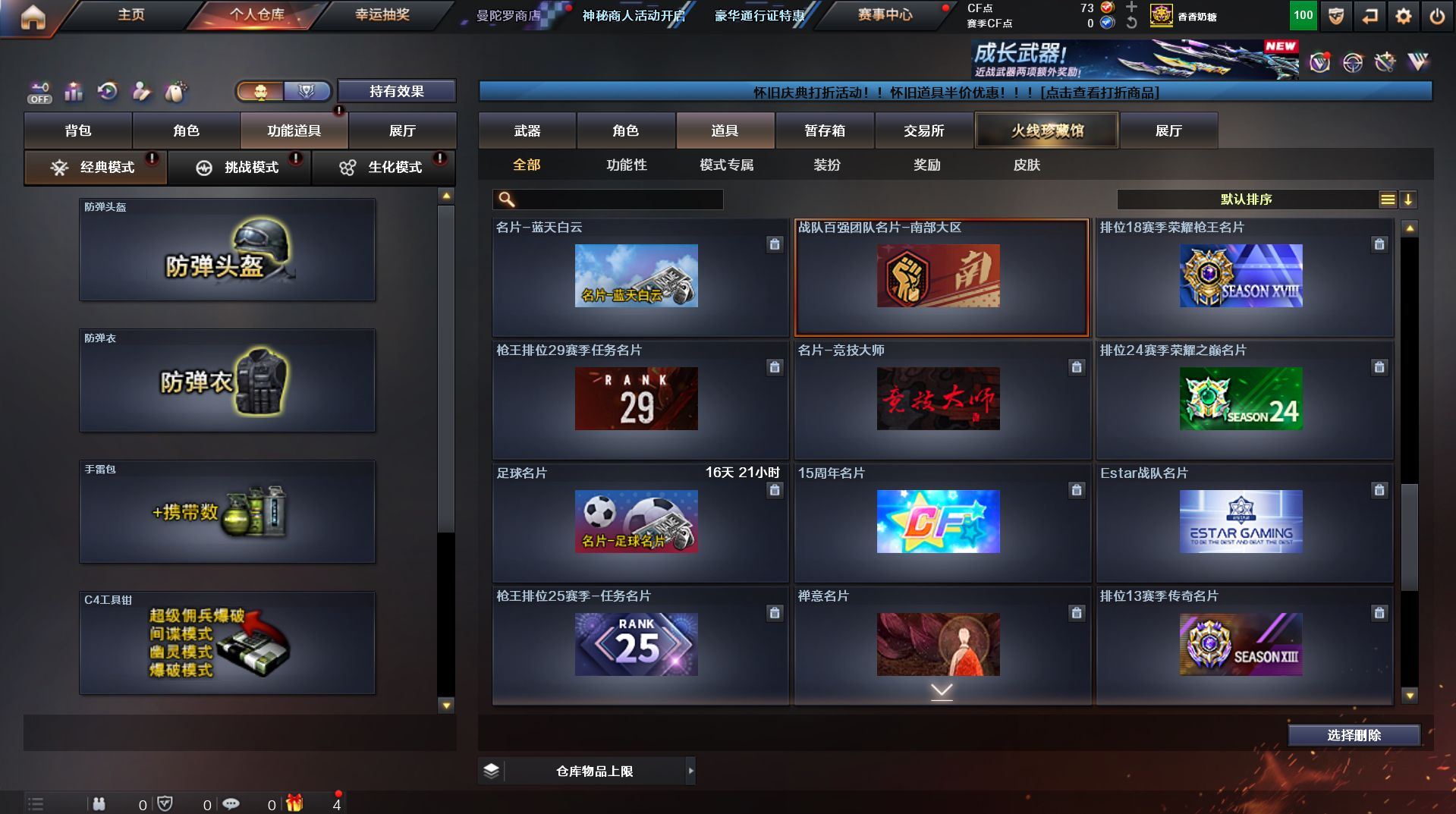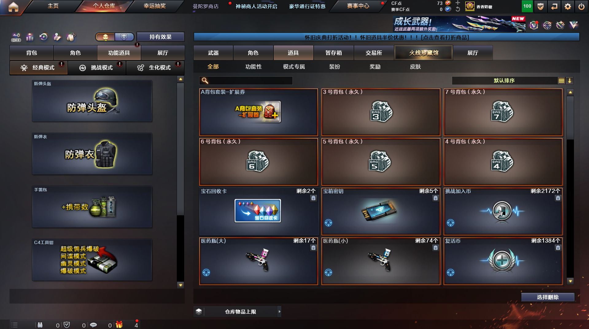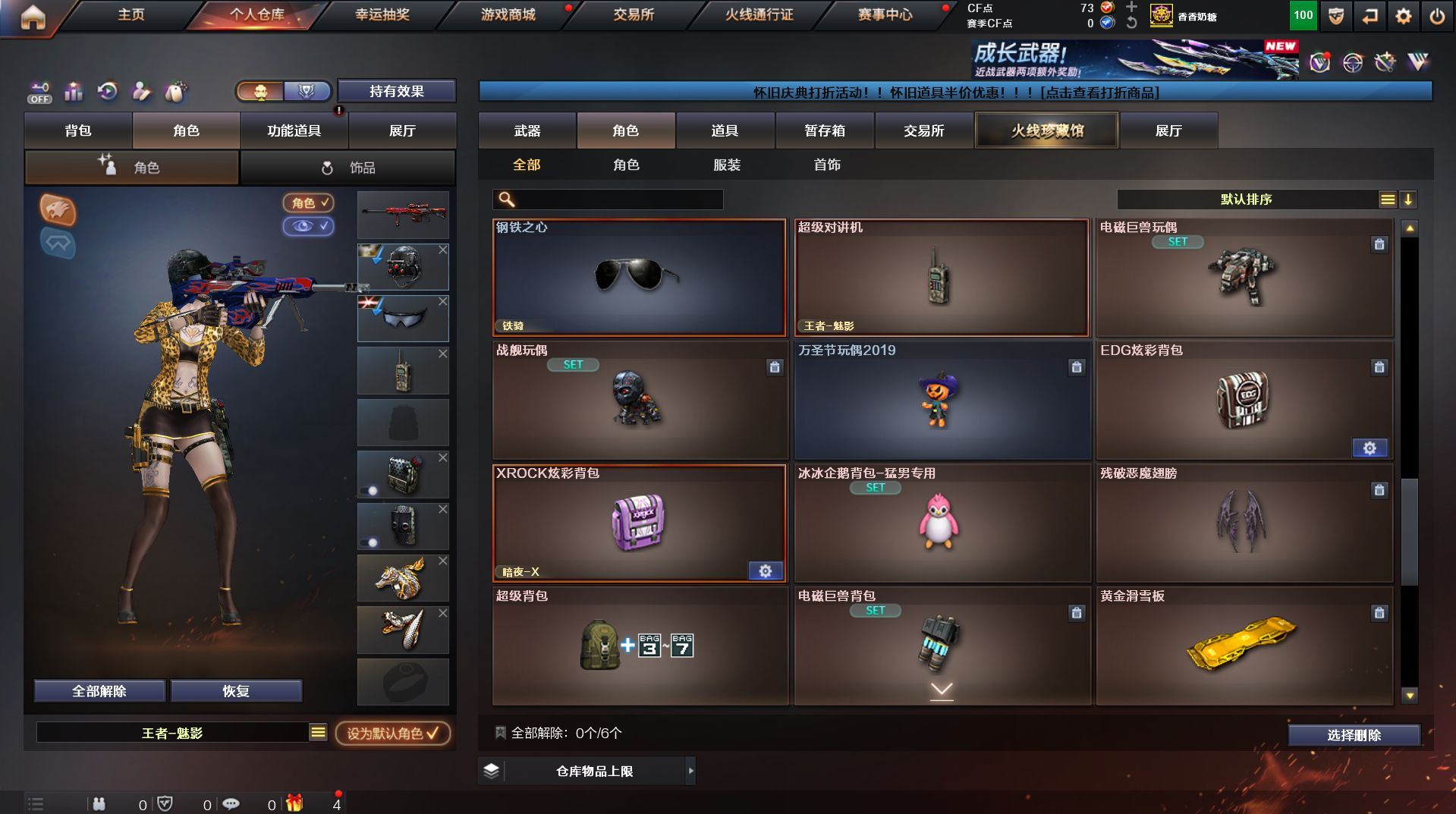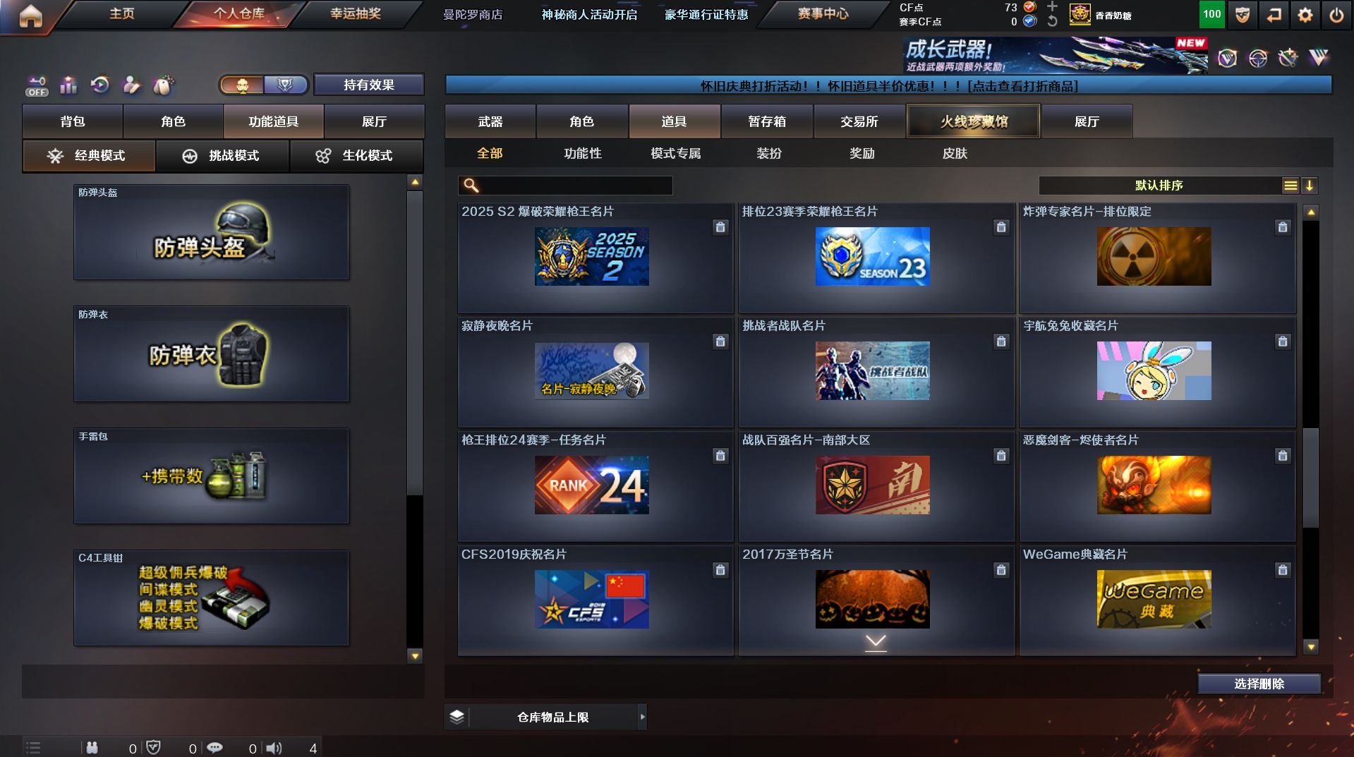 可二次 湖南一区 可排位【59v】【热门武器】:QBZ03-金色蔷薇*2,Scar Light-白虎,M200-幻神,死亡之眼,金色小号,Cat-刀锋,M4A1-黑骑士,汤姆逊-烈龙*4,RPK-盘龙,加特林-炼狱,火麒麟-绝迹,沙鹰-修罗【王者炫金武器】:王者之影,王者之魂,炫金骑士,炫金雷神,炫金武士,炫金修罗【音效卡】:AK47-火麒麟音效卡,M4A1-雷神音效卡,M4A1-黑骑士音效卡,Barrett-毁灭音效卡,Barrett-极光音效卡,Scar Light-白虎音效卡【皮肤】:雷神-荣耀之魄,雷神-星空,火麒麟-百城,火麒麟-心动糖果,毁灭-黑大圣皮肤,M4A1-千变-孔明皮肤,黑骑士耀金皮肤,无影-能量核心,战神-粉色甜心皮肤,战神-紫绶金章皮肤,战神-流金岁月皮肤*2,天龙-能量核心,AWM-天龙-传奇70KG,AWM-天龙-传奇白鲨,极光-能量核心,修罗-星空【角色】:葵,王者樱-热浪之夏,王者-魅影,暗夜-X,嘉年华灵狐,龙儿,潘多拉-X,潜龙队-X,斯沃特-X,蜀雪,铁骑-乘风破浪,铁骑荣耀,兔囡囡,雪莉杨,雪莉杨-摸金校尉,樱-缤纷夏日,影武者-X,职业选手【人偶武器】:火麒麟-绝迹,AWM-灵狐-15周年嘉年华,M37-葵,Cat-刀锋,迷你深渊冰龙,迷你生化手雷,闪光弹-小乔【暴走生化】:死亡之眼,超级对讲机【挑战大师】:冰龙粉碎者-白马银枪*2,激光毁灭者III-白马银枪,激光毁灭者III,阐释者III【英雄级武器】:AK47-火麒麟*2,M4A1-黑龙,M4A1-雷神,M4A1-黑骑士,AK47-无影,AK12-天启*2,M4A1-武圣,Scar Light-白虎,M4A1-夜魔,QBZ03-金色蔷薇*2,王者之势-觉醒版,AK-47-猩红传说,AK47-B-战神,黑骑士-海王,AWM-天龙*2,Barrett-毁灭*2,Barrett-极光,M200-幻神,王者之怒-觉醒版,RPK-盘龙,加特林-炼狱,汤姆逊-烈龙*4,沙鹰-修罗,沙鹰-天神*4,柯尔特-电竞装甲,Glock18-武圣,屠龙*5,龙啸,马来剑-夜魔,擎天,斩神刀-雷暴,王者之击-觉醒版,高爆手雷-雷暴,高爆手雷-夜魔,闪光弹-雷暴,闪光弹-夜魔,烟雾弹-雷暴,烟雾弹-夜魔【道具】:EDG炫彩背包,XROCK炫彩背包,冰冰企鹅背包-猛男专用,炫彩背包,超级背包,妩媚妖姬,绿色巨人,灵魂忍者,变异宝贝,迷雾幽灵,生化弹匣,夺命之镰,防化服*3,金色流光-枪王排位,枪王排位28赛季金色流光,枪王排位29赛季金色流光,电玩兔兔表情,动感闪耀表情,C4-红龙,防弹头盔*4,防弹衣*4,C4工具钳*4,手雷包*5【特殊枪械】:1白虎,1黑骑士,4烈龙,1盘龙,1炼狱】各种道具详情看截图、低价出售找回包 赔、截图展示段位不代 表实际段位,如赛季更新等不可抗拒因素发生变化、时限道具不保证所剩时间、标题未写送点劵默认不送【卖号买号首选亿梦】