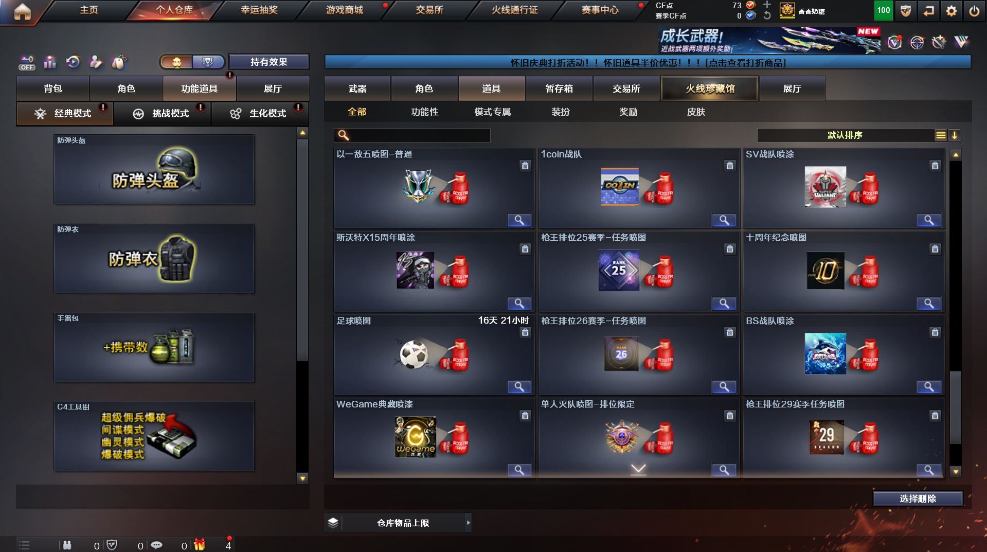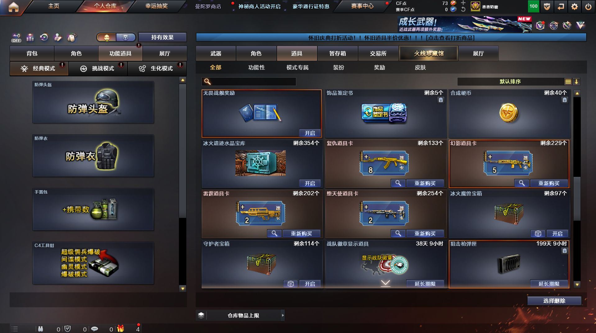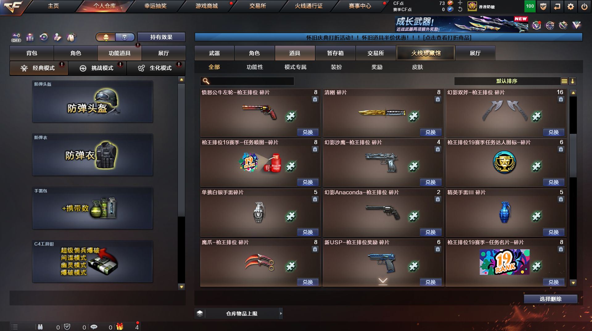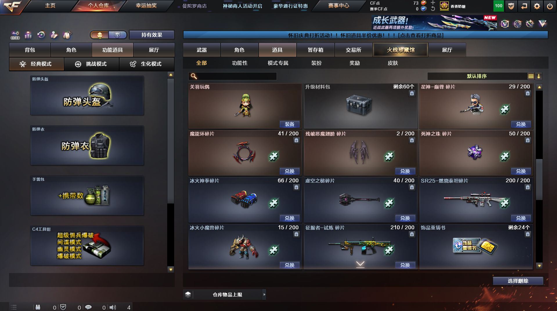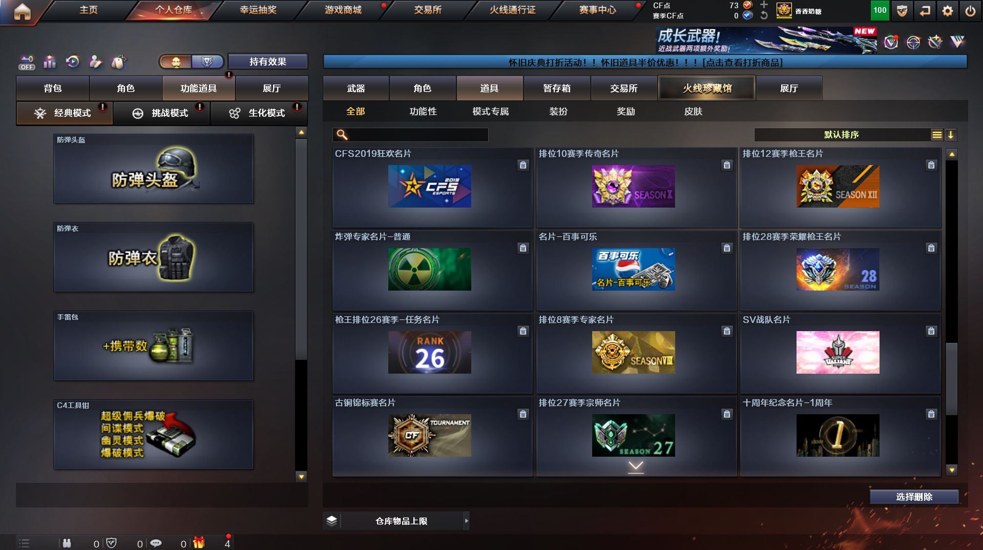 可二次 湖南一区 可排位【59v】【热门武器】:QBZ03-金色蔷薇*2,Scar Light-白虎,M200-幻神,死亡之眼,金色小号,Cat-刀锋,M4A1-黑骑士,汤姆逊-烈龙*4,RPK-盘龙,加特林-炼狱,火麒麟-绝迹,沙鹰-修罗【王者炫金武器】:王者之影,王者之魂,炫金骑士,炫金雷神,炫金武士,炫金修罗【音效卡】:AK47-火麒麟音效卡,M4A1-雷神音效卡,M4A1-黑骑士音效卡,Barrett-毁灭音效卡,Barrett-极光音效卡,Scar Light-白虎音效卡【皮肤】:雷神-荣耀之魄,雷神-星空,火麒麟-百城,火麒麟-心动糖果,毁灭-黑大圣皮肤,M4A1-千变-孔明皮肤,黑骑士耀金皮肤,无影-能量核心,战神-粉色甜心皮肤,战神-紫绶金章皮肤,战神-流金岁月皮肤*2,天龙-能量核心,AWM-天龙-传奇70KG,AWM-天龙-传奇白鲨,极光-能量核心,修罗-星空【角色】:葵,王者樱-热浪之夏,王者-魅影,暗夜-X,嘉年华灵狐,龙儿,潘多拉-X,潜龙队-X,斯沃特-X,蜀雪,铁骑-乘风破浪,铁骑荣耀,兔囡囡,雪莉杨,雪莉杨-摸金校尉,樱-缤纷夏日,影武者-X,职业选手【人偶武器】:火麒麟-绝迹,AWM-灵狐-15周年嘉年华,M37-葵,Cat-刀锋,迷你深渊冰龙,迷你生化手雷,闪光弹-小乔【暴走生化】:死亡之眼,超级对讲机【挑战大师】:冰龙粉碎者-白马银枪*2,激光毁灭者III-白马银枪,激光毁灭者III,阐释者III【英雄级武器】:AK47-火麒麟*2,M4A1-黑龙,M4A1-雷神,M4A1-黑骑士,AK47-无影,AK12-天启*2,M4A1-武圣,Scar Light-白虎,M4A1-夜魔,QBZ03-金色蔷薇*2,王者之势-觉醒版,AK-47-猩红传说,AK47-B-战神,黑骑士-海王,AWM-天龙*2,Barrett-毁灭*2,Barrett-极光,M200-幻神,王者之怒-觉醒版,RPK-盘龙,加特林-炼狱,汤姆逊-烈龙*4,沙鹰-修罗,沙鹰-天神*4,柯尔特-电竞装甲,Glock18-武圣,屠龙*5,龙啸,马来剑-夜魔,擎天,斩神刀-雷暴,王者之击-觉醒版,高爆手雷-雷暴,高爆手雷-夜魔,闪光弹-雷暴,闪光弹-夜魔,烟雾弹-雷暴,烟雾弹-夜魔【道具】:EDG炫彩背包,XROCK炫彩背包,冰冰企鹅背包-猛男专用,炫彩背包,超级背包,妩媚妖姬,绿色巨人,灵魂忍者,变异宝贝,迷雾幽灵,生化弹匣,夺命之镰,防化服*3,金色流光-枪王排位,枪王排位28赛季金色流光,枪王排位29赛季金色流光,电玩兔兔表情,动感闪耀表情,C4-红龙,防弹头盔*4,防弹衣*4,C4工具钳*4,手雷包*5【特殊枪械】:1白虎,1黑骑士,4烈龙,1盘龙,1炼狱】各种道具详情看截图、低价出售找回包 赔、截图展示段位不代 表实际段位,如赛季更新等不可抗拒因素发生变化、时限道具不保证所剩时间、标题未写送点劵默认不送【卖号买号首选亿梦】