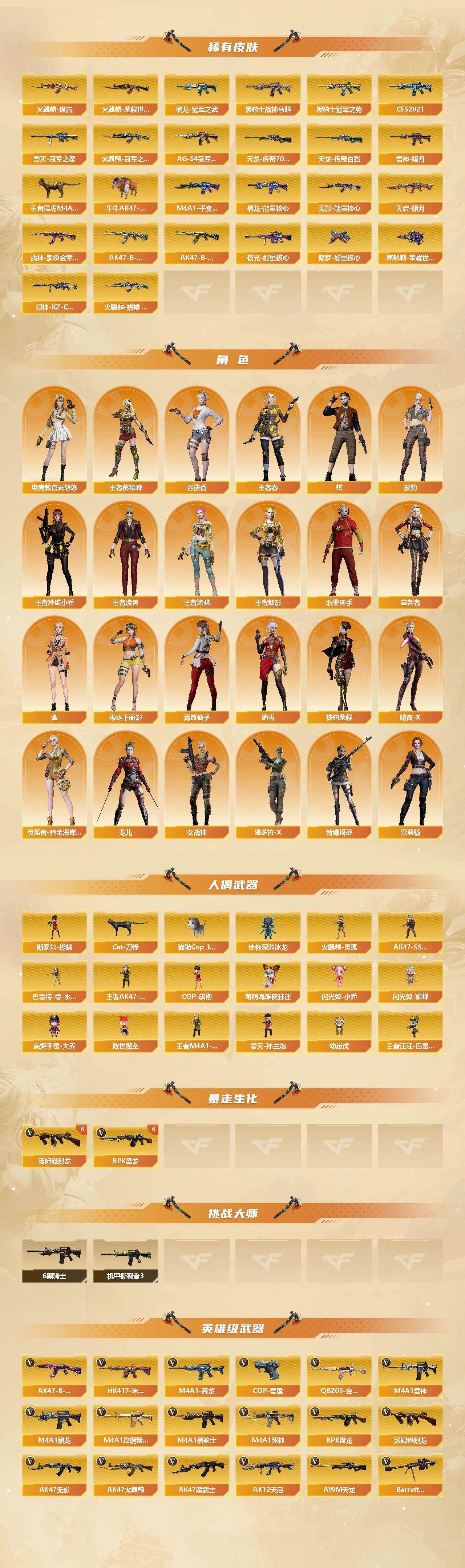 可二次 四川一区 可排位【222V】【传说武器】:传说光耀(序列号版),传说光耀,传说暗裔,传说辉光,传说圣灵,传说梦魇【传说角色】:传说女帝,传说艾莉莎【热门武器】:传说光耀,传说暗裔,传说梦魇,传说圣灵,传说辉光,QBZ03-金色蔷薇,HK417-朱雀,M4A1-青龙,M200-幻神,M200-竞技荣光,荣耀世冠-火麒麟,荣耀世冠-雷神,柯尔特-冠军之特,荣耀世冠-柯尔特*3,Kar98K-星神,金色小号,Cat-刀锋,牛牛AK47-贵族金,M4A1-黑骑士*7,汤姆逊-烈龙*6,RPK-盘龙*6,斯泰尔-蝴蝶,猫猫Cop 357*2,降世魔童,王者M4A1-萌萌金发刀锋,王者AK47-萌萌银发刀锋,毁灭-孙三炮,王者猛虎M4A1,幼崽虎,USP-雷暴,COP-堕天神,COP 357-幻灵*2,沙鹰-修罗,荣耀世冠-龙啸,黄金猫猫手套-白鲨,金刚伞【音效卡】:M200-幻神音效卡,AK47-火麒麟音效卡,M4A1-雷神音效卡*2,M4A1-黑龙音效卡,M4A1-黑骑士音效卡*2,Barrett-毁灭音效卡,QBZ03-金色蔷薇音效卡,白鲨语音包【皮肤】:幻神-周瑜皮肤,幻神-冠军之幻,幻神-AG-CFPLS17冠军,幻神-青鹤,幻神-宠儿-2021MVP,幻神-CFS2022,幻神-KZ-CFPLS25冠军 皮肤,雷神-暗月,雷神-荣耀之魄,M4A1-雷神-CFS 2019,雷神-虎将,雷神-耀金皮肤,雷神-冠军之魄,雷神-传奇N9,雷神-宠儿-2019MVP,雷神-杨戬,雷神-R.LGD-CFPLS18冠军,雷神-荣耀世冠AG,王者猛虎M4A1,火麒麟-冠军之心,传奇石头-横秒之巅,火麒麟-盘古,火麒麟-荣耀世冠AG,牛牛AK47-贵族金,火麒麟-拼搏 皮肤,毁灭-星空,毁灭-冠军之怒,毁灭-CFS2020,M4A1-千变-孔明皮肤,黑龙-能量核心,黑龙-冠军之武,黑骑士耀金皮肤,黑骑士-冠军之势,黑骑士-战神马超,黑骑士-CFS2021,AWM-天龙-传奇70KG【角色】:炫,迷迭香,影豹,电竞教官-云悠悠,审判者,王者-葵-貂蝉,王者春,王者凌霄,王者涂鸦,王者-魅影,王者玲珑-小乔,暗夜-X,零-水下丽影,灵狐者-黄金海岸,龙儿,女战神,潘多拉-X,青霞仙子,蜀雪,铁骑荣耀,新娜塔莎,雪莉杨,幽,职业选手【人偶武器】:王者M4A1-萌萌金发刀锋,毁灭-孙三炮,火麒麟-灵狐,王者AK47-萌萌银发刀锋,斯泰尔-蝴蝶,巴雷特-零-水下丽影,王者汪汪-巴雷特,幼崽虎,COP-旗袍【英雄级武器】:AK47-火麒麟*2,M4A1-黑龙,M4A1-雷神*4,M4A1-黑骑士*7,AK47-无影,M4A1-死神,AK47-黑武士*2,AK12-天启,AK47-黑鲨,M4A1-龙血,M4A1-青龙,M4A1-堕天神,HK417-朱雀,M4A1-夜魔,无影-神兵利器,M4A1-玫瑰精灵,QBZ03-金色蔷薇,M4A1-猎神,王者之心-觉醒版,王者之武-觉醒版,王者之魄-觉醒版,王者之幻-觉醒版,AK-47-猩红传说,AK47-B-战神,AK47-B-常胜将军,王者之烈-觉醒版,M4A1-雷霆王者-觉醒版,QBZ-03-王者蔷薇-觉醒版,白虎之魄-觉醒版,荣耀世冠-火麒麟,荣耀世冠-雷神,AWM-天龙,Barrett-毁灭*4,Barrett-极光,AWM-裁决,M200-幻神,Barrett-朱雀,Kar98K-星神,M200-竞技荣光,王者之怒-觉醒版,Barrett-雷霆王者-觉醒版,王者星神-觉醒版,RPK-盘龙*6,悦蓝-惊涛骇浪-觉醒版,汤姆逊-烈龙*6,AA-12-雷霆,沙鹰-修罗,沙鹰-天神*2,USP-雷暴,COP-雷霆,COP-堕天神【道具】:炫彩背包,超级背包,变异宝贝,夺命之镰,防化服,金色流光-枪王排位*2,星辰流光-枪王排位,蝴蝶表情,斯沃特表情,新白银C4,新黄金C4,C4-高无钳,防弹头盔*2,防弹衣*3,C4工具钳*2,手雷包】各种道具详情看截图、低价出售找回包 赔、截图展示段位不代 表实际段位,如赛季更新等不可抗拒因素发生变化、时限道具不保证所剩时间、标题未写送点劵默认不送【卖号买号首选亿梦】
