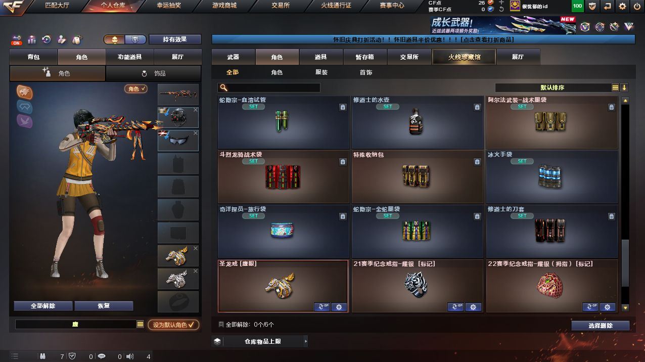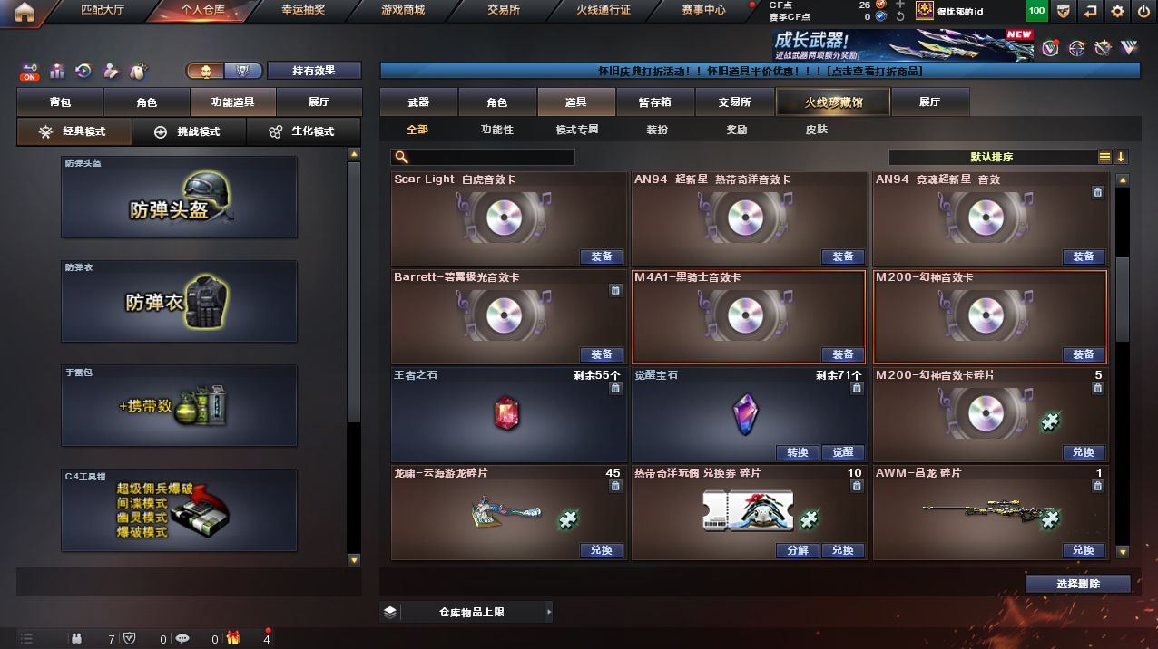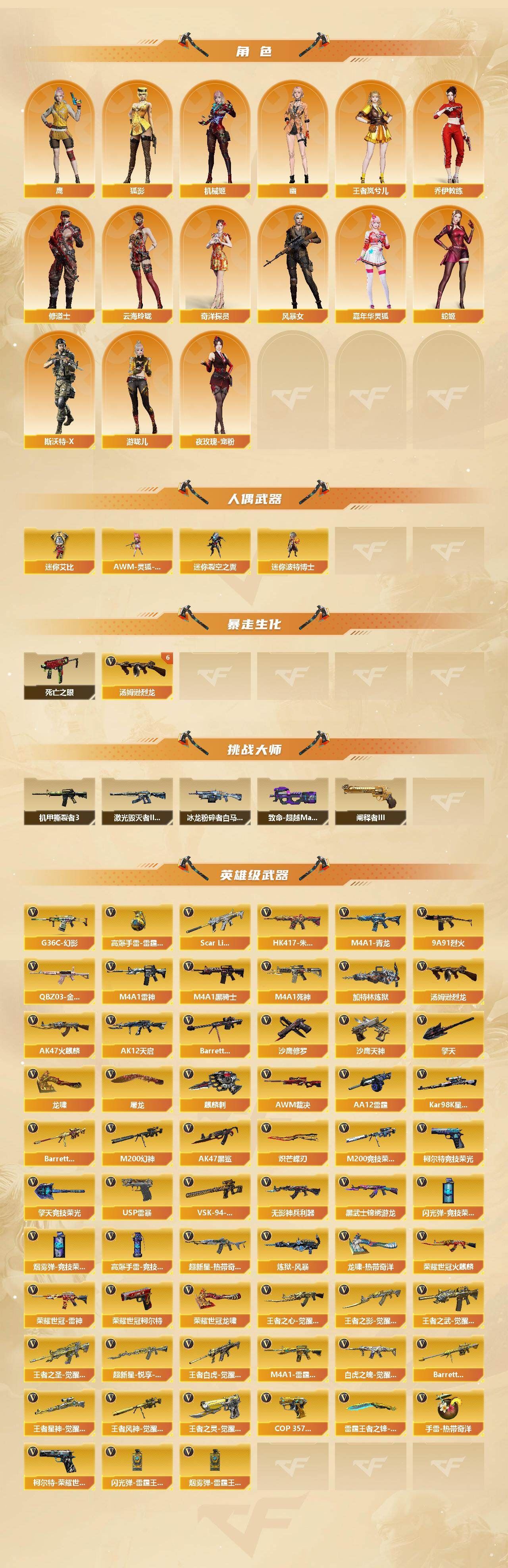 可二次可排位 云南一区-106V-40王者武器数-5炫金武器数【传说武器】:传说幽瞳【传说角色】:传说影煞【热门武器】:传说幽瞳,G36C-幻影,QBZ03-金色蔷薇,Scar Light-白虎,HK417-朱雀,M4A1-青龙,M200-幻神,柯尔特-荣耀世冠白鲨2023,M200-竞技荣光,死亡之眼,青龙之魄,荣耀世冠-火麒麟,荣耀世冠-雷神,荣耀世冠-柯尔特,Kar98K-星神,M4A1-黑骑士*4,汤姆逊-烈龙*6,加特林-炼狱,羊驼玩偶,USP-雷暴,沙鹰-修罗*3,Knife-冠军之刃,炽芒蝶刃*2,炽芒蝶刃-荣耀世冠白鲨2023 皮肤,荣耀世冠-龙啸【王者炫金武器】:王者青龙,青龙之魄,王者蔷薇,王者玉锋,炫金骑士,炫金黑龙,炫金雷神,炫金毁灭,炫金修罗【音效卡】:AN94-超新星-热带奇洋音效卡,M200-幻神音效卡,M4A1-雷神音效卡,M4A1-黑骑士音效卡,Barrett-毁灭音效卡,QBZ03-金色蔷薇音效卡,AWM-裁决音效卡,Scar Light-白虎音效卡,Barrett-碧霄极光音效卡*2【皮肤】:幻神-青鹤,幻神-Heartshot 皮肤,幻神-传奇欧欧 皮肤,金色蔷薇-Heartshot皮肤,裁决-流光秘银,雷神-荣耀之魄,雷神-星空,雷神-虎将,雷神-荣耀世冠AG,雷神-化蛇 皮肤,火麒麟-雷神,火麒麟-平天大圣,火麒麟-白虎,火麒麟-荣耀世冠AG,火麒麟-心动糖果,毁灭-荣耀之怒,毁灭-星空,毁灭-黑大圣皮肤,毁灭-风暴,M4A1-千变-孔明皮肤,AWM-天龙-传奇70KG,AWM-天龙-传奇白鲨,修罗-星空*3,屠龙-荣耀之锋,屠龙-荣耀世冠AG,炽芒蝶刃-荣耀世冠白鲨2023 皮肤【角色】:炫,雨棠,电竞教官-云悠悠,鹰,机械姬,零·纪元,王者-瞳-闭月羞花,王者葵-惊若翩鸿,王者岚兮儿,狐影,奇洋探员,乔伊教练,修道士,云海玲珑,风暴女*2,嘉年华灵狐,蛇姬,斯沃特-X,夜玫瑰-宠粉,幽,游珑儿【人偶武器】:AWM-灵狐-15周年嘉年华,迷你裂空之翼,迷你波特博士,迷你艾比【暴走生化】:死亡之眼【挑战大师】:致命乱世-超越Max,冰龙粉碎者-白马银枪,激光毁灭者III-白马银枪,机甲撕裂者III,阐释者III【英雄级武器】:AK47-火麒麟*2,M4A1-雷神*3,M4A1-黑骑士*4,M4A1-死神,AK12-天启,AK47-黑鲨,M4A1-青龙,HK417-朱雀,Scar Light-白虎,无影-神兵利器,G36C-幻影,黑武士-锦绣游龙,超新星-热带奇洋,QBZ03-金色蔷薇,9A91-烈火,王者之心-觉醒版,王者之影-觉醒版,王者之武-觉醒版,王者之圣-觉醒版,超新星-悦享-觉醒版,王者白虎-觉醒版,M4A1-雷霆王者-觉醒版,白虎之魄-觉醒版,荣耀世冠-火麒麟,荣耀世冠-雷神,机械迷城-穹宇,Barrett-毁灭,AWM-裁决,M200-幻神,Barrett-朱雀,Kar98K-星神,M200-竞技荣光,VSK-94-金蚀,Barrett-雷霆王者-觉醒版,王者星神-觉醒版,王者风神-觉醒版,加特林-炼狱,炼狱-风暴,汤姆逊-烈龙*6,AA-12-雷霆*2,沙鹰-修罗*3,沙鹰-天神,USP-雷暴,COP 357-雷霆王者-觉醒版*2,柯尔特-荣耀世冠白鲨2023,荣耀世冠-柯尔特,柯尔特-竞技荣光*2,王者之灵-觉醒版,屠龙*3,龙啸,擎天*2,麒麟刺*2,擎天-竞技荣光*3,炽芒蝶刃*2,龙啸-热带奇洋,荣耀世冠-龙啸,雷霆王者之锋-觉醒版,高爆手雷-竞技荣光*4,手雷-热带奇洋,高爆手雷-雷霆王者-觉醒版*5,闪光弹-竞技荣光*4,闪光弹-雷霆王者-觉醒版*3,烟雾弹-竞技荣光*5,烟雾弹-雷霆王者-觉醒版*3【道具】:BS战队炫彩背包,Q9战队炫彩背包,奇洋探员-海龟背包,女皇终结者-背包,热带奇洋炫彩背包,超级背包,女皇终结者-魔龙之吻,救世主-黑桃战神,绿色巨人,灵魂忍者,变异宝贝,迷雾幽灵,生化弹匣,夺命之镰,防化服*2,金色流光-枪王排位,流光-鎏金之域,枪王排位28赛季金色流光,枪王排位29赛季金色流光,热带奇洋表情,防弹头盔*2,防弹衣*2,C4工具钳*2,手雷包*2,各种道具详情看截图、低价出售找回包 赔、截图展示段位不代 表实际段位,如赛季更新等不可抗拒因素发生变化、时限道具不保证所剩时间、标题未写送点劵默认不送【卖号买号首选亿梦】