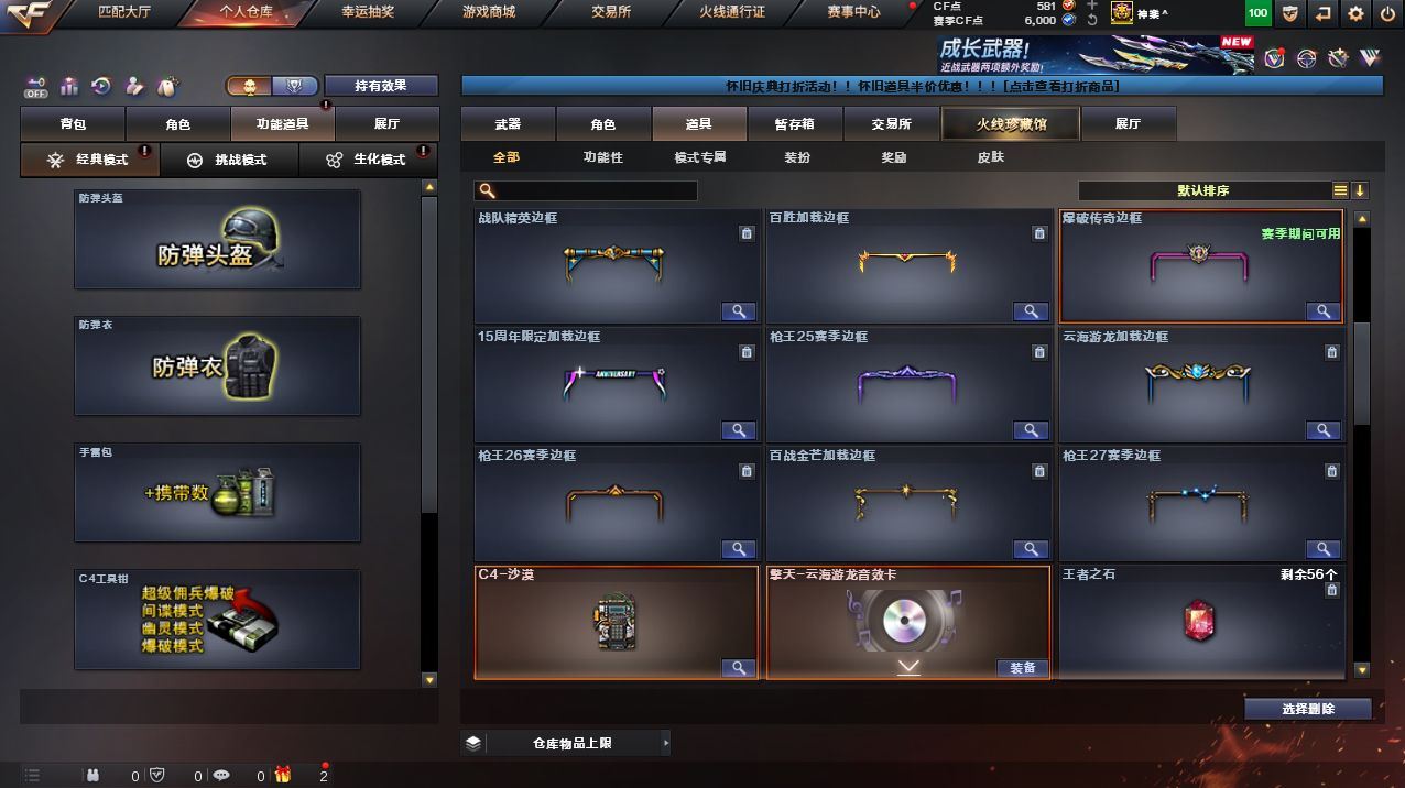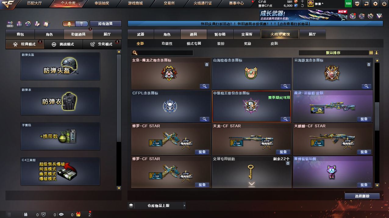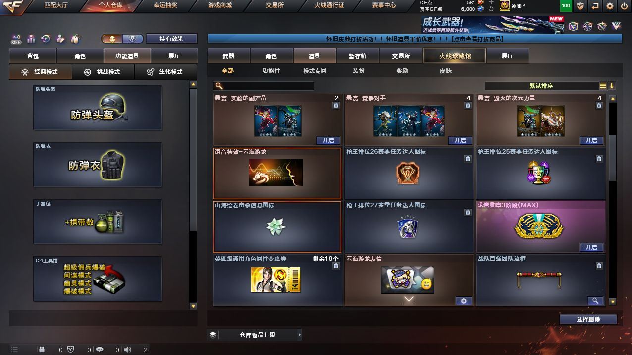 可二次可排位北方大区-17V-1王者武器数-1炫金武器数【热门武器】:M4A1-青龙,M200-幻神【王者炫金武器】:炫金毁灭【音效卡】:擎天-云海游龙音效卡【皮肤】:裁决-运输船 皮肤,火麒麟-雷神,轻型军用手斧-再燃火线【角色】:云海玲珑,葵-阿尔法武装,嘉年华灵狐,娟娟,兰妹妹,灵狐者-职业经理,龙儿,铁骑荣耀【人偶武器】:AWM-灵狐-15周年嘉年华,迷你波特博士,夺魂*2,深渊终结者手雷,Barrett-夜玫瑰【挑战大师】:冰龙粉碎者-白马银枪,激光毁灭者III-白马银枪*2,激光毁灭者III【英雄级武器】:M4A1-青龙,机械迷城-穹宇,M200-幻神,王者风神-觉醒版,烈龙-云海游龙,修罗-云海游龙,擎天-云海游龙,麒麟刺-百战金芒,手雷-云海游龙,闪光弹-玄豹*3,烟雾弹-幻灵*2【道具】:BS战队炫彩背包,云海游龙炫彩背包,女皇终结者-背包,女皇终结者-魔龙之吻,救世主-黑桃战神,绿色巨人,灵魂忍者,迷雾幽灵,夺命之镰,防化服*3,金色流光-枪王排位*2,星辰流光-枪王排位,云海游龙表情,C4-沙漠,防弹头盔*4,防弹衣*4,C4工具钳*3,手雷包*3, 各种道具详情看截图、低价出售找回包 赔、截图展示段位不代 表实际段位,如赛季更新等不可抗拒因素发生变化、时限道具不保证所剩时间、标题未写送点劵默认不送【卖号买号首选亿梦】