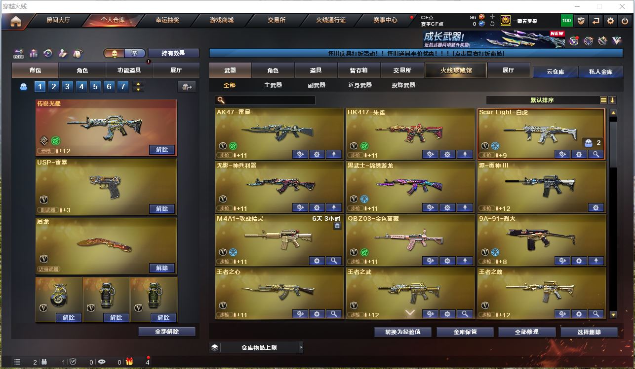 ljh AK033488 南方大区 100v【亮点解析 生化六烈+蝴蝶】【M200-幻神】【Kar98K-星神】【传说光耀】【ScarLight-白虎】【QBZ03-金色蔷薇】【生化 2炼狱 6烈龙 蝴蝶 死亡之眼】【Barrett-毁灭+音效卡】【极光】【雷暴套】【AK47-火麒麟】【黑龙】【M4A1-雷神+音效卡】【黑骑士+音效卡+黑骑士-马超】【王者之心 王者之武 王者之魄】【无影 死神 黑武士 天启 超新星 机械迷城 hk417-朱雀】【10手枪 修罗*6 天神*2 usp雷暴】【18近战 屠龙*3 龙啸*5 擎天*5 麒麟刺 斩神刀雷暴 王者之锋 】【手雷 雷暴雷 夜魔】【角色 魅影 乔伊教练 修道士】【Barrett-毁灭音效卡 M4A1-雷神音效卡】-----更多炫彩背包/光效/名片/武器具体看图!截图展示段位不代实际段位,赛季更新等不可抗拒因素发生变化、时限道具不保证所剩时间、标题未写送点券默认不送】【主播担保+安全至上+性价比 买号卖号只选金牌商家一左友】