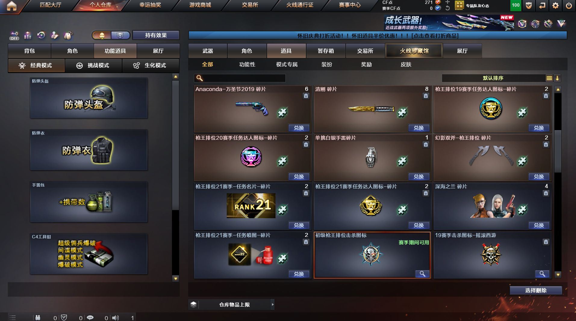 号998 可二次南部大区江西一区可排位【53v】【堕天神套】【qbz金色蔷薇】【毁灭音效卡】【cop堕天神】【千变+黑龙+雷神+无影+死神+机械迷城+龙血+堕天神+金色蔷薇王者之心+天龙+毁灭+炼狱+烈龙2】【m41a 雷神精英刀锋】【葵+迷迭香】背包 防化服+夺命之镰 永久ac 工具钳 手雷包/光效/名片各种道具详情看截图、低价出售找回、截图展示段位不代表实际段位,如赛季更新等不可抗拒因素发生变化、时限道具不保证剩时间、标题未写送点默认不送【主播担保+安全至上+性价比买号卖号只选择金牌商家北极星 安全有保障】