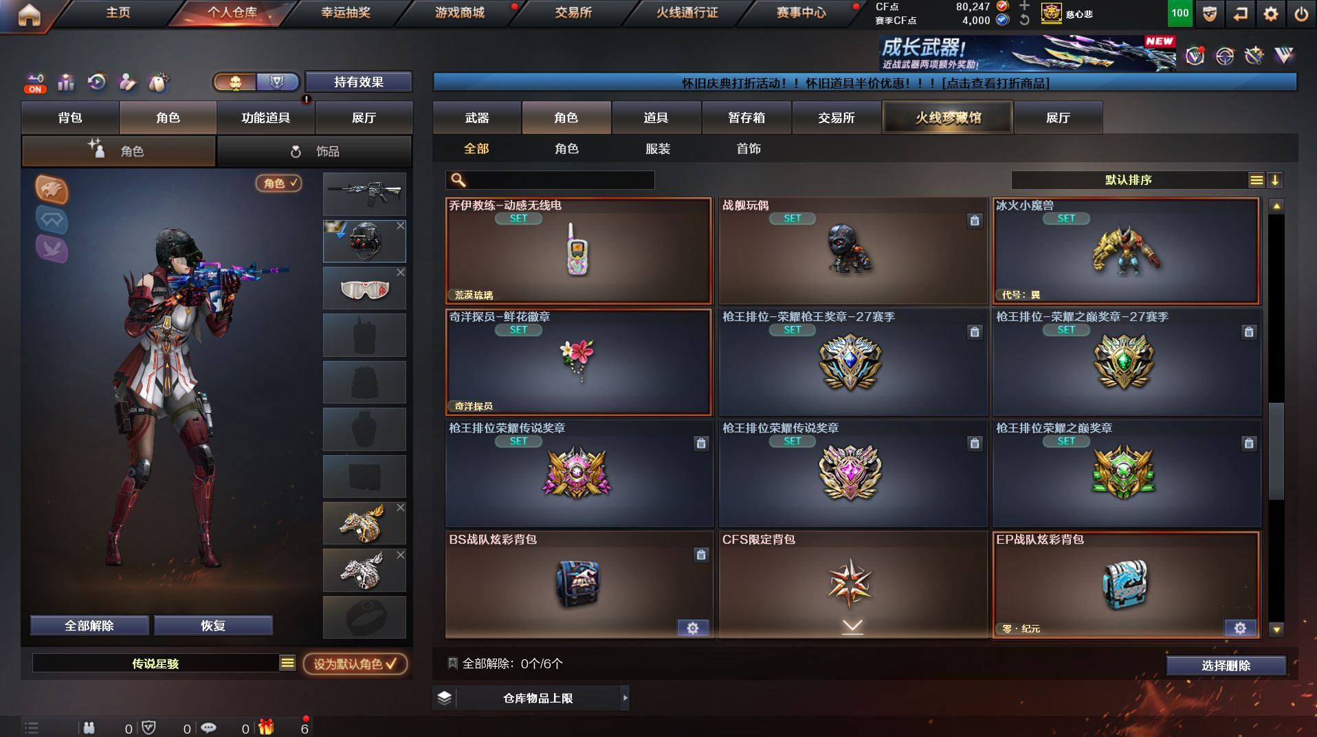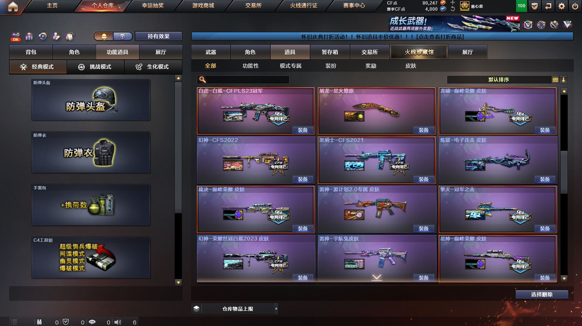 r499355 西部 666v【传说武器】:传说幽瞳,传说破晓【传说角色】:传说星骇,传说影煞【热门武器】:传说幽瞳,传说圣谕,传说破晓,G36C-幻影,QBZ03-金色蔷薇,Scar Light-白虎,HK417-朱雀,M200-幻神,柯尔特-荣耀世冠白鲨2023,M200-竞技荣光,死亡之眼*2,青龙之魄,荣耀世冠-雷神,Kar98K-星神,金色小号,C.A.T,炼狱-迷你小钢,毒蜂,M4A1-黑骑士*3,汤姆逊-烈龙*6,RPK-盘龙*6,加特林-炼狱,斯泰尔-蝴蝶,MK5-炽火炎龙,羊驼玩偶,COP-白鲨,USP-雷暴,COP-堕天神,沙鹰-修罗*4,Knife-冠军之刃,炽芒蝶刃*3,炽芒蝶刃-荣耀世冠白鲨2023 皮肤,金刚伞【王者炫金武器】:青龙之魄,王者星霆,炫金千变,炫金天龙【音效卡】:M200-幻神音效卡,M4A1-雷神音效卡,M4A1-黑骑士音效卡,Barrett-毁灭音效卡,QBZ03-金色蔷薇音效卡,AWM-裁决音效卡,Scar Light-白虎音效卡,70KG语音包,Kar98K-星神音效卡,QBZ03-天罚音效卡【皮肤】:M200-幻神-黄忠皮肤,幻神-宠儿-2021MVP,幻神-CFS2022,幻神-星耀 皮肤,幻神-电流骇客 皮肤,幻神-星火小队签名臻藏版 皮肤,幻神-荣耀世冠白鲨2023 皮肤,幻神-AG-CFPL S24冠军 皮肤,Scar Light-白虎-暗星,白虎-AG-CFPLS20冠军,白虎-白鲨-CFPLS23冠军,QBZ03-巅峰荣耀皮肤,金色蔷薇-量子蔷薇 皮肤,金色蔷薇-破浪逐光 皮肤,裁决-巅峰荣耀 皮肤,星神-巅峰荣耀 皮肤,星神-傲竹金蛇 皮肤,烈龙-星空,雷神-虎将,M4A1-战神赵云,雷神-宇航兔皮肤,雷神-维纳斯皮肤,雷神-源计划2.0专属 皮肤,雷神-神秘按键 皮肤,火麒麟-雷神,火麒麟-冠军之心,火麒麟-华夏之心,火麒麟-平天大圣,火麒麟-心动糖果,毁灭耀金皮肤,毁灭-星空,毁灭-SV-CFPLS16冠军,毁灭-战神张飞,黑龙-冠军之武,黑骑士-战神马超,黑骑士-CFS2021,屠龙-星耀 皮肤,龙啸-纸灯龙皮肤,龙啸-巅峰荣耀 皮肤,擎天-冠军之击,擎天-傲竹金蛇 皮肤,麒麟刺-荣耀世冠白鲨,麒麟刺-月皮肤,炽芒蝶刃-荣耀世冠白鲨2023 皮肤【角色】:炫,荒漠琉璃,晴雅,隼,华,战地猎狐,王者-魅影,堕落女神,奇洋探员,乔伊教练,暗夜-X,初恋灵狐,飞虎队-X,嘉年华灵狐【人偶武器】:COP-白鲨,天龙-曼陀罗,火麒麟-灵狐,炼狱-迷你小钢,迷你宝贝,迷你钢铁终结者【挑战大师】:神圣爆裂者III,冰龙粉碎者-白马银枪,激光毁灭者III-白马银枪,VEPR-12-金魔,机甲撕裂者III,试炼破坏者III,神圣爆裂者-末日III【英雄级武器】:AK47-火麒麟,M4A1-黑龙,M4A1-雷神*2,M4A1-黑骑士*3,AK47-无影,M4A1-死神,AK47-黑武士,AK12-天启,AN94-超新星,M4A1-雷霆,AK47-雷暴,HK417-朱雀,Scar Light-白虎,QBZ03-天罚*2,无影-神兵利器,G36C-幻影,QBZ03-云龙,黑武士-锦绣游龙,超新星-热带奇洋,FAMAS G2-天戎,SCAR Light-玄豹,九霄圣角,QBZ03-金色蔷薇,烈火-动感闪耀,王者之心-觉醒版*2,王者之势-觉醒版,黑骑士-海王,王者猎神-觉醒版,王者玄武-觉醒版,荣耀世冠-雷神,Barrett-毁灭,Barrett-极光,AWM-裁决,M200-幻神,Kar98K-星神,M200-竞技荣光,VSK-94-金蚀,Barrett-金色蔷薇,王者蔷薇-觉醒版,RPK-盘龙*6,加特林-炼狱,悦蓝-惊涛骇浪-觉醒版,汤姆逊-烈龙*6,AA-12-雷霆,沙鹰-修罗*4,沙鹰-天神,USP-雷暴,COP-雷霆,COP-堕天神,柯尔特-荣耀世冠白鲨2023,柯尔特-无冕之王*2,柯尔特-竞技荣光,COP 357-云龙*4,Anaconda-玄豹,USP-神工天巧,USP-冥王,炽芒蝶刃*3,【道具】:BS战队炫彩背包,CFS限定背包,EP战队炫彩背包,全能枪王背包,奇洋探员-海龟背包,战舰背包,炫彩背包,热带奇洋炫彩背包,背包-洛丽塔,超级背包,黄金曼提柯尔的背包,超核名片,防弹头盔*3,防弹衣*3,C4工具钳*4,手雷包*3【特殊枪械】:蝴蝶斯泰尔+6烈龙,1白虎,3黑骑士,6烈龙,6盘龙,1炼狱,1蝴蝶斯泰尔各种道具详情看截图、低价出售找回包 赔、截图展示段位不代 表实际段位,如赛季更新等不可抗拒因素发生变化、时限道具不保证所剩时间、标题未写送点劵默认不送【卖号买号首选亿梦】