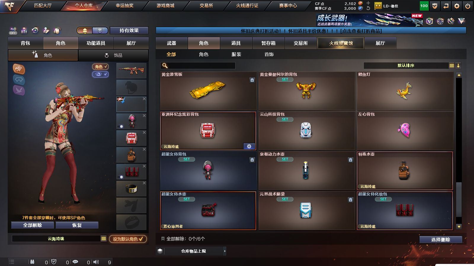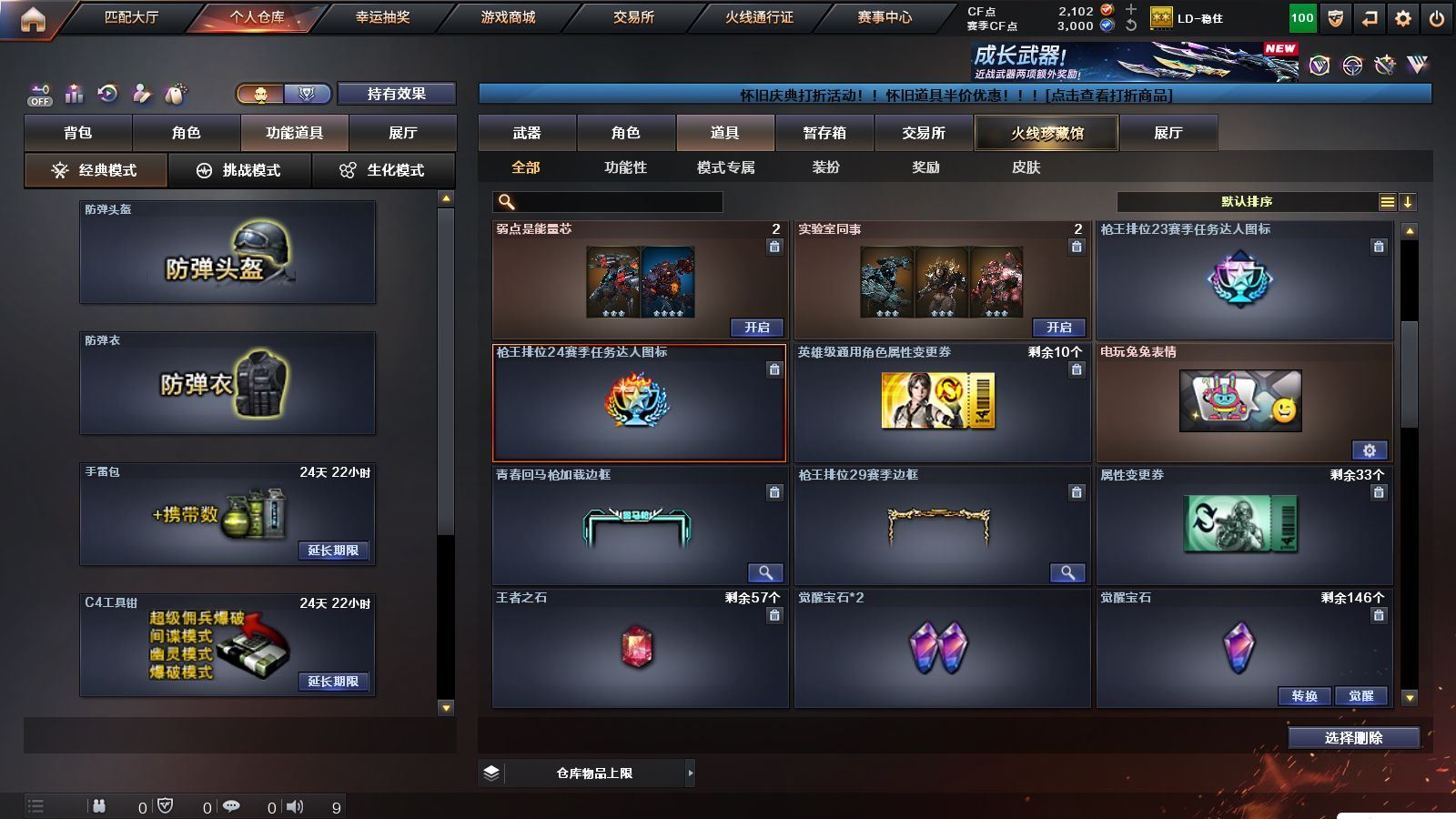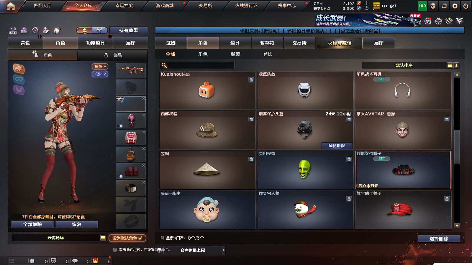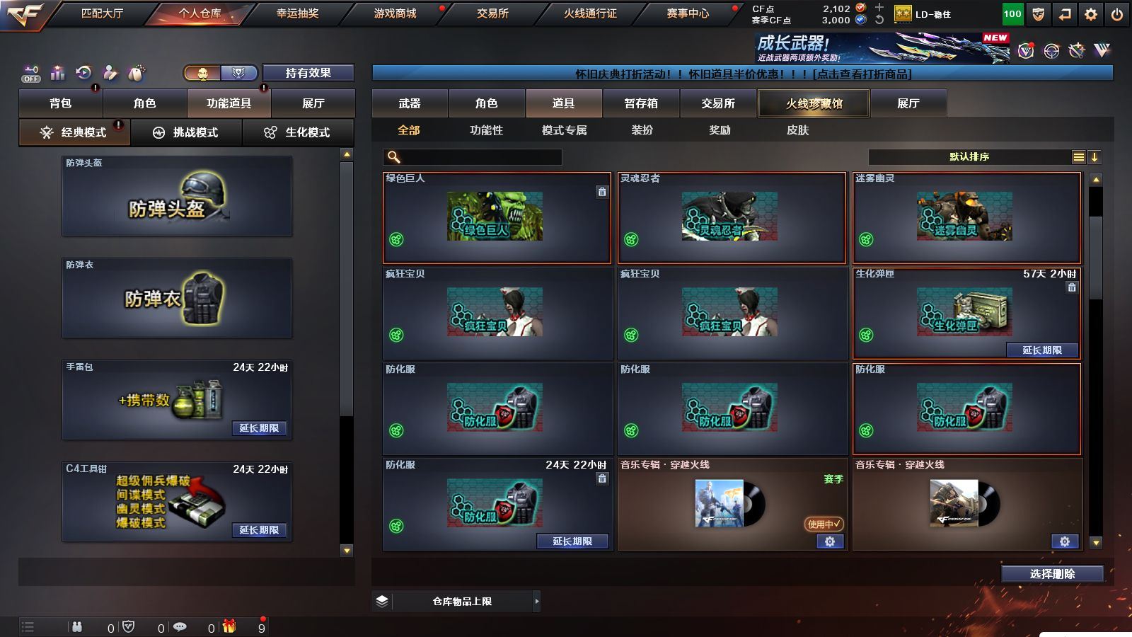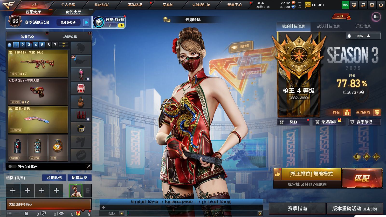 r51566 可二次可排位黑龙江区-11V【热门武器】:M200-幻神,白虎-电玩蓝兔【皮肤】:M200-幻神-黄忠皮肤,火麒麟-心动糖果,战神-紫绶金章皮肤,AK47-B-常胜将军-孙权*2【角色】:乔伊教练,修道士,云海玲珑,北极狐-X,芳心审判者,潘多拉-X,潘多拉-甜心教官,青霞仙子,斯沃特-X,兔囡囡,雪莉杨-摸金校尉【人偶武器】:M4A1-雷神-精英刀锋,迷你超能女侍【挑战大师】:冰龙粉碎者-白马银枪【英雄级武器】:AK47-火麒麟,M4A1-雷神,无影-神兵利器,AK-47-猩红传说,AK47-B-战神,白虎-电玩蓝兔,M200-幻神,M4A1-赤狱骑士【道具】:BS战队炫彩背包,CFS限定背包,云山科技背包,亚洲杯纪念炫彩背包,虎牙炫彩背包,黄金曼提柯尔的背包,绿色巨人,灵魂忍者,迷雾幽灵,夺命之镰,防化服*3,枪王排位29赛季金色流光,电玩兔兔表情,防弹头盔*9,防弹衣*9,C4工具钳*9,手雷包*9,各种道具详情看截图、低价出售找回包 赔、截图展示段位不代 表实际段位,如赛季更新等不可抗拒因素发生变化、时限道具不保证所剩时间、标题未写送点劵默认不送【卖号买号首选亿梦】