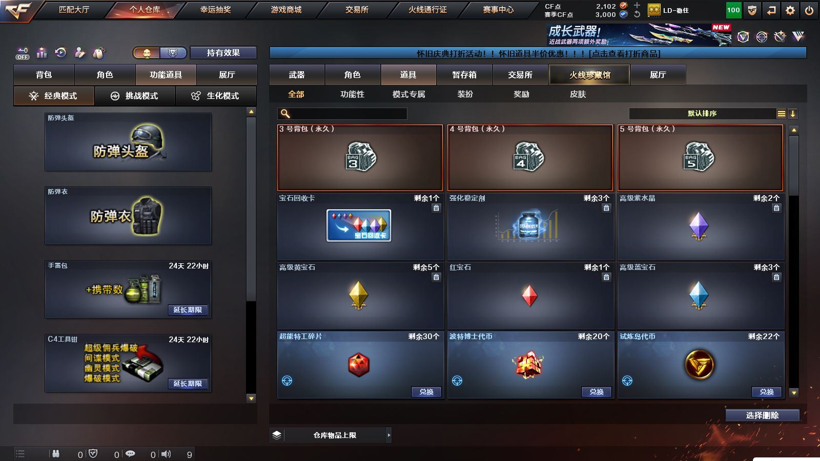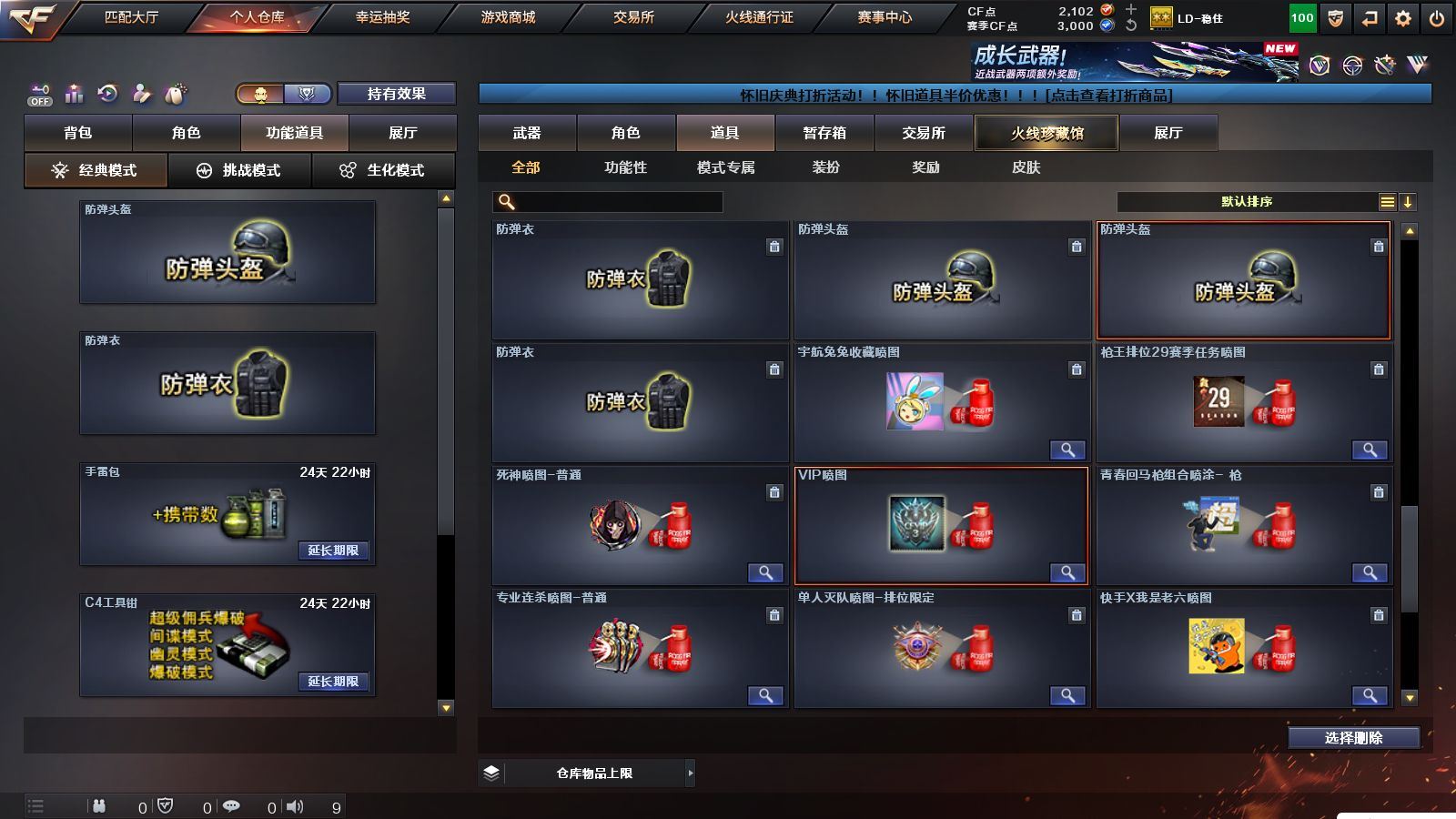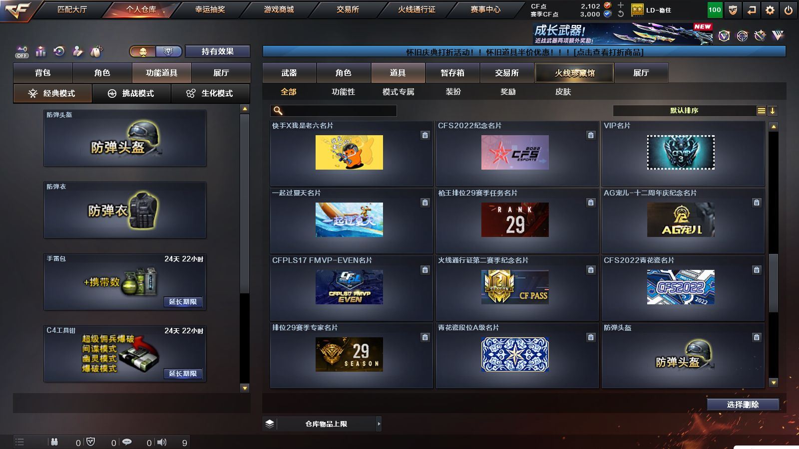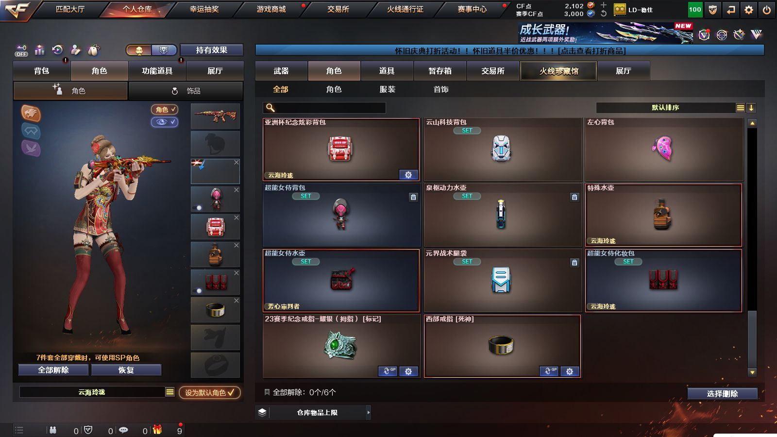 r51566 可二次可排位黑龙江区-11V【热门武器】:M200-幻神,白虎-电玩蓝兔【皮肤】:M200-幻神-黄忠皮肤,火麒麟-心动糖果,战神-紫绶金章皮肤,AK47-B-常胜将军-孙权*2【角色】:乔伊教练,修道士,云海玲珑,北极狐-X,芳心审判者,潘多拉-X,潘多拉-甜心教官,青霞仙子,斯沃特-X,兔囡囡,雪莉杨-摸金校尉【人偶武器】:M4A1-雷神-精英刀锋,迷你超能女侍【挑战大师】:冰龙粉碎者-白马银枪【英雄级武器】:AK47-火麒麟,M4A1-雷神,无影-神兵利器,AK-47-猩红传说,AK47-B-战神,白虎-电玩蓝兔,M200-幻神,M4A1-赤狱骑士【道具】:BS战队炫彩背包,CFS限定背包,云山科技背包,亚洲杯纪念炫彩背包,虎牙炫彩背包,黄金曼提柯尔的背包,绿色巨人,灵魂忍者,迷雾幽灵,夺命之镰,防化服*3,枪王排位29赛季金色流光,电玩兔兔表情,防弹头盔*9,防弹衣*9,C4工具钳*9,手雷包*9,各种道具详情看截图、低价出售找回包 赔、截图展示段位不代 表实际段位,如赛季更新等不可抗拒因素发生变化、时限道具不保证所剩时间、标题未写送点劵默认不送【卖号买号首选亿梦】