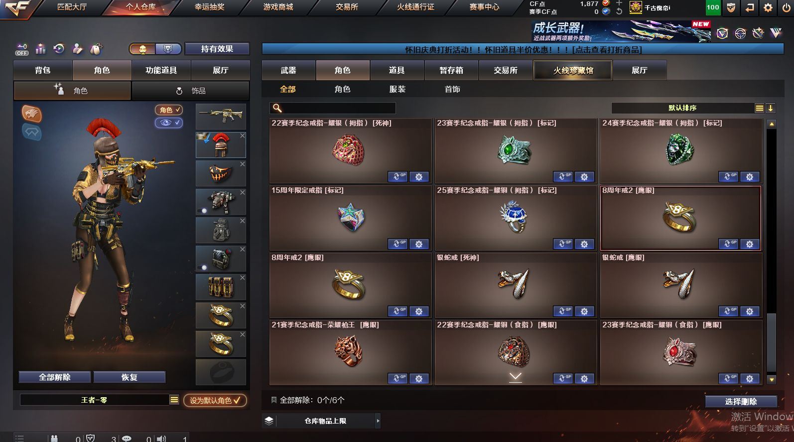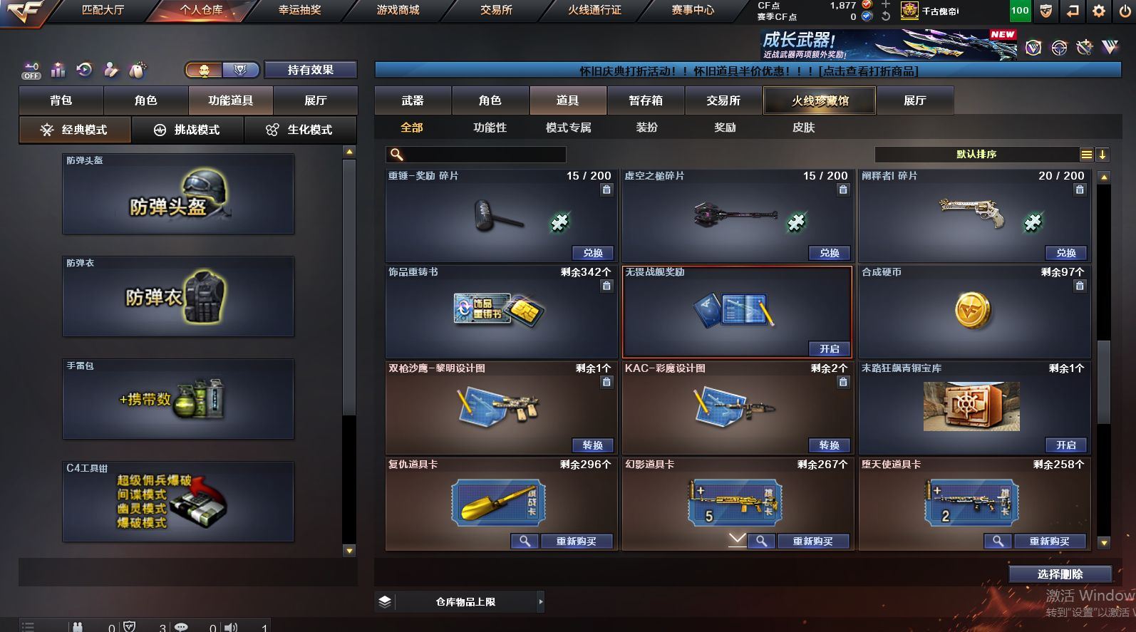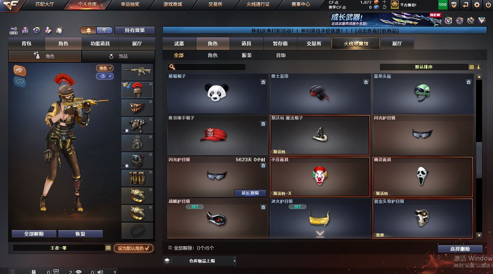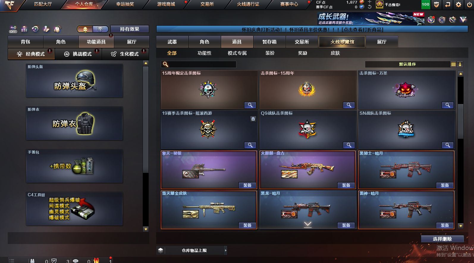 可二次可排位 北京一区-108V-12王者武器数-4炫金武器数【热门武器】:QBZ03-金色蔷薇,M200-竞技荣光,死亡之眼*2,金色小号,M4A1-黑骑士*6,汤姆逊-烈龙*6,加特林-炼狱*2,USP-雷暴,沙鹰-修罗*5,高爆手雷-幻兽*5【王者炫金武器】:王者之幻,王者之翼,王者之势,王者之武,玫瑰精灵-悦动,王者之影,王者之光,炼狱-悦蓝,炫金骑士,炫金无影,炫金雷神,炫金天神【音效卡】:AK47-火麒麟音效卡,M4A1-雷神音效卡,Barrett-毁灭音效卡【皮肤】:雷神-暗月,雷神-能量核心,火麒麟-平天大圣,火麒麟-盘古,火麒麟-心动糖果,毁灭-暗月*4,毁灭-荣耀之怒,毁灭耀金皮肤,毁灭-星空,毁灭-黑大圣皮肤,黑龙-暗月,黑骑士-暗月,黑骑士耀金皮肤,无影-暗月*3,死神-秘银,天启-暗月,战神-粉色甜心皮肤,天龙-秘银*2,天龙-能量核心,极光-能量核心,修罗-能量核心*4,修罗-星空,天神-暗月,屠龙-荣耀之锋*2,擎天-秘银【角色】:零,葵,樱,蝴蝶,电竞教官-云悠悠,王者-零,王者之瞳,王者复仇,王者王力宏,虎妞,嘉年华灵狐,娟娟,零-水下丽影,灵狐者-X,灵狐者-黄金海岸,龙儿-小淘气,曼陀罗-X,潘多拉-X,潘多拉-甜心教官,潜龙队-X,斯沃特-X,蜀雪,铁骑荣耀,雪莉杨,影武者-X,游珑儿【人偶武器】:天龙-曼陀罗,火麒麟-灵狐,AWM-灵狐-15周年嘉年华,M37-葵,COP-旗袍,M4A1-刀锋,迷你深渊冰龙,迷你波特博士,夺魂*2,迷你牛牛,深渊终结者手雷,迷你艾比,灵狐娃娃手雷*2【暴走生化】:死亡之眼*2【挑战大师】:AK47-冰龙粉碎者,冰龙粉碎者-白马银枪,激光毁灭者III,试炼破坏者III,KAC-圣炎切割者III,神圣爆裂者-末日III【英雄级武器】:M4A1-千变,AK47-火麒麟*3,M4A1-雷神*4,M4A1-黑骑士*6,AK47-无影,M4A1-死神,AK12-天启*3,AN94-超新星,M4A1-武圣,AK47-机械迷城*4,无影-神兵利器,黑武士-锦绣游龙,M4A1-玫瑰精灵*2,QBZ95-幻兽,QBZ03-金色蔷薇,王者之心-觉醒版,王者之魄-觉醒版,王者之势-觉醒版,AK-47-猩红传说,黑骑士-海王*2,AWM-天龙*4,Barrett-毁灭*2,Barrett-极光,M200-竞技荣光,王者之怒-觉醒版,加特林-炼狱*2,汤姆逊-烈龙*6,沙鹰-修罗*5,沙鹰-天神*2,USP-雷暴,柯尔特-竞技荣光,破空枪刃,沙鹰-幻兽*5,屠龙*4,龙啸,擎天*2,麒麟刺,擎天-竞技荣光,女皇利刃-幻兽,王者之锋-觉醒版*2,高爆手雷-雷霆,高爆手雷-幻兽*5,高爆手雷-幻灵,高爆手雷-竞技荣光,闪光弹-雷霆,闪光弹-幻兽*5,闪光弹-幻灵,闪光弹-竞技荣光,烟雾弹-雷霆,烟雾弹-幻兽*5,烟雾弹-竞技荣光【道具】:亚洲杯纪念炫彩背包,全能枪王背包,战舰背包,炫彩背包,老虎背包,背包-洛丽塔,虎牙炫彩背包,超级背包*2,绿色巨人,灵魂忍者,变异宝贝,迷雾幽灵,生化弹匣,夺命之镰*2,防化服*3,金色流光-枪王排位*2,星辰流光-枪王排位,C4-红龙,防弹头盔*6,防弹衣*8,C4工具钳*6,手雷包*6【特殊枪械】:6黑骑士,6烈龙,2炼狱【稀有套装】:竞技荣光套各种道具详情看截图、低价出售找回包 赔、截图展示段位不代 表实际段位,如赛季更新等不可抗拒因素发生变化、时限道具不保证所剩时间、标题未写送点劵默认不送【卖号买号首选亿梦】
