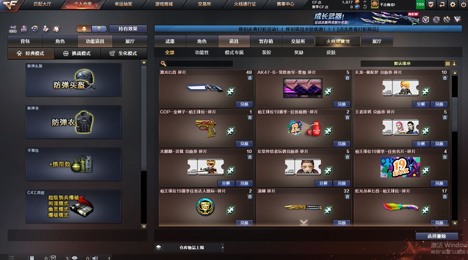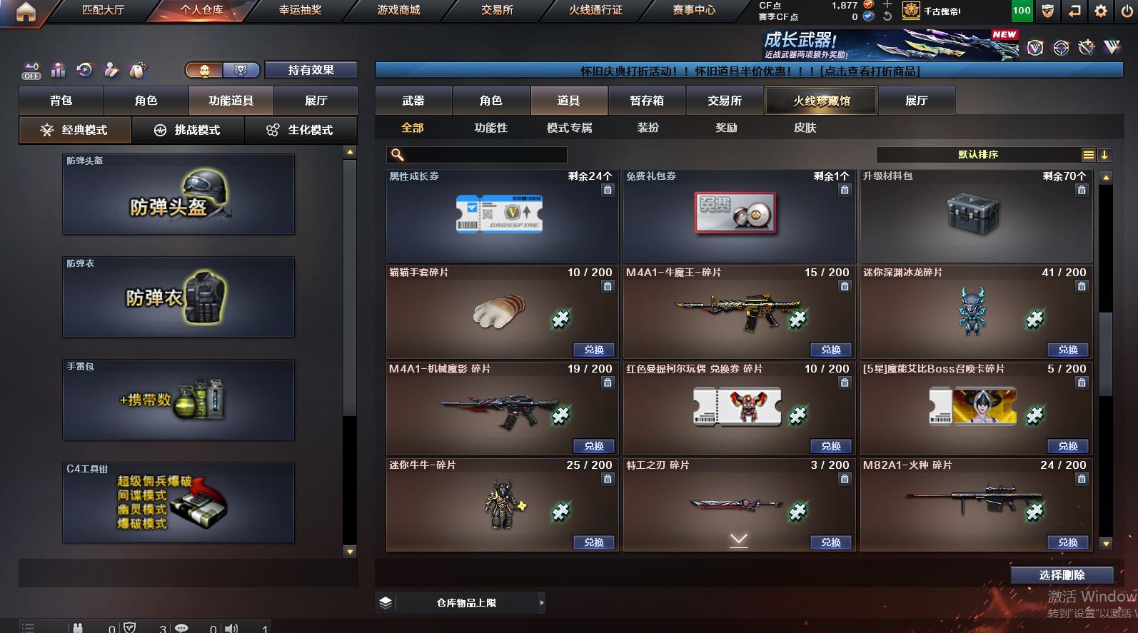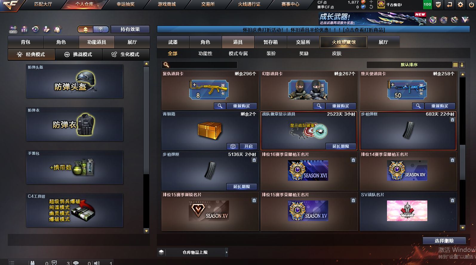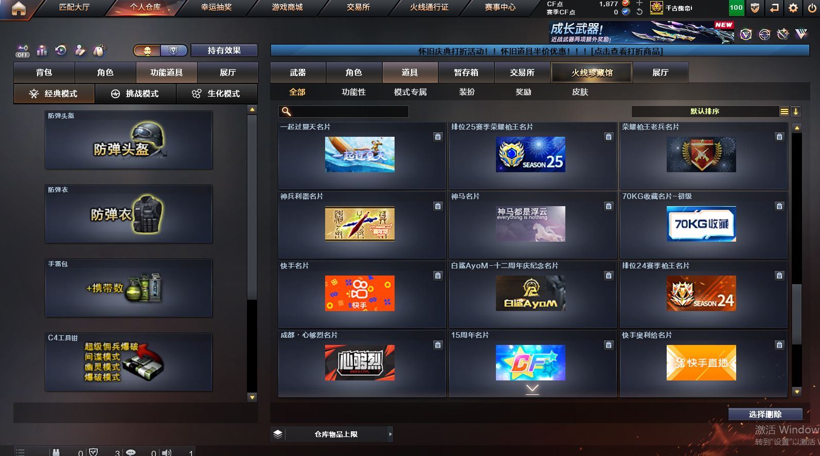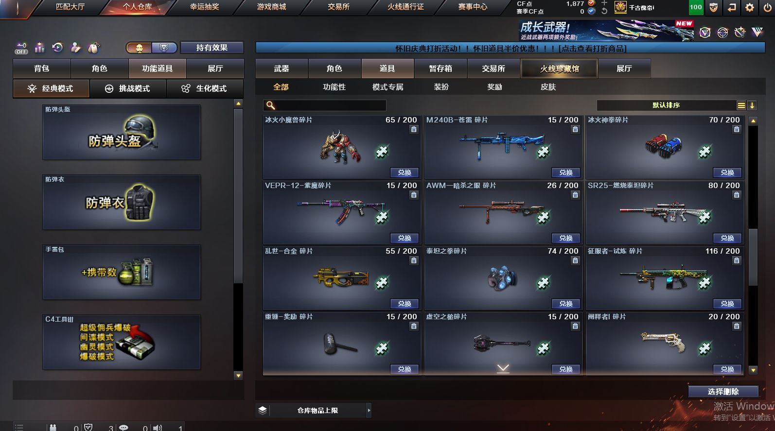 可二次可排位 北京一区-108V-12王者武器数-4炫金武器数【热门武器】:QBZ03-金色蔷薇,M200-竞技荣光,死亡之眼*2,金色小号,M4A1-黑骑士*6,汤姆逊-烈龙*6,加特林-炼狱*2,USP-雷暴,沙鹰-修罗*5,高爆手雷-幻兽*5【王者炫金武器】:王者之幻,王者之翼,王者之势,王者之武,玫瑰精灵-悦动,王者之影,王者之光,炼狱-悦蓝,炫金骑士,炫金无影,炫金雷神,炫金天神【音效卡】:AK47-火麒麟音效卡,M4A1-雷神音效卡,Barrett-毁灭音效卡【皮肤】:雷神-暗月,雷神-能量核心,火麒麟-平天大圣,火麒麟-盘古,火麒麟-心动糖果,毁灭-暗月*4,毁灭-荣耀之怒,毁灭耀金皮肤,毁灭-星空,毁灭-黑大圣皮肤,黑龙-暗月,黑骑士-暗月,黑骑士耀金皮肤,无影-暗月*3,死神-秘银,天启-暗月,战神-粉色甜心皮肤,天龙-秘银*2,天龙-能量核心,极光-能量核心,修罗-能量核心*4,修罗-星空,天神-暗月,屠龙-荣耀之锋*2,擎天-秘银【角色】:零,葵,樱,蝴蝶,电竞教官-云悠悠,王者-零,王者之瞳,王者复仇,王者王力宏,虎妞,嘉年华灵狐,娟娟,零-水下丽影,灵狐者-X,灵狐者-黄金海岸,龙儿-小淘气,曼陀罗-X,潘多拉-X,潘多拉-甜心教官,潜龙队-X,斯沃特-X,蜀雪,铁骑荣耀,雪莉杨,影武者-X,游珑儿【人偶武器】:天龙-曼陀罗,火麒麟-灵狐,AWM-灵狐-15周年嘉年华,M37-葵,COP-旗袍,M4A1-刀锋,迷你深渊冰龙,迷你波特博士,夺魂*2,迷你牛牛,深渊终结者手雷,迷你艾比,灵狐娃娃手雷*2【暴走生化】:死亡之眼*2【挑战大师】:AK47-冰龙粉碎者,冰龙粉碎者-白马银枪,激光毁灭者III,试炼破坏者III,KAC-圣炎切割者III,神圣爆裂者-末日III【英雄级武器】:M4A1-千变,AK47-火麒麟*3,M4A1-雷神*4,M4A1-黑骑士*6,AK47-无影,M4A1-死神,AK12-天启*3,AN94-超新星,M4A1-武圣,AK47-机械迷城*4,无影-神兵利器,黑武士-锦绣游龙,M4A1-玫瑰精灵*2,QBZ95-幻兽,QBZ03-金色蔷薇,王者之心-觉醒版,王者之魄-觉醒版,王者之势-觉醒版,AK-47-猩红传说,黑骑士-海王*2,AWM-天龙*4,Barrett-毁灭*2,Barrett-极光,M200-竞技荣光,王者之怒-觉醒版,加特林-炼狱*2,汤姆逊-烈龙*6,沙鹰-修罗*5,沙鹰-天神*2,USP-雷暴,柯尔特-竞技荣光,破空枪刃,沙鹰-幻兽*5,屠龙*4,龙啸,擎天*2,麒麟刺,擎天-竞技荣光,女皇利刃-幻兽,王者之锋-觉醒版*2,高爆手雷-雷霆,高爆手雷-幻兽*5,高爆手雷-幻灵,高爆手雷-竞技荣光,闪光弹-雷霆,闪光弹-幻兽*5,闪光弹-幻灵,闪光弹-竞技荣光,烟雾弹-雷霆,烟雾弹-幻兽*5,烟雾弹-竞技荣光【道具】:亚洲杯纪念炫彩背包,全能枪王背包,战舰背包,炫彩背包,老虎背包,背包-洛丽塔,虎牙炫彩背包,超级背包*2,绿色巨人,灵魂忍者,变异宝贝,迷雾幽灵,生化弹匣,夺命之镰*2,防化服*3,金色流光-枪王排位*2,星辰流光-枪王排位,C4-红龙,防弹头盔*6,防弹衣*8,C4工具钳*6,手雷包*6【特殊枪械】:6黑骑士,6烈龙,2炼狱【稀有套装】:竞技荣光套各种道具详情看截图、低价出售找回包 赔、截图展示段位不代 表实际段位,如赛季更新等不可抗拒因素发生变化、时限道具不保证所剩时间、标题未写送点劵默认不送【卖号买号首选亿梦】