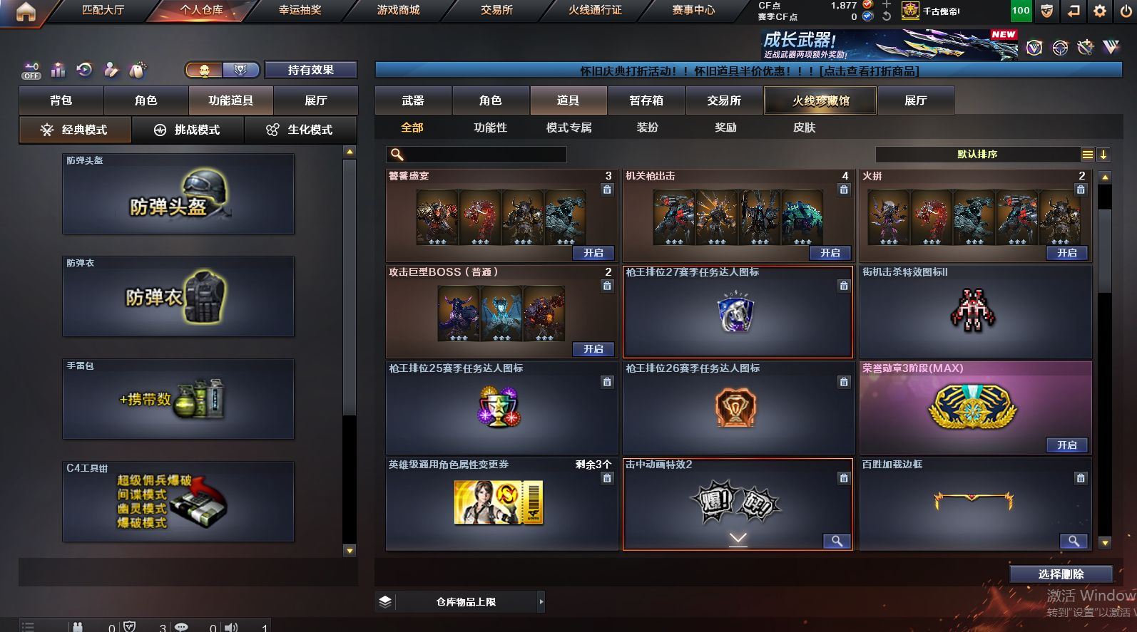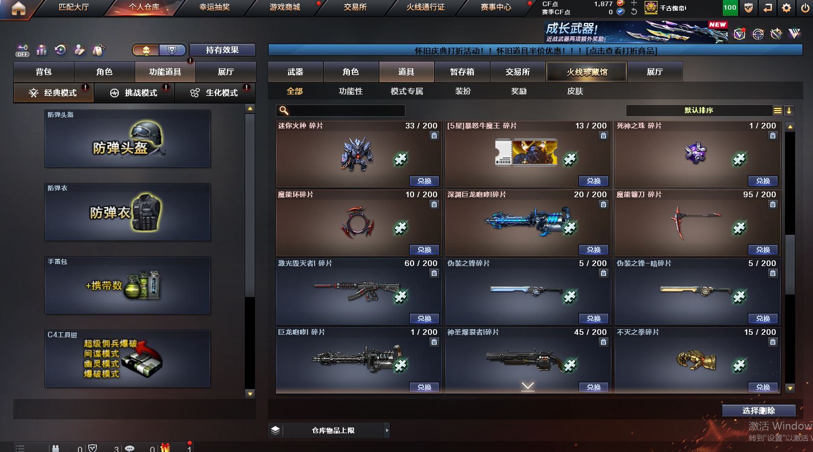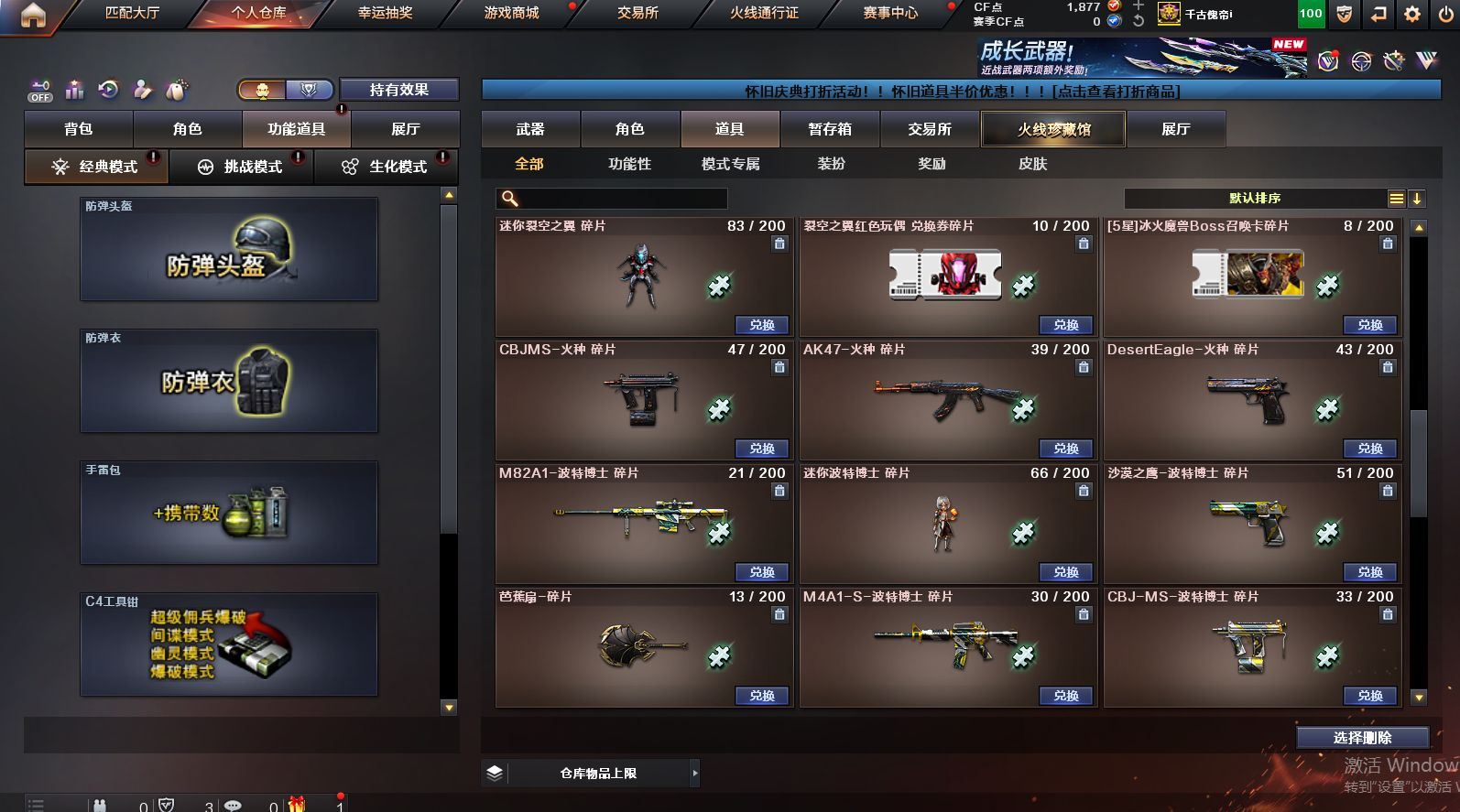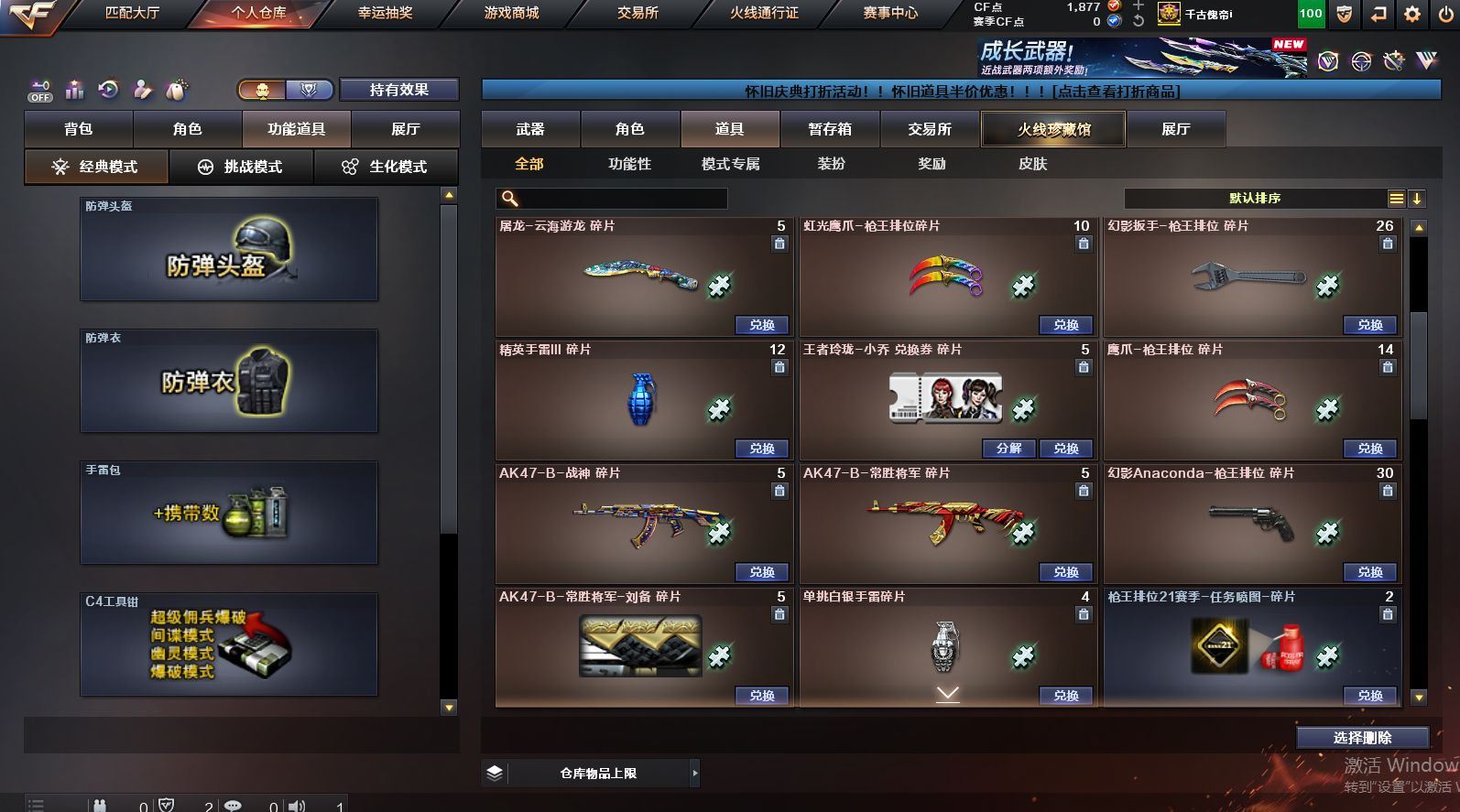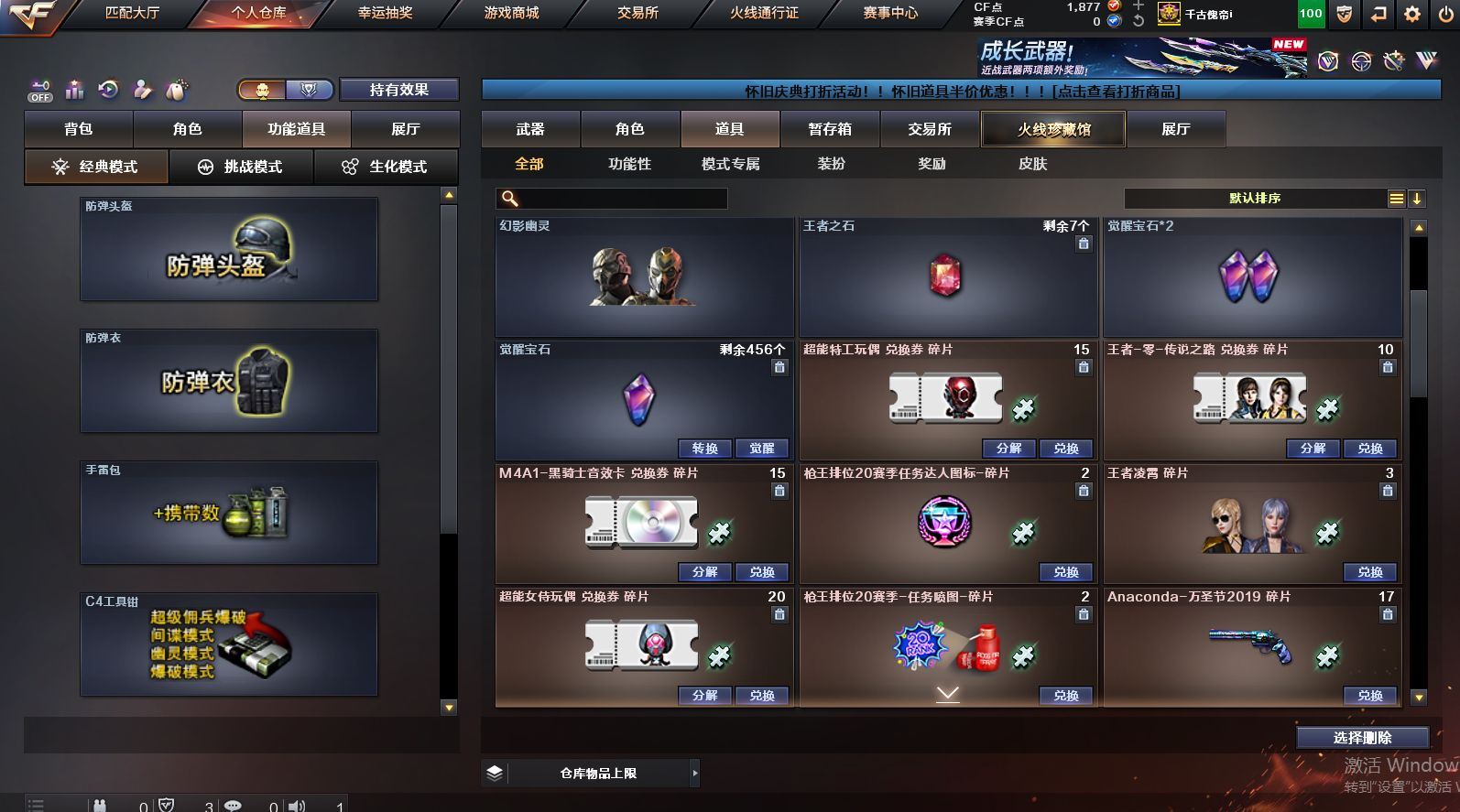 可二次可排位 北京一区-108V-12王者武器数-4炫金武器数【热门武器】:QBZ03-金色蔷薇,M200-竞技荣光,死亡之眼*2,金色小号,M4A1-黑骑士*6,汤姆逊-烈龙*6,加特林-炼狱*2,USP-雷暴,沙鹰-修罗*5,高爆手雷-幻兽*5【王者炫金武器】:王者之幻,王者之翼,王者之势,王者之武,玫瑰精灵-悦动,王者之影,王者之光,炼狱-悦蓝,炫金骑士,炫金无影,炫金雷神,炫金天神【音效卡】:AK47-火麒麟音效卡,M4A1-雷神音效卡,Barrett-毁灭音效卡【皮肤】:雷神-暗月,雷神-能量核心,火麒麟-平天大圣,火麒麟-盘古,火麒麟-心动糖果,毁灭-暗月*4,毁灭-荣耀之怒,毁灭耀金皮肤,毁灭-星空,毁灭-黑大圣皮肤,黑龙-暗月,黑骑士-暗月,黑骑士耀金皮肤,无影-暗月*3,死神-秘银,天启-暗月,战神-粉色甜心皮肤,天龙-秘银*2,天龙-能量核心,极光-能量核心,修罗-能量核心*4,修罗-星空,天神-暗月,屠龙-荣耀之锋*2,擎天-秘银【角色】:零,葵,樱,蝴蝶,电竞教官-云悠悠,王者-零,王者之瞳,王者复仇,王者王力宏,虎妞,嘉年华灵狐,娟娟,零-水下丽影,灵狐者-X,灵狐者-黄金海岸,龙儿-小淘气,曼陀罗-X,潘多拉-X,潘多拉-甜心教官,潜龙队-X,斯沃特-X,蜀雪,铁骑荣耀,雪莉杨,影武者-X,游珑儿【人偶武器】:天龙-曼陀罗,火麒麟-灵狐,AWM-灵狐-15周年嘉年华,M37-葵,COP-旗袍,M4A1-刀锋,迷你深渊冰龙,迷你波特博士,夺魂*2,迷你牛牛,深渊终结者手雷,迷你艾比,灵狐娃娃手雷*2【暴走生化】:死亡之眼*2【挑战大师】:AK47-冰龙粉碎者,冰龙粉碎者-白马银枪,激光毁灭者III,试炼破坏者III,KAC-圣炎切割者III,神圣爆裂者-末日III【英雄级武器】:M4A1-千变,AK47-火麒麟*3,M4A1-雷神*4,M4A1-黑骑士*6,AK47-无影,M4A1-死神,AK12-天启*3,AN94-超新星,M4A1-武圣,AK47-机械迷城*4,无影-神兵利器,黑武士-锦绣游龙,M4A1-玫瑰精灵*2,QBZ95-幻兽,QBZ03-金色蔷薇,王者之心-觉醒版,王者之魄-觉醒版,王者之势-觉醒版,AK-47-猩红传说,黑骑士-海王*2,AWM-天龙*4,Barrett-毁灭*2,Barrett-极光,M200-竞技荣光,王者之怒-觉醒版,加特林-炼狱*2,汤姆逊-烈龙*6,沙鹰-修罗*5,沙鹰-天神*2,USP-雷暴,柯尔特-竞技荣光,破空枪刃,沙鹰-幻兽*5,屠龙*4,龙啸,擎天*2,麒麟刺,擎天-竞技荣光,女皇利刃-幻兽,王者之锋-觉醒版*2,高爆手雷-雷霆,高爆手雷-幻兽*5,高爆手雷-幻灵,高爆手雷-竞技荣光,闪光弹-雷霆,闪光弹-幻兽*5,闪光弹-幻灵,闪光弹-竞技荣光,烟雾弹-雷霆,烟雾弹-幻兽*5,烟雾弹-竞技荣光【道具】:亚洲杯纪念炫彩背包,全能枪王背包,战舰背包,炫彩背包,老虎背包,背包-洛丽塔,虎牙炫彩背包,超级背包*2,绿色巨人,灵魂忍者,变异宝贝,迷雾幽灵,生化弹匣,夺命之镰*2,防化服*3,金色流光-枪王排位*2,星辰流光-枪王排位,C4-红龙,防弹头盔*6,防弹衣*8,C4工具钳*6,手雷包*6【特殊枪械】:6黑骑士,6烈龙,2炼狱【稀有套装】:竞技荣光套各种道具详情看截图、低价出售找回包 赔、截图展示段位不代 表实际段位,如赛季更新等不可抗拒因素发生变化、时限道具不保证所剩时间、标题未写送点劵默认不送【卖号买号首选亿梦】