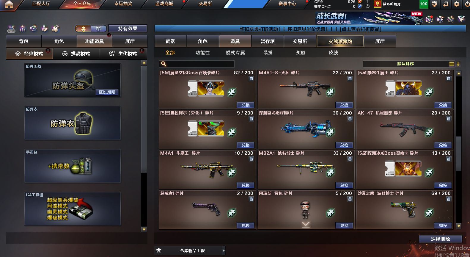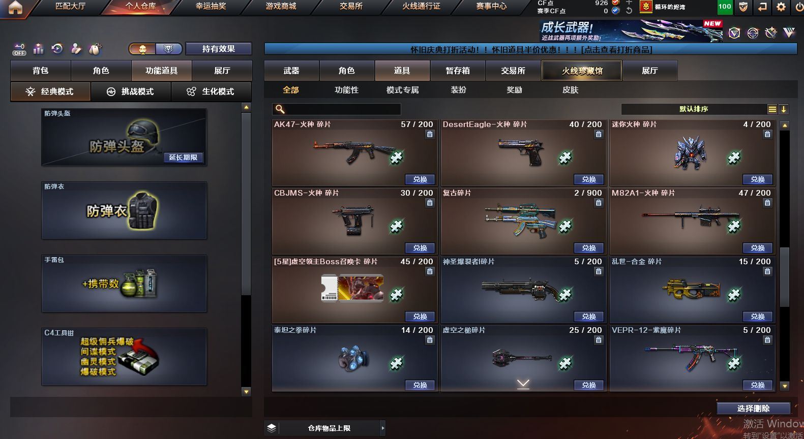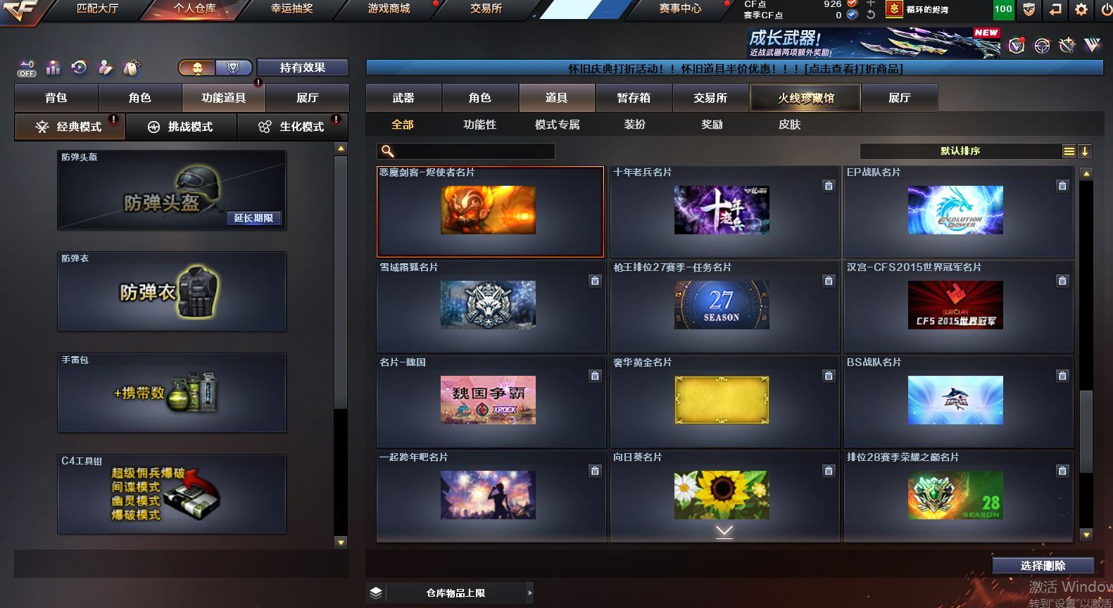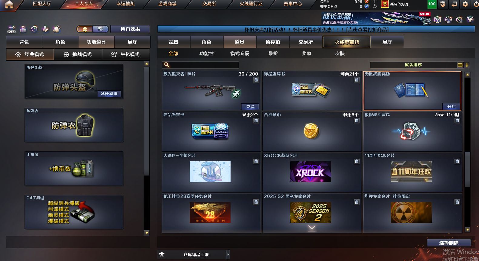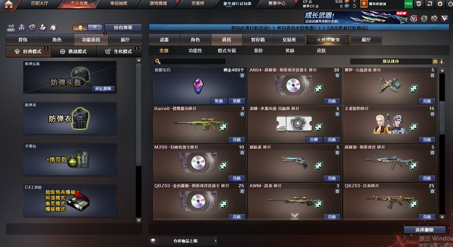 可二次可排位 重庆一区-91V-10王者武器数-1炫金武器数【热门武器】:QBZ03-金色蔷薇,M4A1-青龙,M200-竞技荣光,死亡之眼,M4A1-黑骑士*2,汤姆逊-烈龙*6,RPK-盘龙*4,加特林-炼狱,裁决-雪莉杨,USP-雷暴,COP-堕天神,沙鹰-修罗【王者炫金武器】:王者之圣,王者蔷薇,炫金毁灭【音效卡】:M4A1-黑骑士音效卡,Barrett-毁灭音效卡,死神-雪域霜狐-怀旧音效卡【皮肤】:白虎-热带奇洋 皮肤,金色蔷薇-热带奇洋 皮肤,AWM-裁决-凤灵皮肤,雷神-暗月,雷神-宇航兔皮肤,雷神-海滩派对 皮肤,M4A1-再燃火线,火麒麟-雷神,火麒麟-平天大圣,毁灭-荣耀之怒,毁灭-黑大圣皮肤,毁灭-虹光风暴 皮肤,毁灭-秦师 皮肤,M4A1-黑龙-361,黑骑士-暗月,黑骑士-破界 皮肤,战神-流金岁月皮肤,AK47-B-常胜将军-曹操,AK47-B-常胜将军-刘备*2,屠龙-春桃 皮肤,轻型军用手斧-再燃火线【角色】:迷迭香,4防凌霄,4防电竞教官-云悠悠,王者樱-热浪之夏,4防王者-葵-貂蝉,4防王者春,王者玲珑,4防王者-魅影,4防王者玲珑-小乔,雪域霜狐,奇洋探员,云海玲珑,葵-阿尔法武装,暗夜-X,北极狐-X,电竞少女,芳心审判者,飞虎队-X,风暴女*2,娟娟,兰-海滩派对,兰妹妹,0号玩家,灵狐者-X,灵狐者-黄金海岸,龙儿,龙儿-小淘气,麻雀,曼陀罗-X,萌儿,潘多拉-X,潘多拉-甜心教官,潜龙队-X,邱刚敖,青霞仙子,斯沃特-X,兔囡囡,新娜塔莎,雪莉杨,影武者-X,游珑儿,职业选手【人偶武器】:裁决-雪莉杨,斯泰尔-枪娘暗刃,AWM-灵狐-15周年嘉年华,M37-葵,迷你深渊冰龙*2,迷你波特博士,夺魂,迷你牛牛,迷你火种,生化手雷-机甲核心*3,闪光弹-貂蝉,高爆手雷-大乔,巴雷特-赏金猎人,迷你艾比,灵狐娃娃手雷*2【暴走生化】:死亡之眼,超级对讲机【挑战大师】:神圣爆裂者III*2,冰龙粉碎者-白马银枪,激光毁灭者III-白马银枪,VEPR-12-金魔,激光毁灭者III,机甲撕裂者III【英雄级武器】:AK47-火麒麟,M4A1-黑龙,M4A1-雷神*2,M4A1-黑骑士*2,AK12-天启,M4A1-青龙,M4A1-夜魔,黑武士-锦绣游龙,超新星-热带奇洋,QBZ03-金色蔷薇,9A91-烈火,王者之城-觉醒版,黑骑士-海王*2,AK47-B-常胜将军,黑武士-CF网剧冠军,机械迷城-穹宇,Barrett-毁灭,Barrett-极光,AWM-裁决,M200-竞技荣光,王者幻神-觉醒版,RPK-盘龙*4,加特林-炼狱,汤姆逊-烈龙*6,沙鹰-修罗,沙鹰-天神,USP-雷暴,COP-堕天神,柯尔特-竞技荣光,破空枪刃-夜魔,天神-CF网剧冠军,屠龙*2,马来剑-夜魔,擎天-竞技荣光,龙啸-热带奇洋,擎天-CF网剧冠军,麒麟刺-百战金芒,王者之啸-觉醒版*3,王者之击-觉醒版*2,王者之刺-觉醒版,高爆手雷-夜魔*7,高爆手雷-竞技荣光*3,手雷-热带奇洋,闪光弹-夜魔*7,闪光弹-竞技荣光*3,烟雾弹-夜魔*7,烟雾弹-幻灵,烟雾弹-竞技荣光*3,M4A1-赤狱骑士【道具】:CFS限定背包,云山科技背包,冰冰企鹅背包-猛男专用,奇洋探员-海龟背包,炫彩背包-诺拉,炫彩背包,热带奇洋炫彩背包,百战金芒炫彩背包,背包-洛丽塔,虎牙炫彩背包,超级背包,雪域霜狐炫彩背包,女皇终结者-魔龙之吻,救世主-黑桃战神,绿色巨人,灵魂忍者*2,变异宝贝,迷雾幽灵*2,生化弹匣,夺命之镰,防化服*3,金色流光-枪王排位,星辰流光-枪王排位,枪王排位28赛季金色流光,语音特效-怀旧,雪域霜狐表情,萌萌小葵表情,热带奇洋表情,斯沃特表情,EP战队名片,EP战队喷图,EP战队击杀图标,防弹头盔*4,防弹衣*5,C4工具钳*3,手雷包*3【特殊枪械】:2黑骑士,6烈龙,4盘龙,1炼狱 各种道具详情看截图、低价出售找回包 赔、截图展示段位不代 表实际段位,如赛季更新等不可抗拒因素发生变化、时限道具不保证所剩时间、标题未写送点劵默认不送【卖号买号首选亿梦】