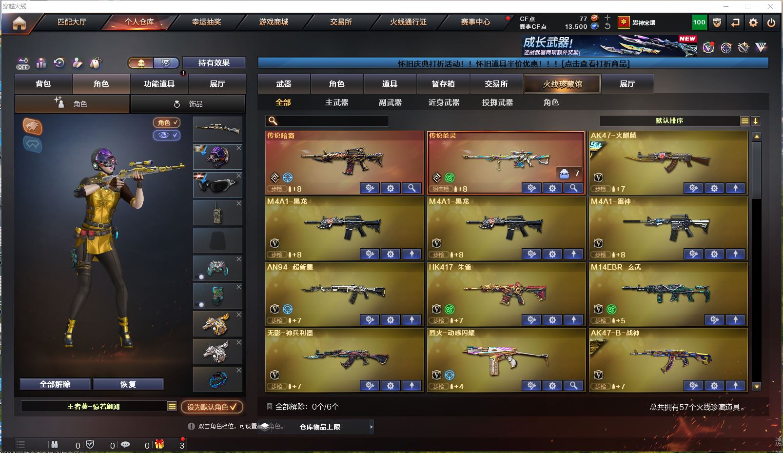 枪王2 Lv.100 52V,16王者,传说暗裔/传说圣灵/毁灭英雄计划 /毁灭枪娘/毁灭墨兰/火麒麟冠军之心/刘备/孙权/战神流金岁月/战神粉色甜心/战地猎狐/团团/M200-幻神/Barrett-毁灭/Barrett-极光/王者星神-觉醒版/M4A1-雷神----更多炫彩背包/光效/名片/武器具体看图!截图展示段位不代实际段位,赛季更新等不可抗拒因素发生变化、时限道具不保证所剩时间、标题未写送点券默认不送】【主播担保+安全至上+性价比买号卖号只选金牌商家一幻云】