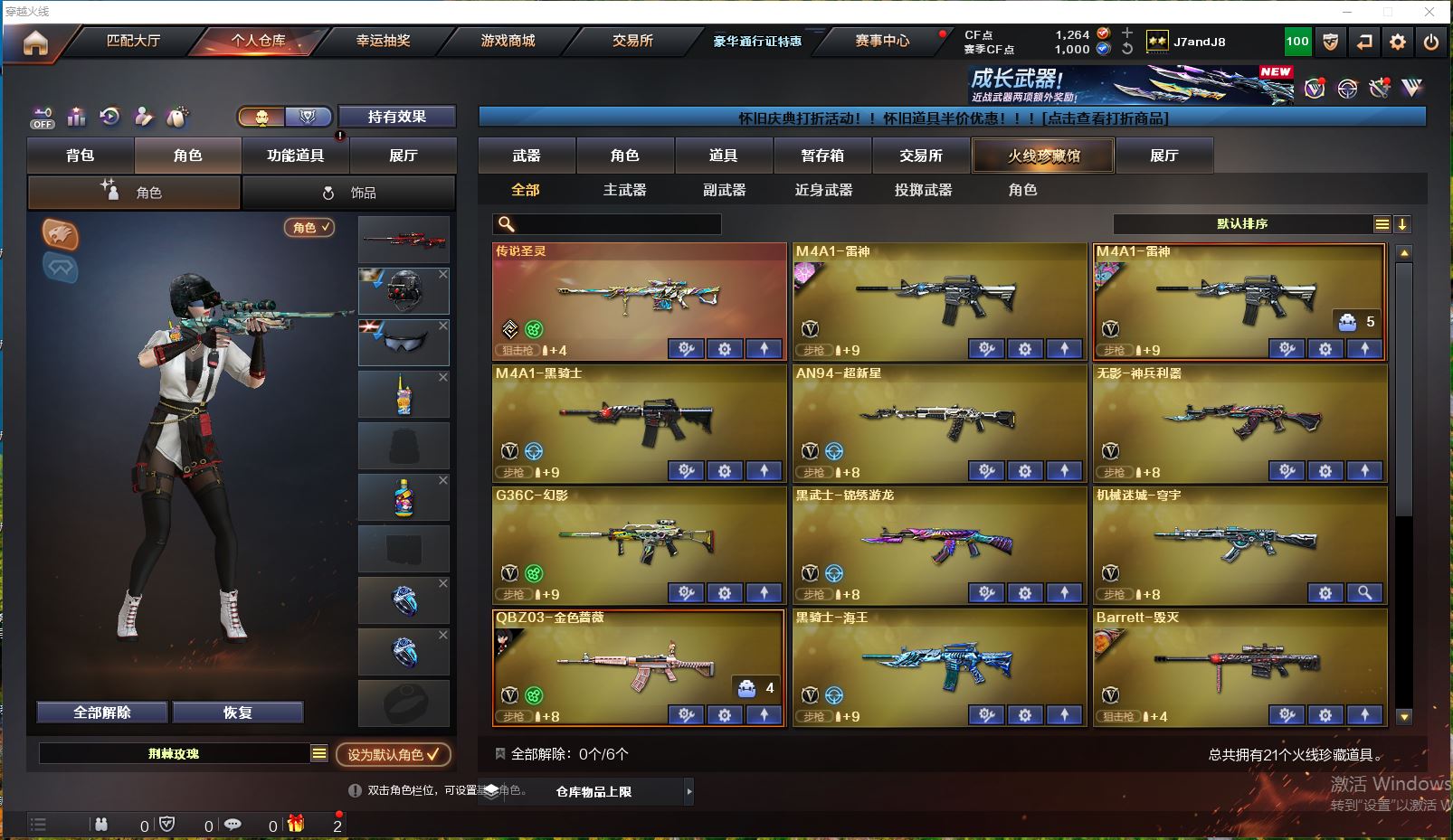 【可否排位】可排位 【账号状态】无封号 【区服】北京一区 【VIP】VIP6 【游戏等级】Lv.60 中校1 【段位排名】未上榜 【CF点】1264 【VVIP数量】21 【亮点解析:21V,3王者,1炫金,传说圣灵/幻神荣耀世冠白鲨2023 /毁灭英雄计划 /毁灭暗月/毁灭魔灵/天龙CFSTAR/天龙秘银/裁决叶芒苍灵 /裁决凤灵/裁决巅峰荣耀 /火麒麟CFSTAR/M200-幻神/Barrett-毁灭/Barrett-极光/AWM-裁决/M4A1-雷神(2)/】 【重要角色】代号:翼/虚空/电竞少女/荆棘玫瑰 【传说武器】传说圣灵 【英雄武器】_M200-幻神/Barrett-毁灭/Barrett-极光/AWM-裁决/M4A1-雷神(2)/M4A1-黑骑士/黑骑士-海王/无影-神兵利器/AN94-超新星/QBZ03-金色蔷薇/炼狱-悦蓝-觉醒版/王者之灵-觉醒版/沙鹰-天神/烟雾弹-雷暴/闪光弹-云龙/机械迷城-穹宇/G36C-幻影/黑武士-锦绣游龙/龙啸-烈火龙威 【王者武器】王者风势/王者之势/王者风神 【小人枪】幻神-魅影/AWM-灵狐-15周年嘉年华/M37-葵/迷你牛牛(2) 【其他重要武器】炫金黑龙/白虎-九尾白狐/M4A1-十二生肖·龙-雷神/纯金AK-47/AK47-死亡之翼(2)/AK47-盛典-CFS 2022/QBZ03-锋芒破茧(3)/AK47-雷蛇/M14EBR-炎龙(2)/9A-91翡翠/M4A1-PINK/火麒麟-小电视特供/M4CQBR-AP-孔明(2)/M4A1-电音/XM8-炫彩/AK103-神秘黑洞/M4A1-樱/M4A1-水枪-机甲核心/AK47-QT/AK-12-CFS2017纪念版/神罚(2)/AWM-Pink(2)/Barrett-捣乱兔兔/M82A1-飞龙在天/M200-青花瓷(2)/AWM-恶棍-枪王排位/AWM-盛典-CFS 2022/AWM-圣诞2013/M200-庆典-CFS 2021/雷蛇AWM/暗金M200/M200-枪王排位/百城AWM/Barrett-苍龙/AWM-银月/M200-大黄蜂/AWM-Red/M200-神秘黑洞(2)/M200-青帝/Barrett-炎龙/M200-萌杀/巴雷特-绚樱/M200-落樱/末日裁决者/M240B-卡通(2)/KAC-小动物(2)/MK5-枪王排位/EVOIII-萌杀/EVO III-赤血龙魂/CPW-动力-潘多拉/Spas-12-幻能朋克/愤怒公牛左轮-枪王排位/愤怒公牛左轮-丹龙/真的是手枪/COP357-圣诞2021/沙漠之鹰-盛典-CFS 2022/COP357-绚樱-圣诞(2)/Anaconda-麟龙/Anaconda-雷电核心/COP-机甲刑天/COP-金蝉子-枪王排位/幻影Anaconda-枪王排位/COP-青帝/沙鹰-枪王排位/mac-10-蒸汽钟表/新USP-枪王排位奖励/COP 357-平天大圣(2)/迷彩沙鹰-70KG/沙漠之鹰-炎龙/柯尔特-百城/蟒蛇-炫彩/虹光丛林匕首-枪王排位/蝴蝶刀-枪王排位/招财猫-枪王排位(2)/军用手斧-能量核心/Laser Sword-夏日/幻影双斧-枪王排位/高爆手雷-诺拉/生化手雷-小钢(4)/疾爆手雷-河马/胜利奖杯闪光弹-枪王排位/胜利奖杯手雷-枪王排位/惨叫鸡高爆手雷(2)/黄金刀锋手雷 【重要武器皮肤】幻神-荣耀世冠白鲨2023 皮肤/毁灭-英雄计划 皮肤/毁灭-暗月/毁灭-魔灵皮肤/天龙-CFSTAR/天龙-秘银/裁决-叶芒苍灵 皮肤/AWM-裁决-凤灵皮肤/裁决-巅峰荣耀 皮肤/火麒麟-CFSTAR/火麒麟-心动糖果/雷神-神秘按键 皮肤/雷神-源计划2.0专属 皮肤/雷神-宇航兔皮肤/黑骑士-典雅胡桃 皮肤/黑骑士-破界 皮肤/QBZ03-AG-CFPLS19冠军/修罗-CFSTAR/天神-暗月 【重要光效】AK47-无影金色光效 【重要音效卡】 【重要戒指】15周年限定戒指/龙眼(死神)/真龙戒/26赛季纪念戒指-耀金(拇指)/26赛季纪念戒指-耀金(食指)