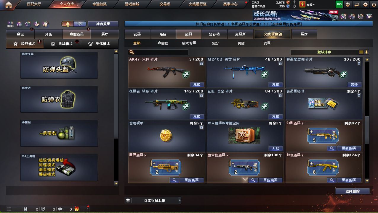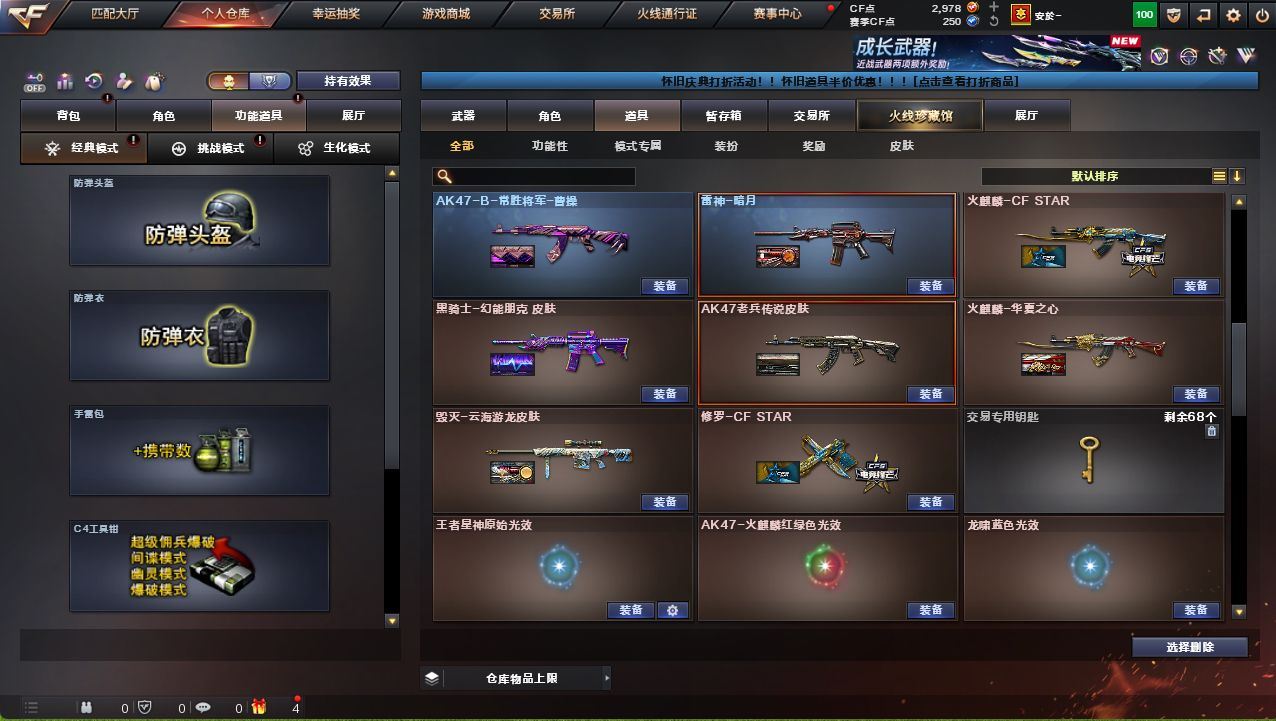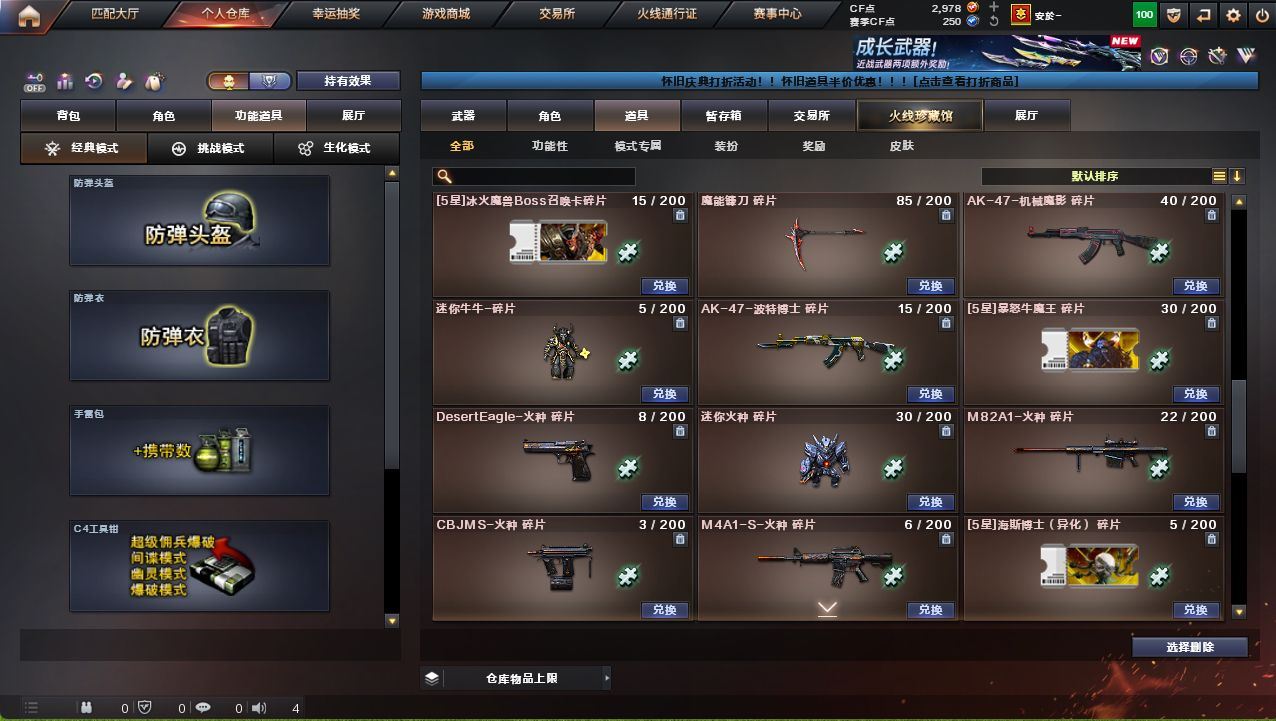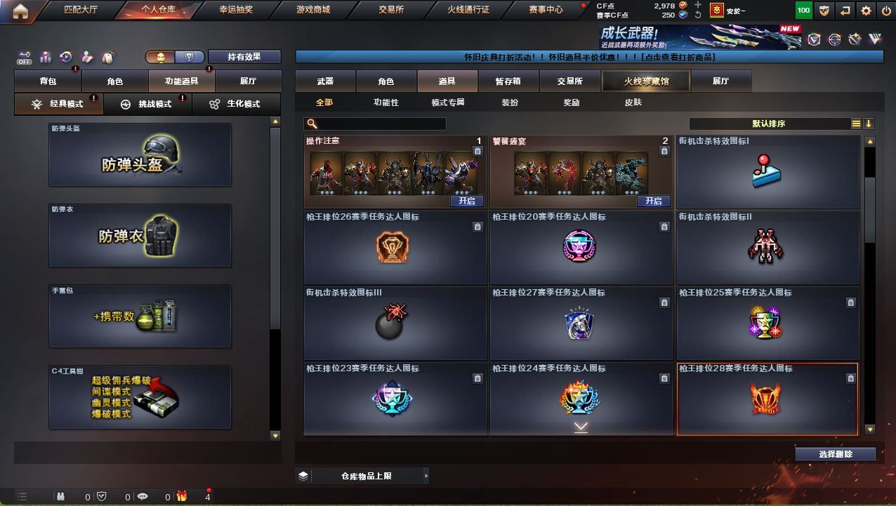 可二次可排位广西一区-30V-2王者武器数-1炫金武器数【热门武器】:QBZ03-金色蔷薇,Scar Light-白虎,M200-幻神,白虎-电玩蓝兔,M4A1-黑骑士【王者炫金武器】:炫金雷神【音效卡】:M200-幻神音效卡【皮肤】:白虎-电玩粉兔皮肤,雷神-暗月,火麒麟-雷神,火麒麟-华夏之心,火麒麟-心动糖果,毁灭-暗月,黑龙-能量核心*2,黑骑士-地狱火,战神-粉色甜心皮肤,战神-流金岁月皮肤*2,AK47-B-常胜将军-曹操,AK47-B-常胜将军-刘备*2,AK47-B-常胜将军-孙权*2【角色】:四防王者玲珑-小乔,奇洋探员,乔伊教练,云海玲珑,初恋灵狐,芳心审判者,虎妞,嘉年华灵狐,娟娟,灵狐-花神,灵狐者-X,麻雀,曼陀罗-X,曼陀罗-礼服,潘多拉-X,青霞仙子,斯沃特-X,兔囡囡,新娜塔莎,雪莉杨-摸金校尉,夜玫瑰-幻能朋克,影武者-X,游珑儿【人偶武器】:天龙-曼陀罗,迷你裂空之翼*2,夺魂,闪光弹-小乔,闪光弹-貂蝉,高爆手雷-大乔,迷你超能女侍【暴走生化】:超级对讲机【挑战大师】:冰龙粉碎者-白马银枪,激光毁灭者III,神圣爆裂者-末日III【英雄级武器】:AK47-火麒麟,M4A1-雷神,M4A1-黑骑士,Scar Light-白虎,无影-神兵利器,QBZ03-金色蔷薇,M4A1-猎神,超新星-悦享-觉醒版,AK-47-猩红传说*3,AK47-B-战神,AK47-B-常胜将军,白虎-电玩蓝兔,Barrett-毁灭,M200-幻神,Barrett-朱雀,王者之力-觉醒版,AA-12-雷霆,沙鹰-天神,屠龙,王者之啸-觉醒版【道具】:全能枪王背包,超级背包,黄金生化钩,生化弹匣,夺命之镰,防化服,金色流光-枪王排位*2,星辰流光-枪王排位,枪王排位28赛季金色流光,电玩兔兔表情,防弹头盔*2,防弹衣,C4工具钳,手雷包,各种道具详情看截图、低价出售找回包 赔、截图展示段位不代 表实际段位,如赛季更新等不可抗拒因素发生变化、时限道具不保证所剩时间、标题未写送点劵默认不送【卖号买号首选亿梦】