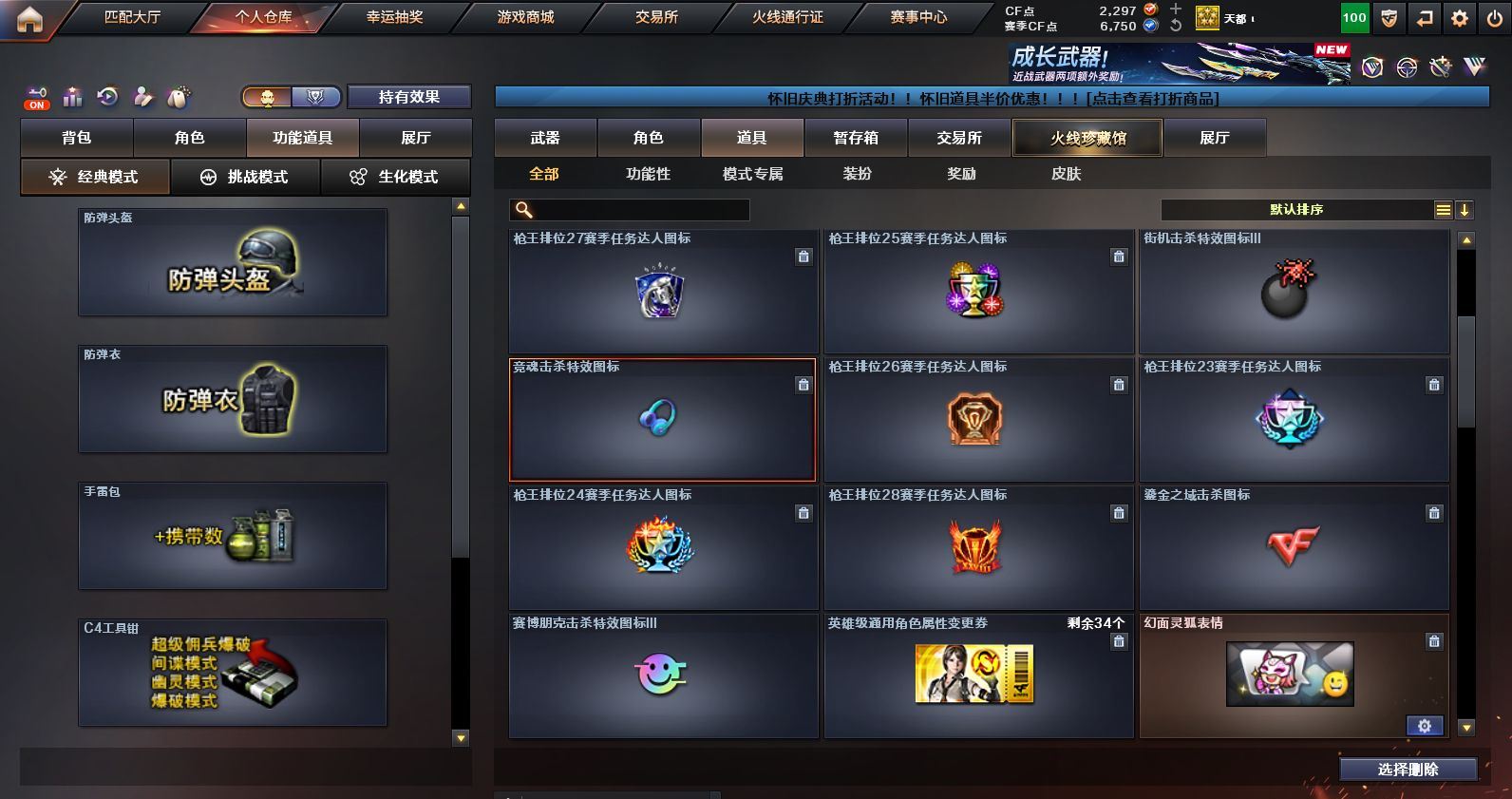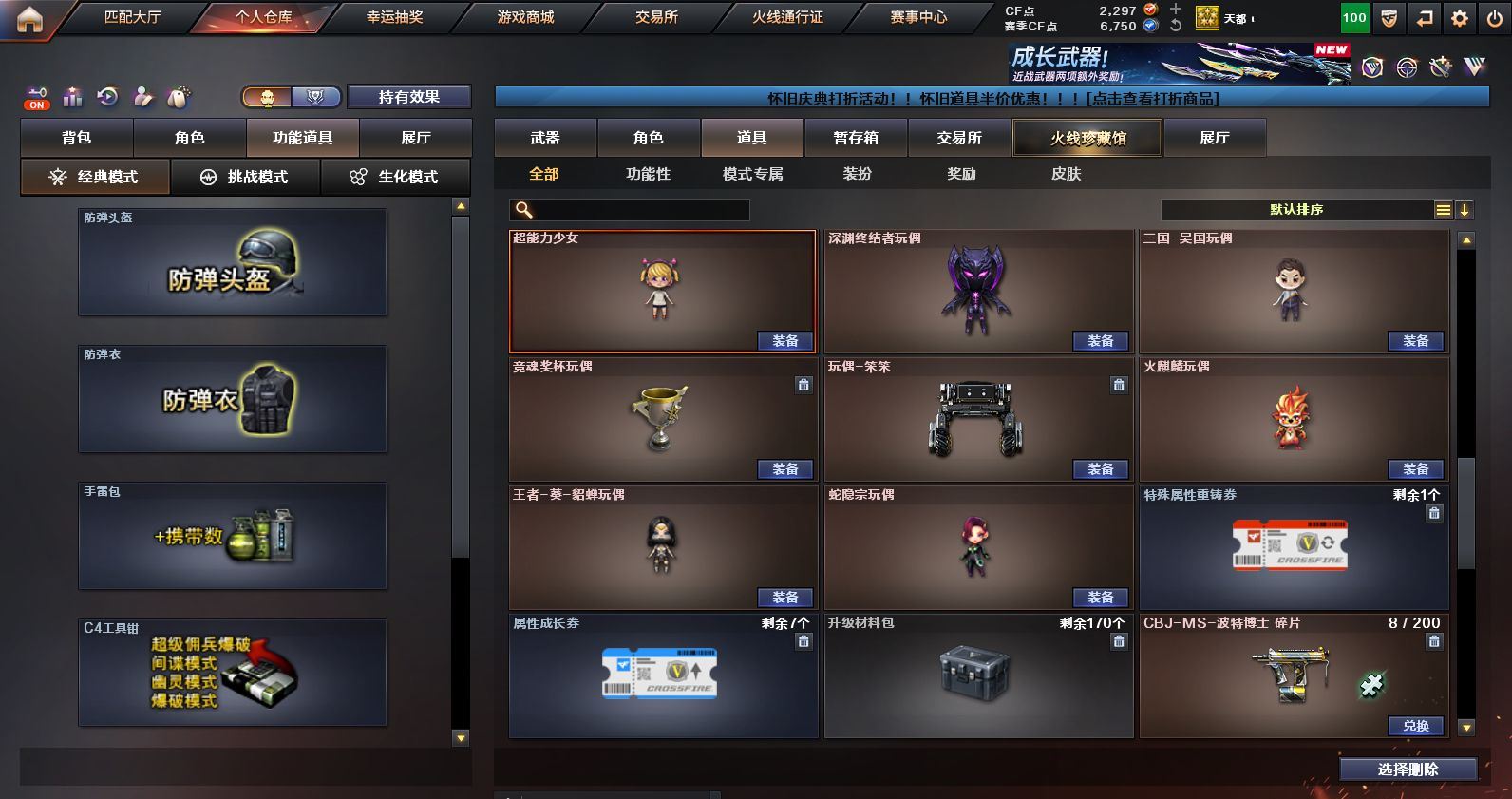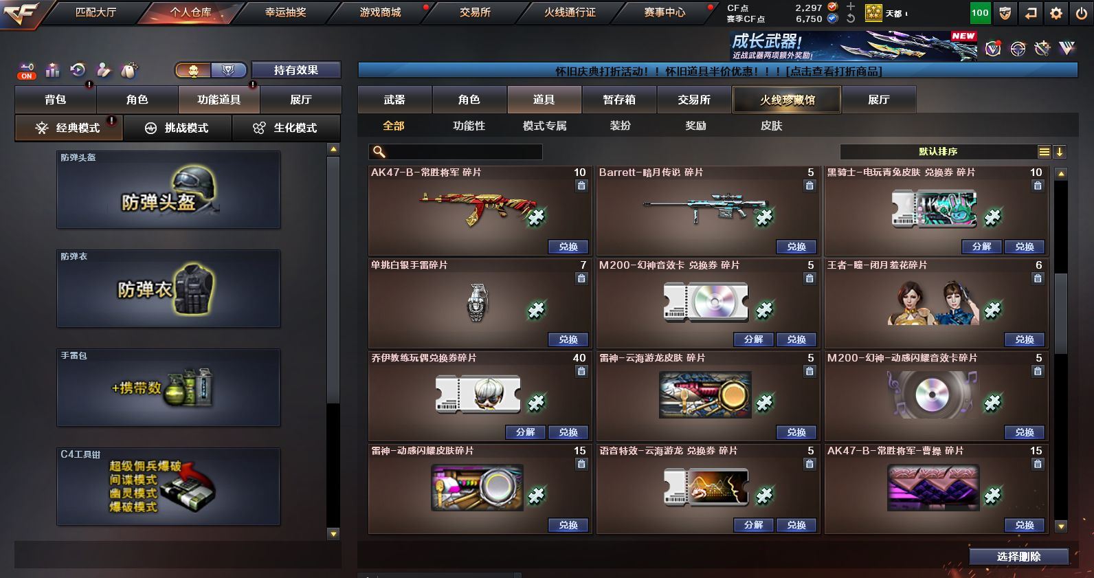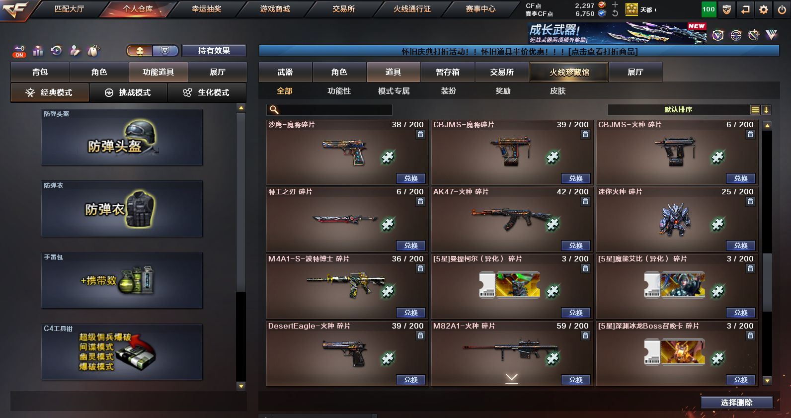 可二次可排位 浙江一区-45V-1王者武器数-1炫金武器数【热门武器】:M200-幻神,金色蔷薇-古蛇迷踪,修罗-古蛇迷踪,QBZ03-街机,金色小号,M4A1-黑骑士,雷神-小红,COP 357-幻灵*2,沙鹰-修罗*2,金刚伞【王者炫金武器】:炫金火麒麟【音效卡】:M4A1-黑骑士音效卡,Barrett-毁灭音效卡,九霄圣角音效卡,M4A1-苍鸣雷神音效卡,白虎-盛典舞曲音效卡,炼狱-百战金芒-庆典舞曲音效卡【皮肤】:M200-幻神-黄忠皮肤,M200-幻神-荣耀世冠白鲨,QBZ03-巅峰荣耀皮肤,雷神-暗月,M4A1-战神赵云,雷神-维纳斯皮肤,雷神-高能霹雳 皮肤,雷神-源计划2.0专属 皮肤,M4A1-再燃火线,雷神-神秘按键 皮肤,火麒麟-雷神,火麒麟-华夏之心,火麒麟-平天大圣,毁灭-暗月,毁灭-战神张飞,毁灭-英雄计划 皮肤,黑骑士-地狱火,九霄圣角-高洁仙镜 皮肤,修罗-百战金芒 皮肤,屠龙-春桃 皮肤,轻型军用手斧-再燃火线【角色】:4防影豹,关小雨,零·纪元,4防王者鹰,蛇隐宗,乔伊教练,修道士,云海玲珑,葵-阿尔法武装,暗夜-X,初恋灵狐,虎妞,嘉年华灵狐,麻雀,曼陀罗-X,潘多拉-X,潘多拉-甜心教官,蛇姬,斯沃特-X,蜀雪,雪莉杨-摸金校尉,影武者-X【人偶武器】:雷神-小红,王者Barrett-英勇金戈,AWM-灵狐-15周年嘉年华,迷你裂空之翼,迷你牛牛,生化手雷-机甲核心,迷你超能女侍【暴走生化】:黑龙吞噬者,超级对讲机【挑战大师】:AK47-冰龙粉碎者,冰龙粉碎者-白马银枪,激光毁灭者III-白马银枪*2【英雄级武器】:AK47-火麒麟,M4A1-雷神*2,M4A1-黑骑士,AK12-天启,无影-神兵利器,金色蔷薇-古蛇迷踪,九霄圣角,烈火-动感闪耀,超新星-悦享-觉醒版,AK-47-猩红传说*2,黑骑士-海王,机械迷城-穹宇,Barrett-毁灭,M200-幻神,炼狱-百战金芒,沙鹰-修罗*2,COP 357-幻灵*2,天神-动感闪耀,修罗-古蛇迷踪,屠龙,擎天,麒麟刺,屠龙-动感闪耀,麒麟刺-百战金芒,屠龙-斗烈龙驹,龙啸-烈火龙威,高爆手雷-幻灵*3,手雷-动感闪耀,高爆手雷-古蛇迷踪,闪光弹-幻灵*3,烟雾弹-幻灵*3,烟雾弹-古蛇迷踪,AK47-竞魂无影【源级武器】:御·火麒麟-平天大圣,火麒麟-雷神,源-黑龙,源·雷神,魂·M4A1-雷神-化蛇*2,魂·雷神-神秘按键,魂·雷神-维纳斯,魂·雷神-新春神龙,魂-雷神-萌杀,魂·雷神-15周年嘉年华,魂·雷神-萌柴,御·雷神-机甲刑天,御·雷神-烈虎,M4A1-十二生肖·龙-雷神,源·黑骑士*2,魂·黑骑士-摸金校尉,魂·黑骑士-现代金属,魂·黑骑士-幻能朋克,魂·黑骑士-破浪10年,魂·黑骑士-娜塔莉娅,御·黑骑士-冰魄,御·黑骑士·哪吒闹海,魂-死神-机甲核心,源·AK47-黑武士,魂·黑武士-锋芒破茧,源·天启,源·超新星,御·超新星-圣诞,源·武圣*2,源·机械迷城,魂·龙血-锋芒破茧*2,灵·HK417-朱雀-甜蜜火力,源·HK417-朱雀,白虎-九尾白狐,源-金色蔷薇*2,金色蔷薇-狼王,魂·QBZ03-金色蔷薇-古蛇迷踪,魂·QBZ03-金色蔷薇-萌杀,魂·QBZ03-金色蔷薇-蛇姬,源·玫瑰精灵,源-极光,Barrett-极光-掌火,魂·天龙-彼岸花,AWM-裁决-百城联赛天津,魂·裁决-凤灵*2,魂·裁决-神秘按键,魂·裁决-新人王绿豆*2,魂·裁决-羽掣*2,魂·毁灭-航天科技*2,魂·毁灭-秦师,魂·毁灭-青帝,魂·毁灭-神秘黑洞*2,御·毁灭-黑大圣*2,魂·Barrett-金色蔷薇-蛇姬,灵·Barrett-金色蔷薇-甜蜜火力,魂·Barrett-朱雀-锦鲤,魂·Barrett-朱雀- 新春神龙,源·Barrett-朱雀,灵·Barrett-朱雀-炫光*2,魂·炼狱-玩具枪*2,魂·炼狱-月*3,魂·炼狱-蒸汽钟表*2,加特林-炼狱-掌火,御·炼狱-女娲,魂·修罗-15周年嘉年华,魂·修罗-迷彩,灵·天神-穹宇,源·武圣glock,魂·屠龙-春桃,魂·擎天-破浪10年,源·擎天-萌杀,源·龙啸*4,魂·麒麟刺-月,灵·麒麟刺-穹宇【道具】:CFS限定背包,EDG炫彩背包,亚洲杯纪念炫彩背包,古蛇迷踪炫彩背包,百战金芒炫彩背包,超级背包,女皇终结者-魔龙之吻,绿色巨人,灵魂忍者,变异宝贝,妖姬,迷雾幽灵,夺命之镰,防化服*2,金色流光-枪王排位*2,星辰流光-枪王排位,枪王排位28赛季金色流光,语音特效-盛典烟火,古蛇迷踪打击特效,蛇隐宗表情,萌萌小葵表情,电玩兔兔表情,动感闪耀表情,防弹头盔*5,防弹衣*6,C4工具钳*5,手雷包*5【特殊枪械】:1黑骑士各种道具