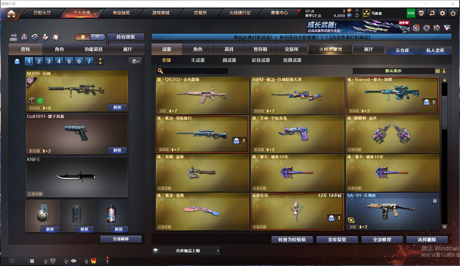【可否排位】可排位 【账号状态】无封号 【区服】重庆一区 【VIP】 【游戏等级】Lv.100 高阶大元帅 【段位排名】未上榜 【CF点】325 【VVIP数量】83 【亮点解析:4王者,3炫金,毁灭耀金/火麒麟华夏之心/火麒麟平天大圣/无影耀金/刘备/孙权/千变孔明/雷神虎将/雷神耀金/雷神暗月/传说艾莉莎 审判者/_樱/_迷迭香/电竞教官-云悠悠/M200-幻神/M200-竞技荣光/Barrett-毁灭(2)/Barrett-暗月传说/王者之光-觉醒版/堕天神套装/竞技荣光套装/M4A1-雷神音效卡/Barrett-毁灭音效卡】【重要套装】堕天神套装/竞技荣光套装 【重要角色】传说艾莉莎/审判者/_樱/_迷迭香/电竞教官-云悠悠/王者樱-热浪之夏/王者-瞳-闭月羞花/王者春/铁扇公主/职业选手/灵狐者-职业经理 【传说武器】 【英雄武器】_M200-幻神/M200-竞技荣光/Barrett-毁灭(2)/Barrett-暗月传说/王者之光-觉醒版/Kar98K-星神/AWM-天龙/M4A1-堕天神/M4A1-青龙/M4A1-雷神(2)/黑骑士-海王/王者之势-觉醒版/HK417-朱雀/AK47-火麒麟/王者炎心-觉醒版/AK47-无影/无影-神兵利器/AK-47-猩红传说/AK47-B-身先士卒/AK47-B-常胜将军/AK47-B-战士/QBZ03-金色蔷薇/RPK-盘龙/汤姆逊-烈龙(3)/加特林-炼狱(2)/COP-堕天神(2)/沙鹰-修罗(4)/柯尔特-竞技荣光/USP-雷暴/麒麟刺-堕天神(3)/龙啸-堕天神(2)/擎天(2)/擎天-竞技荣光/屠龙(2)/高爆手雷-堕天神(7)/高爆手雷-竞技荣光(3)/烟雾弹-堕天神(7)/烟雾弹-竞技荣光(3)/闪光弹-堕天神(7)/闪光弹-竞技荣光(3) 【王者武器】王者之啸 【小人枪】巴雷特-零-水下丽影/炼狱-迷你小钢/魔能飞环-曼陀罗/冰火魔兽(2)/迷你牛牛 【其他重要武器】炫金天龙/炫金毁灭/炫金修罗/M4A1-圣诞2021(2)/M4A1-S-火种/M4A1-紫狱/M4A1-秘银赤龙(3)/雷神-赛博幻想/QBZ03-吕布/AK47-B-十周年/AK-103-火线13周年/Scar-Light-赤血龙魂/M14EBR-情人节2020/雷神-赛博朋克/9A91-赤血龙魂/黄金AK-47/M200-青花瓷/M200-神秘黑洞/AWM-A-圣诞2021/AWM-卡通/Barrett-孔明/雷蛇AWM/98K-炫彩/AWM-黑金/M200-大黄蜂/M200-赤血龙魂/AWM-恶棍/Barrett-翔龙/98K-蓝色骑士/AWM-恶棍-枪王排位/AWM-十周年/KAC-小动物(2)/EVO III-赤血龙魂/死亡之眼/愤怒公牛左轮-枪王排位/COP 357-平天大圣(3)/新USP-枪王排位奖励/COP 357-子鼠/沙鹰-枪王排位/幻影Anaconda-枪王排位/Anaconda-黑金神龙/Cop357-赤龙/街机小灰机/不灭之拳/丛林匕首-卧龙/鹰爪-枪王排位/闪光弹-枪王排位/高爆手雷-大乔/闪光弹-貂蝉/闪光弹-小乔/惨叫鸡高爆手雷(2)/胜利奖杯闪光弹-枪王排位/手雷-能量核心/强化版迅捷虫手雷(2)/黄金刀锋手雷 【重要武器皮肤】毁灭耀金皮肤/火麒麟-华夏之心/火麒麟-平天大圣/无影耀金皮肤/AK47-B-常胜将军-刘备/AK47-B-常胜将军-孙权/M4A1-千变-孔明皮肤/雷神-虎将/雷神-耀金皮肤/雷神-暗月/雷神-星空/黑骑士-暗月/战神-流金岁月皮肤/战神-紫绶金章皮肤/战神-粉色甜心皮肤 【重要光效】M200-幻神蓝粉色光效/AK47-黑武士蓝粉色光效 【重要音效卡】M4A1-雷神音效卡/Barrett-毁灭音效卡 【重要戒指】15周年限定戒指/金蛇戒/银蛇戒/17赛季纪念戒指-耀银/18赛季纪念戒指-耀金/20赛季纪念戒指-耀金/21赛季纪念戒指-耀银(拇指)/25赛季纪念戒指-耀铜(食指)/25赛季纪念戒指-耀铜(拇指)
