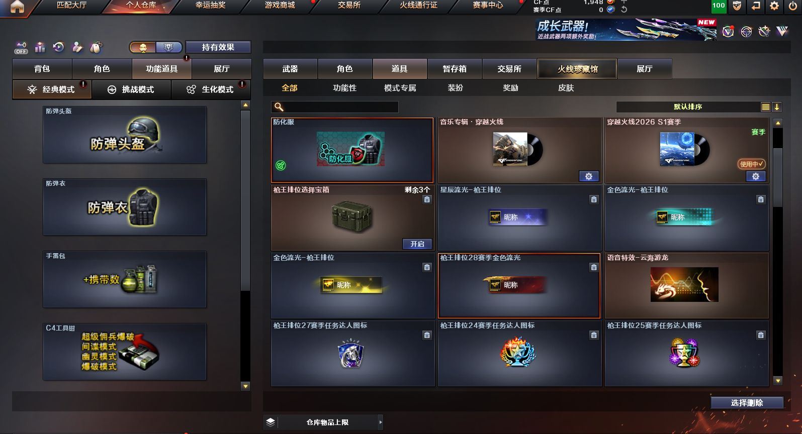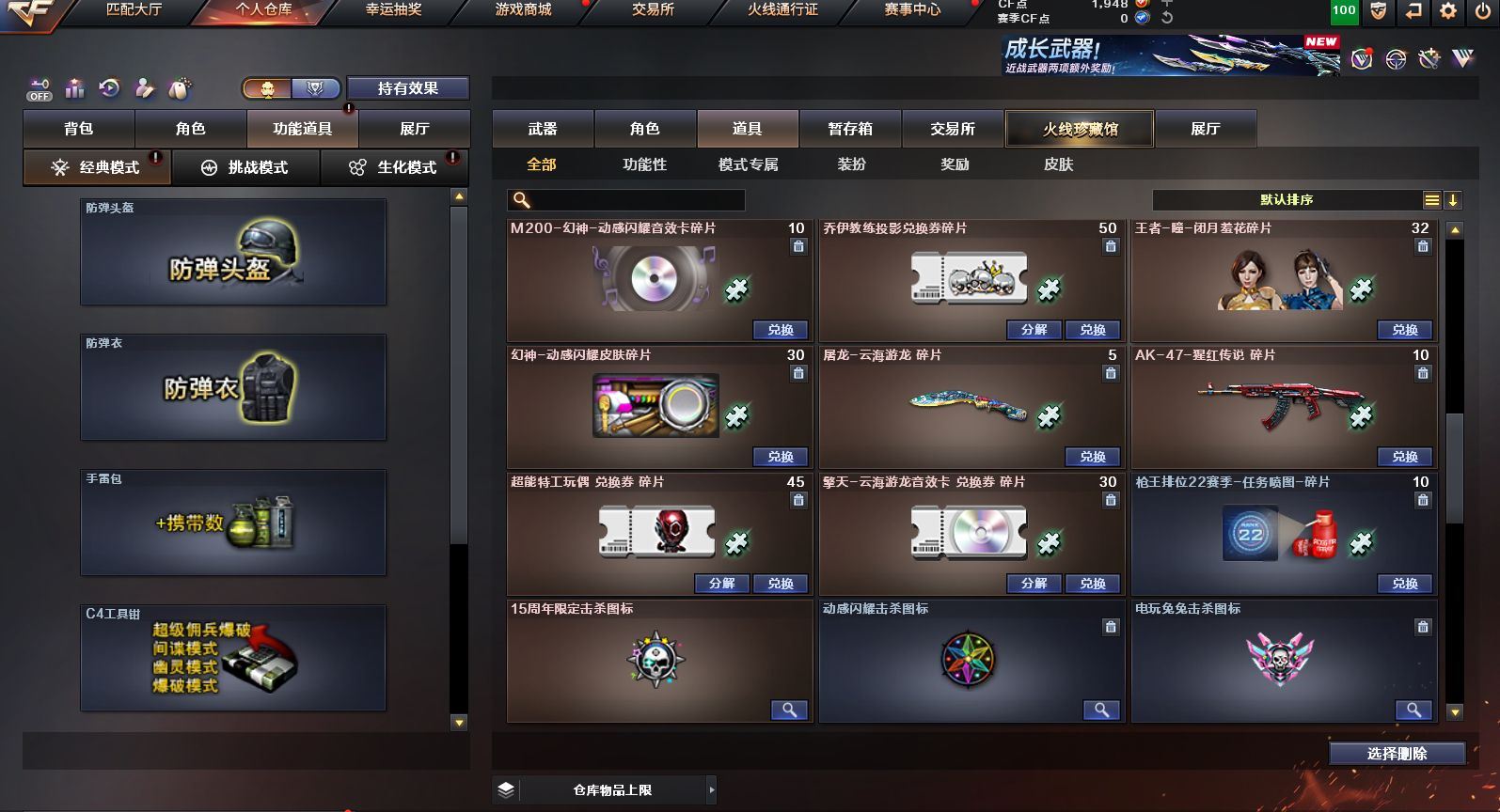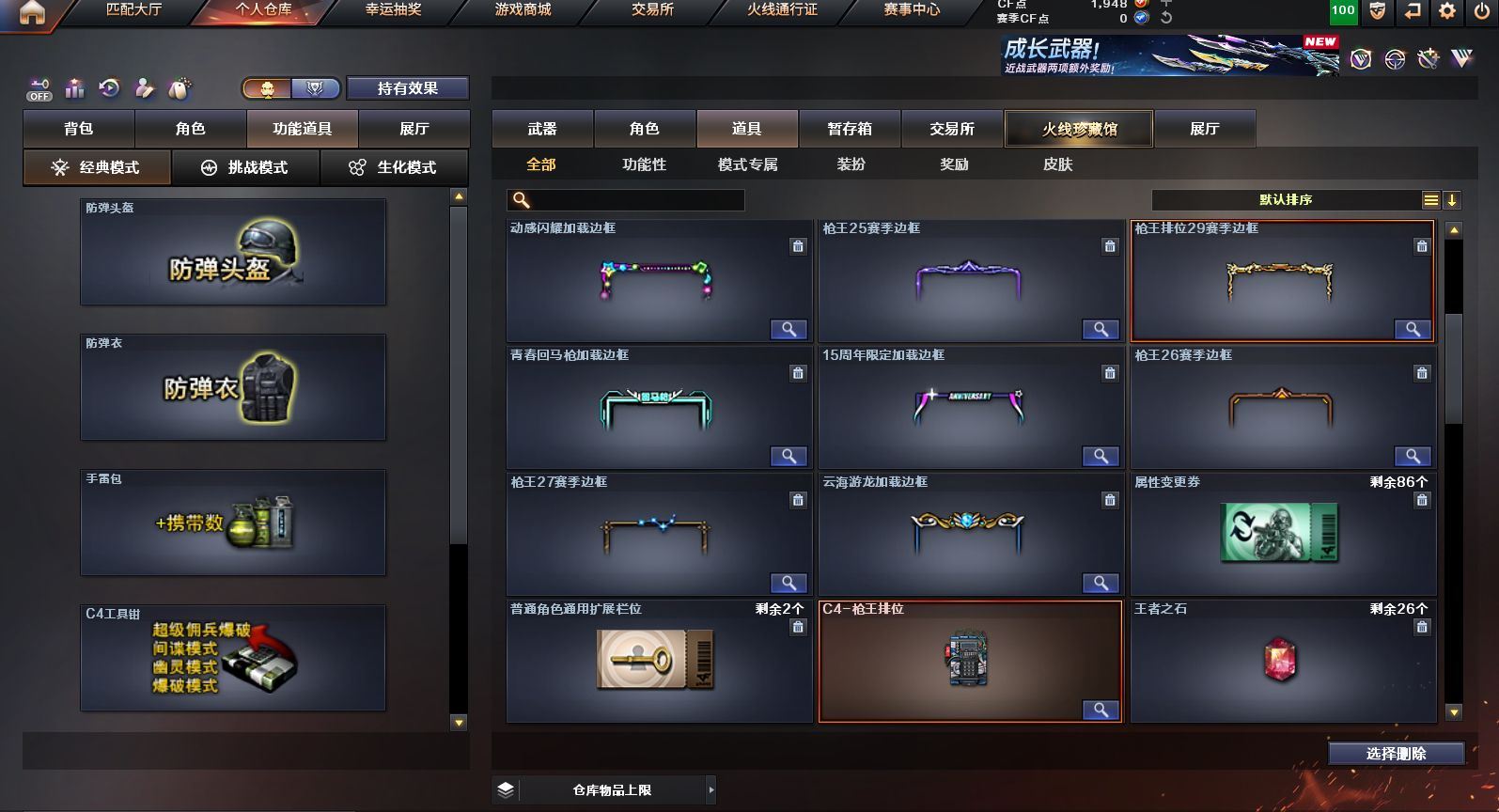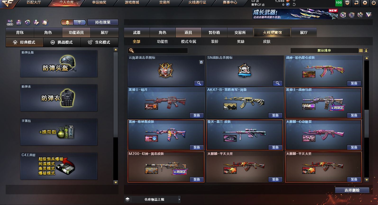 可二次可排位 广东一区-23V-0王者武器数-0炫金武器数【热门武器】:QBZ03-金色蔷薇,M200-幻神,白虎-电玩蓝兔,M4A1-黑骑士,羊驼玩偶,沙鹰-修罗【皮肤】:M200-幻神-黄忠皮肤,雷神-维纳斯皮肤,火麒麟-平天大圣*2,火麒麟-心动糖果,黑骑士-暗月,黑骑士-战神马超,战神-粉色甜心皮肤,AK47-B-常胜将军-刘备【角色】:乔伊教练,云海玲珑,初恋灵狐,芳心审判者,嘉年华灵狐,娟娟,灵狐者-X,灵狐者-黄金海岸,灵狐者-七夕宝贝,龙儿-小淘气,麻雀,潘多拉-X,潘多拉-甜心教官,蛇姬,斯沃特-X,兔囡囡,雪莉杨-摸金校尉,樱-战斗天使【人偶武器】:AWM-灵狐-15周年嘉年华,夺魂,迷你超能女侍【挑战大师】:冰龙粉碎者-白马银枪,激光毁灭者III*2【英雄级武器】:AK47-火麒麟*2,M4A1-雷神,M4A1-黑骑士,无影-神兵利器,QBZ03-金色蔷薇,烈火-动感闪耀,白虎-电玩蓝兔,AWM-天龙,Barrett-毁灭,M200-幻神,烈龙-云海游龙,AA-12-雷霆,沙鹰-修罗,天神-动感闪耀,屠龙-动感闪耀,擎天-云海游龙,龙啸-烈火龙威,手雷-动感闪耀,手雷-云海游龙,烟雾弹-古蛇迷踪【源级武器】:源·超新星,魂·HK417-朱雀-凤灵,魂·屠龙-都是Cfer,源·擎天-萌杀,魂·麒麟刺-神秘黑洞【道具】:云海游龙炫彩背包,背包-洛丽塔,超级背包,绿色巨人,灵魂忍者,迷雾幽灵,夺命之镰,防化服*2,金色流光-枪王排位*2,星辰流光-枪王排位,枪王排位28赛季金色流光,电玩兔兔表情,动感闪耀表情,云海游龙表情,防弹头盔*2,防弹衣*2,C4工具钳*2,手雷包*2【特殊枪械】:1黑骑士,各种道具详情看截图、低价出售找回包 赔、截图展示段位不代 表实际段位,如赛季更新等不可抗拒因素发生变化、时限道具不保证所剩时间、标题未写送点劵默认不送【卖号买号首选亿梦】