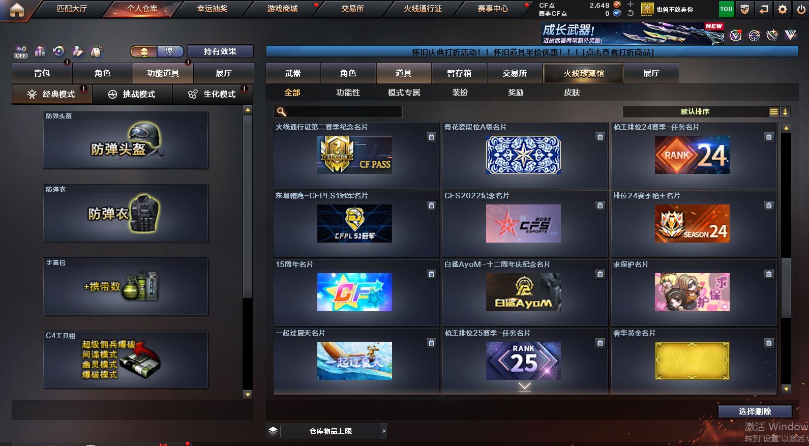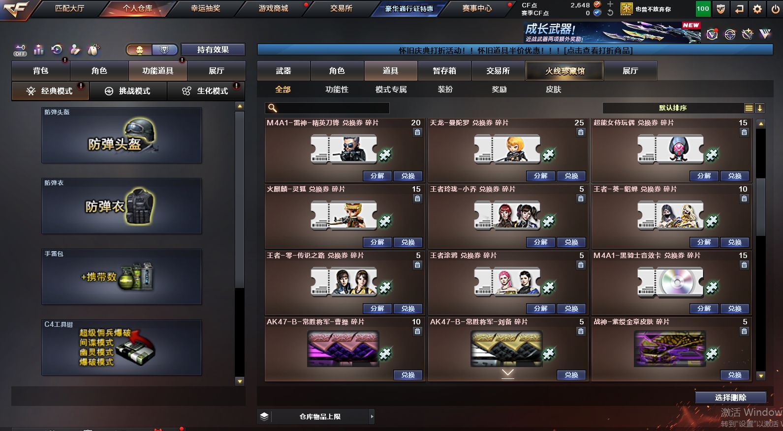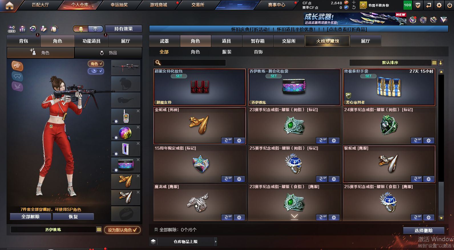 可二次可排位 陕西一区-12V-0王者武器数-0炫金武器数【热门武器】:QBZ03-金色蔷薇【皮肤】:火麒麟-平天大圣,黑骑士-暗月,无影-能量核心,AK47-B-常胜将军-刘备【角色】:乔伊教练,芳心审判者,风暴女,虎妞,嘉年华灵狐,娟娟,龙儿,曼陀罗-X,潘多拉-X,斯沃特-X,蜀雪,兔囡囡,樱-战斗天使【人偶武器】:天龙-曼陀罗,AWM-灵狐-15周年嘉年华,COP-旗袍,迷你牛牛,深渊终结者手雷,迷你超能女侍【挑战大师】:激光毁灭者III-白马银枪,神圣爆裂者-末日III【英雄级武器】:M4A1-雷神,无影-神兵利器,黑武士-锦绣游龙,QBZ03-金色蔷薇,烈火-动感闪耀,AK47-B-战神,AK47-B-常胜将军,Barrett-毁灭,天神-动感闪耀,屠龙-动感闪耀,龙啸-烈火龙威,手雷-动感闪耀【源级武器】:源·火麒麟,御·黑龙-龙太子,源·雷神,魂·雷神-维纳斯,魂·雷神-新春神龙,魂-雷神-萌杀,魂·雷神-15周年嘉年华,魂·雷神-萌柴,御·雷神-机甲刑天*2,御·雷神-烈虎*3,M4A1-十二生肖·龙-雷神,源·黑骑士,魂·黑骑士-现代金属*3,魂·黑骑士-幻能朋克*3,魂·黑骑士-破浪10年*4,魂-死神-机甲核心,魂·黑武士-锋芒破茧,源·天启,源·武圣*4,魂·龙血-锋芒破茧*2,M4A1-青龙-掌上穿越火线,源-金色蔷薇,魂·QBZ03-金色蔷薇-萌杀,源·玫瑰精灵*2,源-极光,AWM-裁决-百城联赛天津,魂·裁决-凤灵,魂·裁决-新人王绿豆*2,魂·裁决-羽掣,源·毁灭,魂·毁灭-航天科技*2,魂·毁灭-秦师,魂·毁灭-青帝*3,魂·毁灭-神秘黑洞,御·毁灭-黑大圣,魂·Barrett-朱雀- 新春神龙,源·Barrett-朱雀,灵·Barrett-朱雀-炫光,魂·炼狱-玩具枪,魂·炼狱-月*2,魂·炼狱-蒸汽钟表,御·炼狱-女娲*2,魂·修罗-15周年嘉年华,魂·修罗-神兵利器,魂·修罗-现代金属,源·天神*2,魂·天神-阿努比斯,源·武圣glock*2,魂·屠龙-都是Cfer,魂·擎天-破浪10年,源·擎天-萌杀*2,源·龙啸*2,魂·麒麟刺-神秘黑洞【道具】:全能枪王背包,夺命之镰,防化服,金色流光-枪王排位*2,星辰流光-枪王排位,枪王排位28赛季金色流光,电玩兔兔表情,动感闪耀表情,EP战队名片,防弹头盔*6,防弹衣*6,C4工具钳*6,手雷包*6各种道具详情看截图、低价出售找回包 赔、截图展示段位不代 表实际段位,如赛季更新等不可抗拒因素发生变化、时限道具不保证所剩时间、标题未写送点劵默认不送【卖号买号首选亿梦】