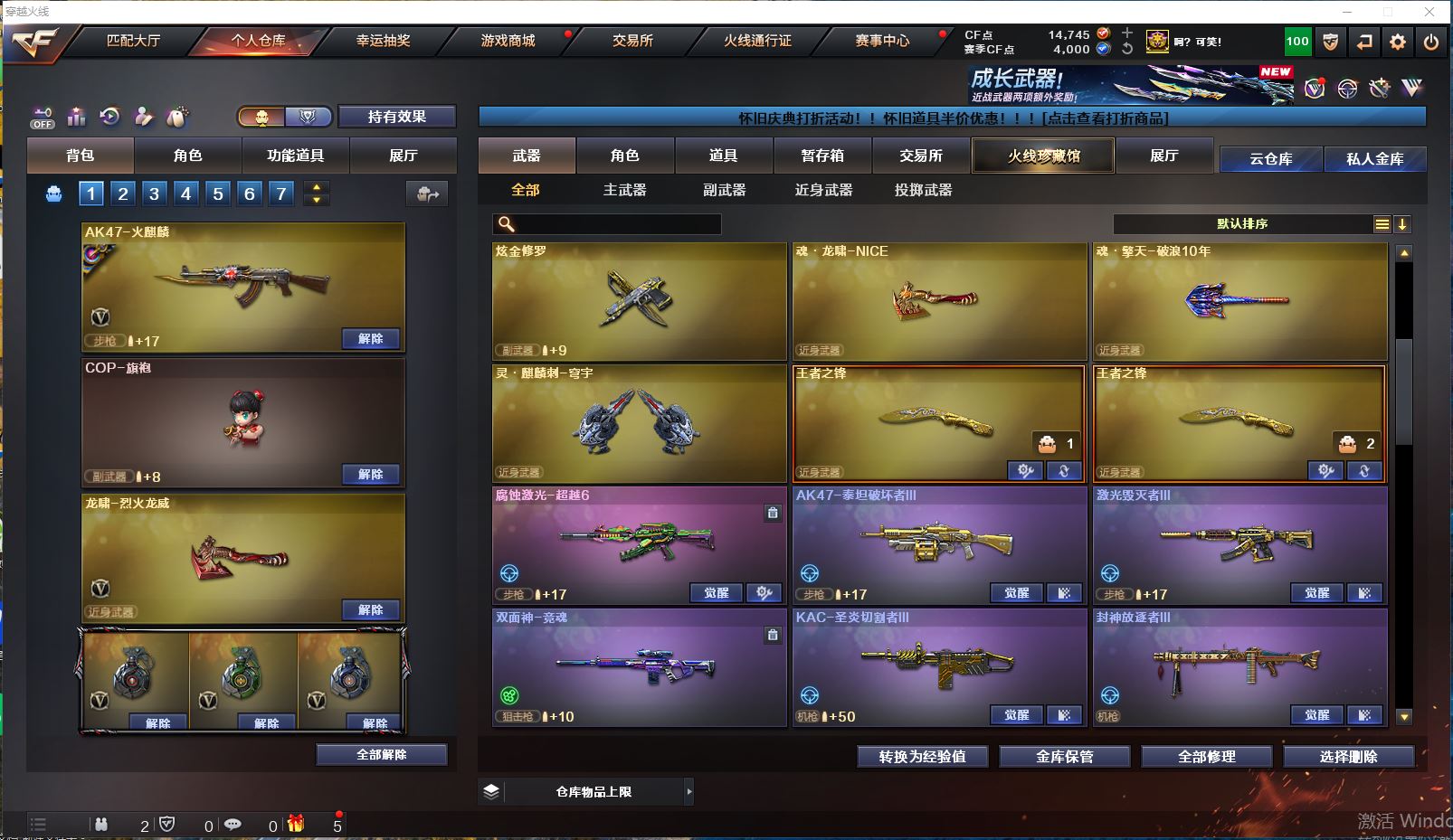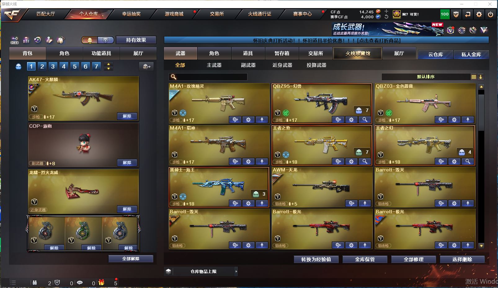 【可否排位】可排位 【账号状态】无封号 【区服】上海一区 【VIP】VIP5 【游戏段位】枪王1 【游戏等级】Lv.102 荣耀元帅 【段位排名】151113 【CF点】14745 【VVIP数量】116 【亮点解析:9王者,5炫金,毁灭英雄计划 /极光能量核心/天龙CFSTAR/天龙秘银/火麒麟Heartshot/火麒麟CFSTAR/无影能量核心/无影耀金/雷神源计划2.0专属 /雷神能量核心/_樱/_蝴蝶_/魅影/幻面灵狐/Barrett-毁灭(2)/Barrett-极光(2)/barrett-金色蔷薇/AWM-天龙/AWM-裁决/幻兽套装/臻选金狐套装/QBZ03-金色蔷薇音效卡/死神-雪域霜狐-怀旧音效卡/Barrett-毁灭音效卡】【重要套装】幻兽套装/臻选金狐套装 【重要角色】_樱/_蝴蝶_/魅影/幻面灵狐/雪域霜狐/奇洋探员/电竞少女/铁骑荣耀/铁骑-乘风破浪/零-水下丽影 【传说武器】 【英雄武器】Barrett-毁灭(2)/Barrett-极光(2)/barrett-金色蔷薇/AWM-天龙/AWM-裁决/M4A1-雷神(2)/M4A1-死神/M4A1-黑龙/M4A1-龙血/M4A1-千变/M4A1-黑骑士(3)/黑骑士-海王/M4A1-武圣(3)/M4A1-猎神/M4A1-玫瑰精灵/王者之势-觉醒版/王者之幻-觉醒版/QBZ95-幻兽/AK12-天启/AK47-火麒麟/AK47-无影/AK47-黑鲨/AK47-黑武士/AK47-机械迷城/AN94-超新星/QBZ03-金色蔷薇/RPK-盘龙(6)/汤姆逊-烈龙(6)/加特林-炼狱(2)/沙鹰-天神(3)/沙鹰-修罗(4)/沙鹰-幻兽(7)/_破空枪刃_/云龙扇/麒麟刺(2)/龙啸(3)/擎天(2)/屠龙/女皇利刃-幻兽/高爆手雷-云龙(2)/高爆手雷-幻兽(7)/烟雾弹-云龙/烟雾弹-幻兽(7)/闪光弹-云龙(2)/闪光弹-幻兽(7)/HK417-朱雀-电竞之星/机械迷城-穹宇/金色蔷薇-古蛇迷踪/超新星-热带奇洋/黑武士-锦绣游龙/魂·QBZ03-金色蔷薇-古蛇迷踪/修罗-古蛇迷踪/屠龙-电竞之星/龙啸-烈火龙威/龙啸-热带奇洋/唐刀-古蛇迷踪/手雷-热带奇洋/烟雾弹-古蛇迷踪/高爆手雷-古蛇迷踪 【王者武器】王者之城/王者之圣/王者之心/王者之光/炼狱-悦蓝/烈龙-悦心/王者之魂/王者之锋(2) 【小人枪】HK417-朱雀-蛇隐宗/M82A1-水枪-不败狙神/AWM-灵狐-15周年嘉年华/KAC锯式机枪-黑桃战神/蓝色迷你猩红司令_M37/COP357-太空指挥官/COP-旗袍/夺魂/迷你曼提柯尔/迷你火种/迷你深渊冰龙/小飞碟-宇航兔兔/迷你牛牛/魔能飞环-曼陀罗/迷你裂空之翼/迷你波特博士/迷你白狐/Mini沃特X/冰火魔兽