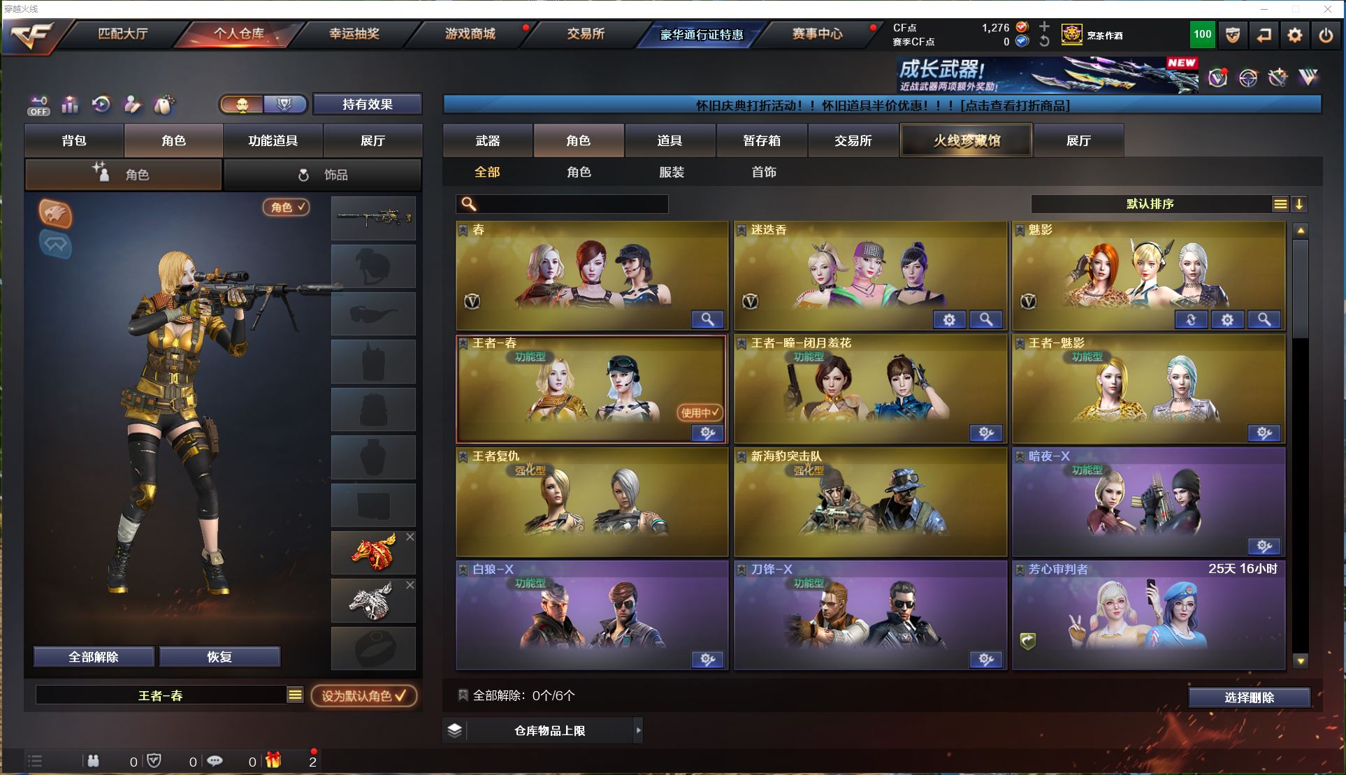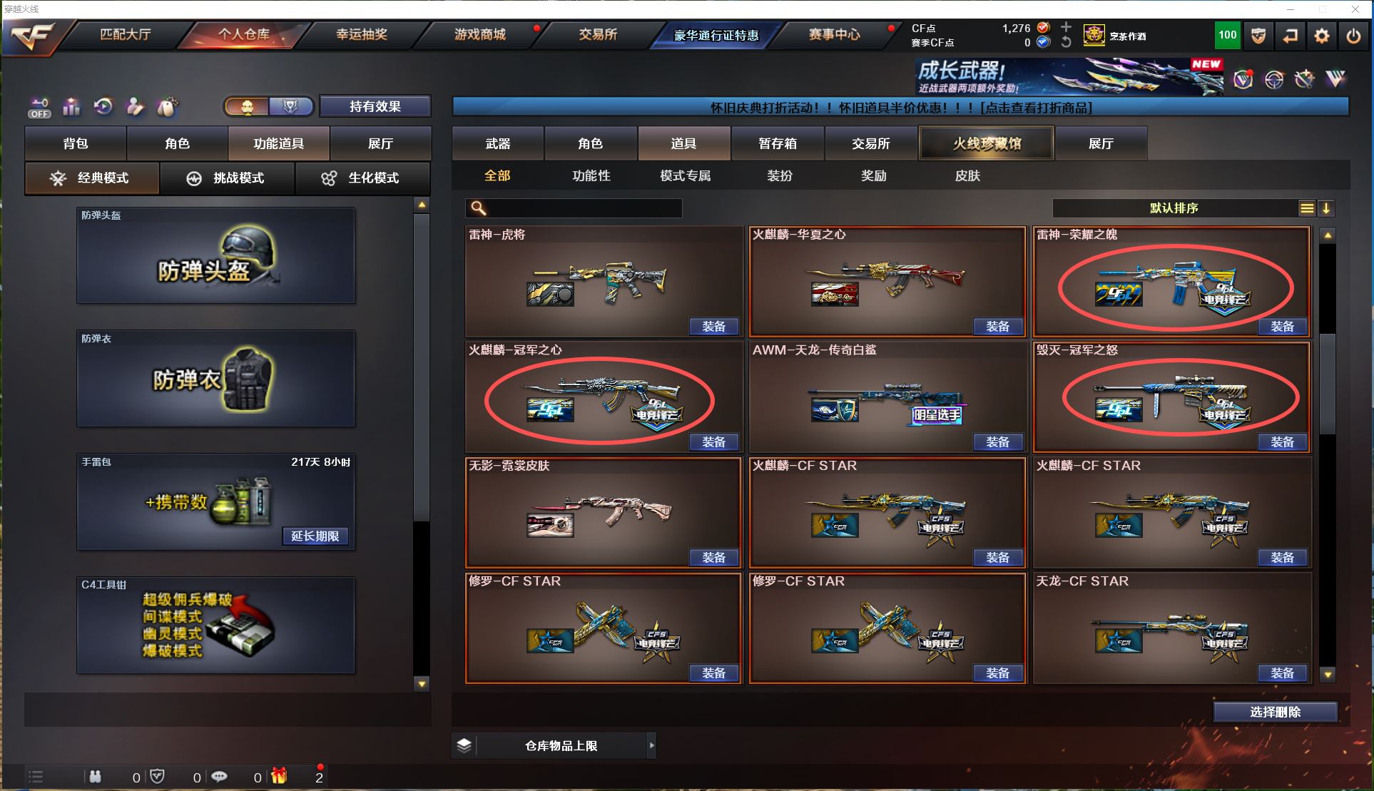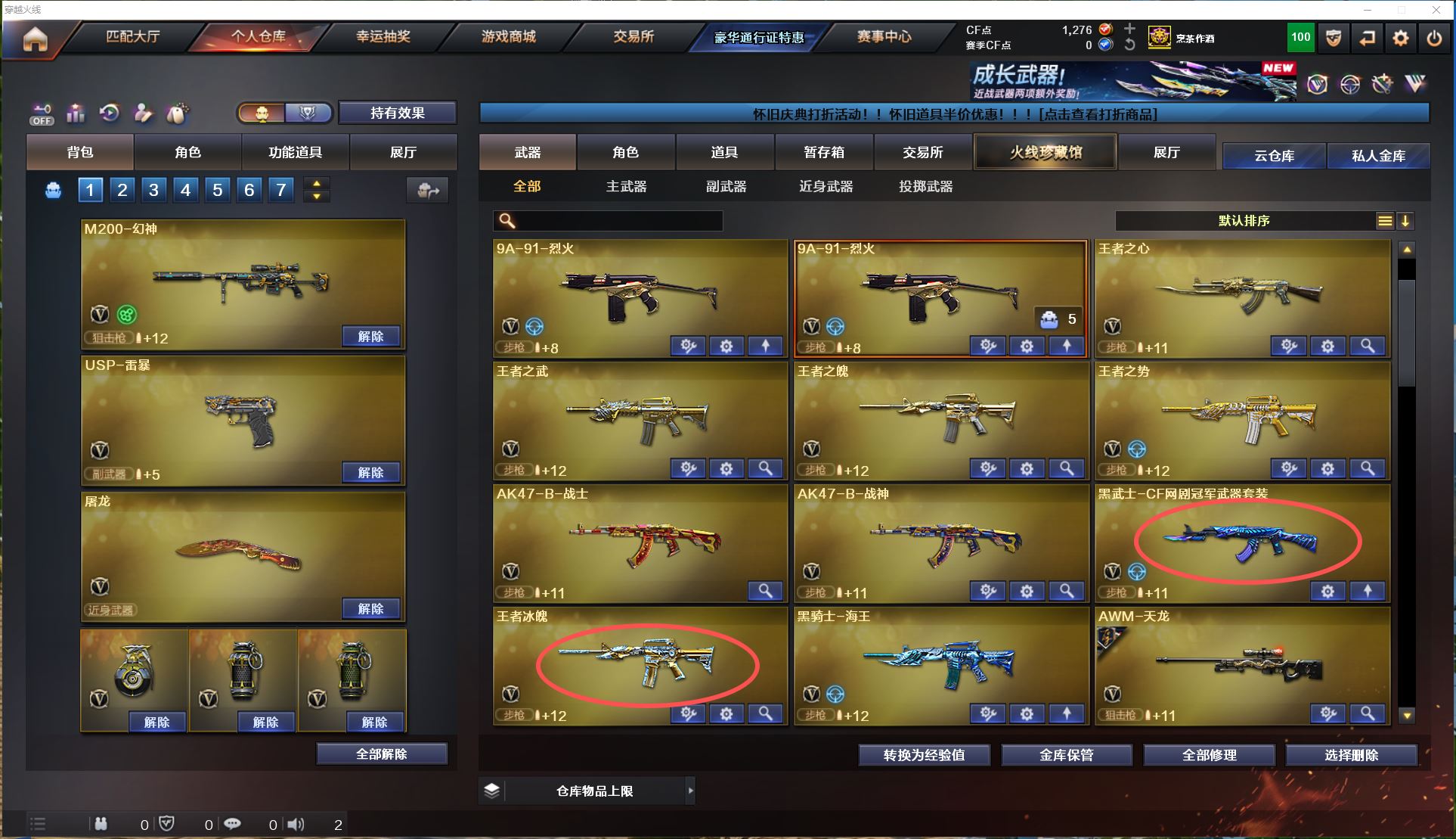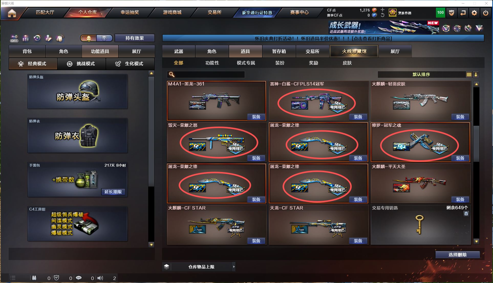 2128 陕西一区极品爆破生化号145v【6手枪极品满配天花板】【6盘6烈】【幻神】【王者幻神】bz金色蔷薇】【白虎】【朱雀】【青龙】【王者冰魄】【堕天神套】【cf网剧冠军套】手枪【usp雷暴x3-cop堕天神x2-荣耀世冠柯尔特】【雷暴投掷物4套】【雷霆投掷物2套】【堕天神投掷物6套】【夜魔投掷物5套】角色【四防王者春-新海豹突击队-春-迷迭香-王者瞳闭月羞花-王者魅影】音效卡【毁灭音效卡-黑骑士音效卡-雷神音效卡】皮肤【黑骑士地狱火-毁灭AGcfpls115冠军-雷神宠儿-雷神荣耀之魄-火麒麟冠军之心-毁灭冠军之怒-雷神白鲨cfpls14冠军-毁灭荣耀之怒-屠龙荣耀之锋x2】