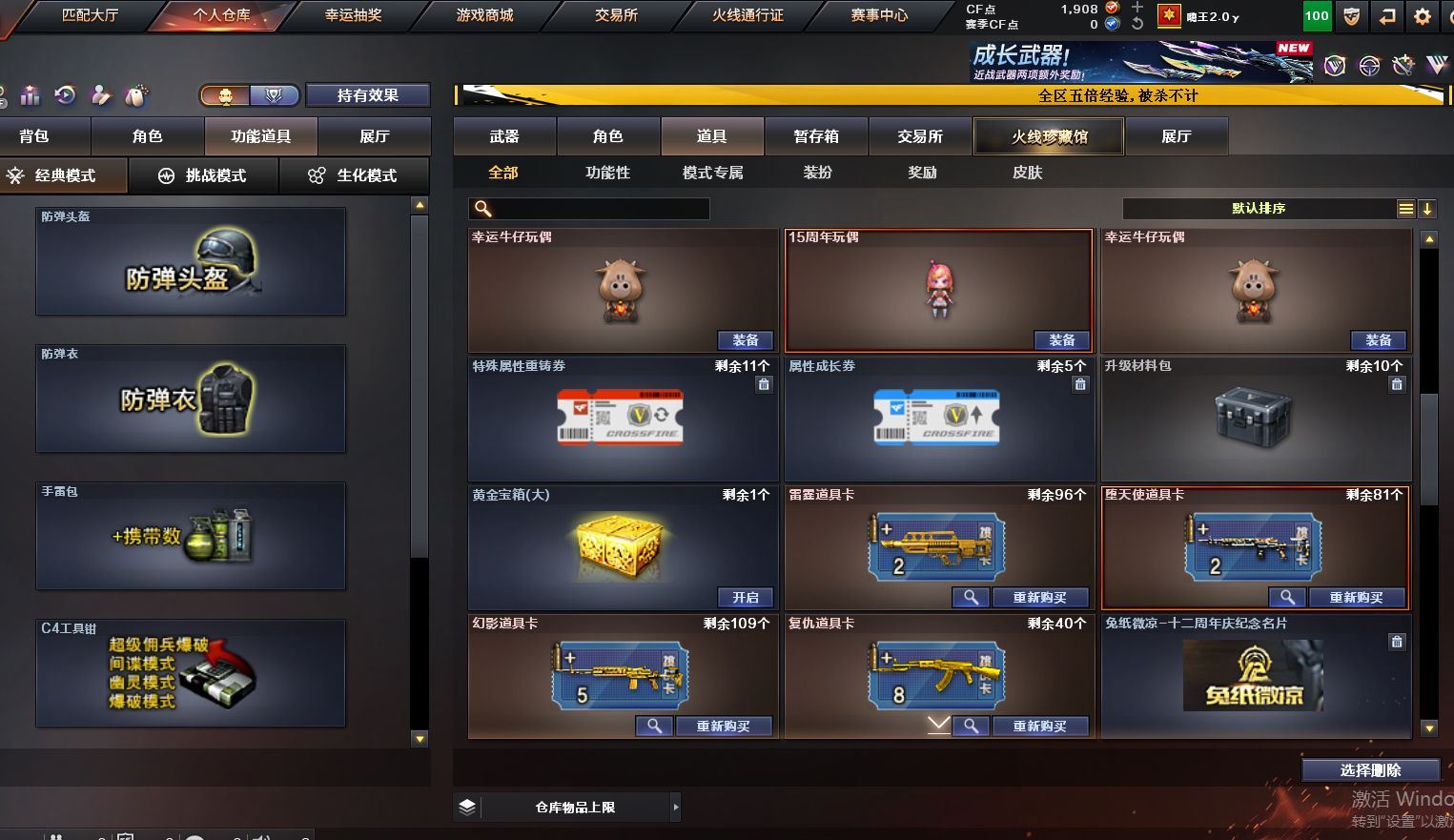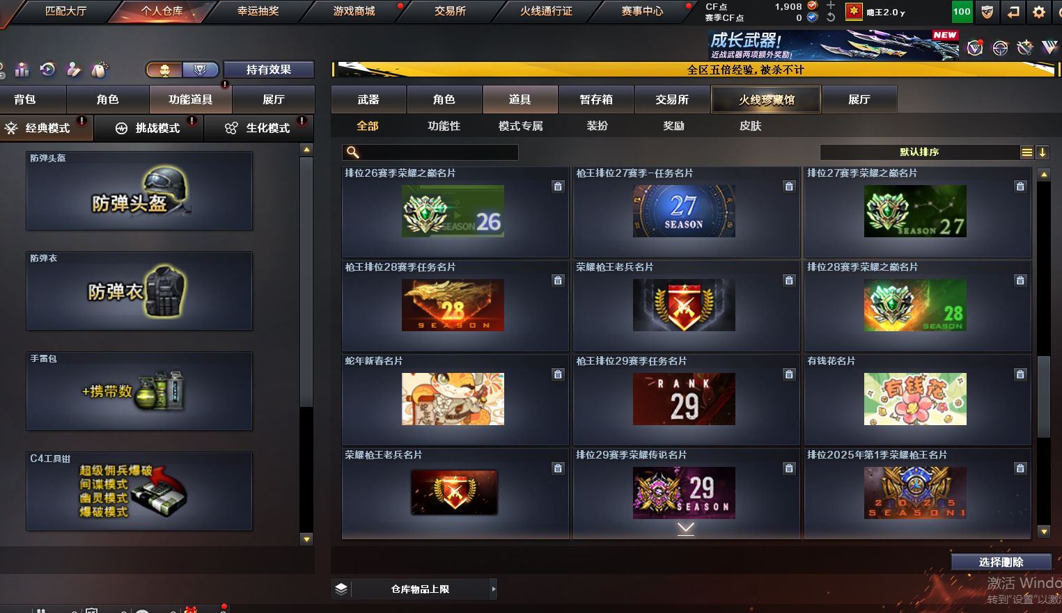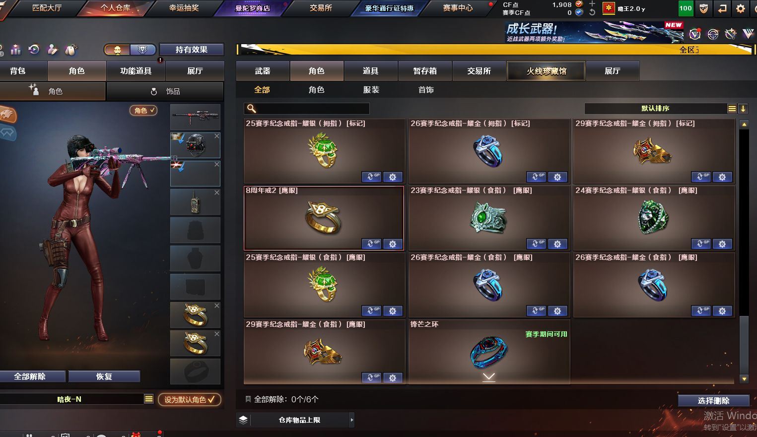 可二次可排位 广西一区-8V-0王者武器数-0炫金武器数【热门武器】:M200-幻神,M4A1-黑骑士【皮肤】:雷神-荣耀之魄,火麒麟-百城,极光-能量核心【角色】:修道士,芳心审判者,风暴女,嘉年华灵狐,灵狐者-七夕宝贝,麻雀,潘多拉-X,蛇姬,斯沃特-X,兔囡囡,维纳斯,雪莉杨-摸金校尉,夜玫瑰-幻能朋克,樱-战斗天使【人偶武器】:AWM-灵狐-15周年嘉年华【暴走生化】:超级对讲机【挑战大师】:冰龙粉碎者-白马银枪,激光毁灭者III-白马银枪,激光毁灭者III,神圣爆裂者-末日III【英雄级武器】:AK47-火麒麟,M4A1-雷神,M4A1-黑骑士,无影-神兵利器,机械迷城-穹宇,Barrett-毁灭,M200-幻神,龙啸-烈火龙威【源级武器】:源·火麒麟,源-黑龙,魂·雷神-维纳斯,魂·雷神-新春神龙,魂-雷神-萌杀,魂·雷神-15周年嘉年华,御·雷神-小白龙,源·黑骑士,魂·黑骑士-现代金属,魂·黑骑士-幻能朋克,源·超新星,源·武圣,源·机械迷城*2,魂·龙血-锋芒破茧*2,源·青龙,M4A1-青龙-掌上穿越火线,魂·HK417-朱雀-凤灵*3,源-金色蔷薇,魂·QBZ03-金色蔷薇-萌杀,魂·QBZ03-金色蔷薇-蛇姬,QBZ03-文殊坊,魂·英雄-湾区光枢,源·天龙,魂·天龙-彼岸花,AWM-裁决-百城联赛天津,魂·裁决-凤灵,源·Barrett-朱雀*2,魂·炼狱-玩具枪,魂·炼狱-月,加特林-炼狱-掌火,魂·修罗-15周年嘉年华,魂·修罗-神兵利器,源·天神,灵·天神-穹宇,魂·屠龙-春桃,魂·屠龙-都是Cfer,魂·屠龙-惊鸿,源·擎天-萌杀,灵·麒麟刺-穹宇【道具】:CFS限定背包,全能枪王背包,虎牙炫彩背包,超级背包,夺命之镰,防化服,金色流光-枪王排位*2,星辰流光-枪王排位,枪王排位28赛季金色流光,枪王排位29赛季金色流光,防弹头盔*5,防弹衣*5,C4工具钳*3,手雷包*2【特殊枪械】:1黑骑士各种道具详情看截图、低价出售找回包 赔、截图展示段位不代 表实际段位,如赛季更新等不可抗拒因素发生变化、时限道具不保证所剩时间、标题未写送点劵默认不送【卖号买号首选亿梦】