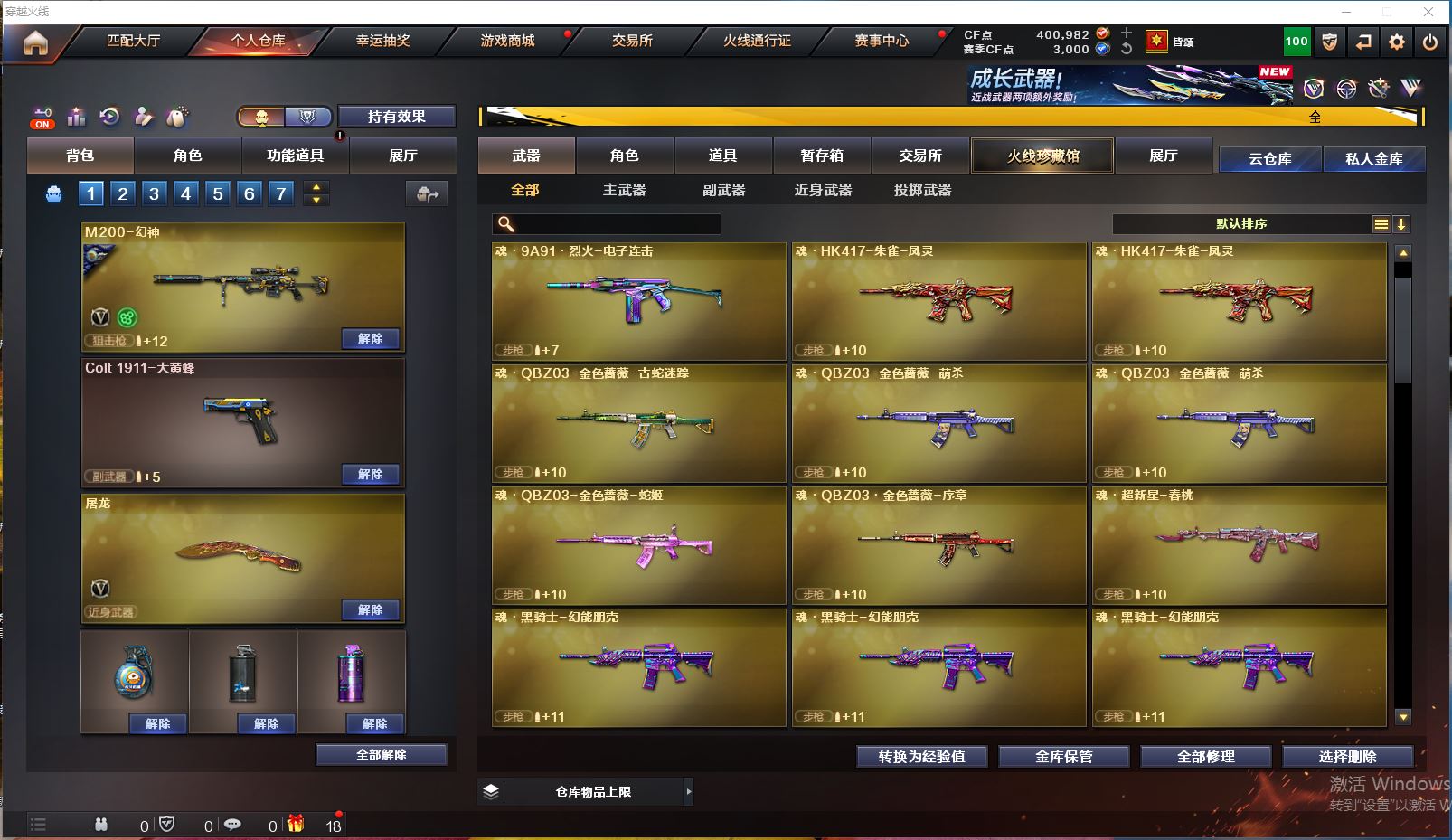 可否排位】可排位 【账号状态】无封号 【区服】河北一区 【VIP】VIP6 【游戏段位】荣耀枪王78豆 【游戏等级】Lv.100 大元帅 【段位排名】109896 【CF点】400982 【VVIP数量】30 【重要套装】 【重要角色】战地猎狐/王者潘多拉/雪域霜狐/葵-阿尔法武装/奇洋探员/虚空 【传说武器】 【英雄武器】_M200-幻神/Barrett-毁灭/AWM-裁决/M4A1-雷神(2)/王者之势-觉醒版/白虎-电玩蓝兔/无影-神兵利器/QBZ03-金色蔷薇/沙鹰-天神/沙鹰-修罗/屠龙/M200-玄龙/G36C-幻影/机械迷城-穹宇/死神-雪域霜狐/金色蔷薇-古蛇迷踪/超新星-热带奇洋/黑武士-锦绣游龙/魂·QBZ03-金色蔷薇-古蛇迷踪/Barrett-碧霄极光/炼狱-百战金芒/修罗-古蛇迷踪/麒麟刺-百战金芒/龙啸-热带奇洋/唐刀-古蛇迷踪/手雷-热带奇洋/烟雾弹-古蛇迷踪/高爆手雷-古蛇迷踪 【王者武器】 【小人枪】火麒麟-零·纪元/HK417-朱雀-蛇隐宗/AWM-灵狐-15周年嘉年华/天龙-曼陀罗/KAC锯式机枪-黑桃战神/夺魂/迷你白狐/魔能飞环-曼陀罗 【其他重要武器】炫金千变/M4A1-再燃火线/AK47-再燃火线/激光毁灭者III-白马银枪/QBZ03-锋芒破茧(2)/海浪AK47-QQ浏览器(2)/纯金AK-47(2)/AK-47-二次元(4)/Scarlight-炫彩(2)/AK47-绚樱(2)/M4A1-电音(4)/XM8-炫彩/M14EBR-炎龙/M4A1-C-海浪/M4A1-Guitar 炫彩/M14EBR-赤血龙魂/M14EBR-天羽/9A-91翡翠/红龙AK47(2)/凤凰之魂/M4A1-圣诞2021/AK47-丹龙/AK47-死亡之翼/AK47-盛典-CFS 2022/M4A1-S-能量核心/M4A1-齐天大圣/M4A1-S-火种/M4A1-秘银赤龙/M4A1-水枪-机甲核心(2)/M4CQBR-AP-孔明/AK47-苍龙/黄金AK-47/M14EBR-情人节2020/AK47-破空冰刃/M4A1-情人节2019/AK47-青龙/AK-12-CFS2017纪念版/9A91-2017万圣节/M82A1-夏日/M200-大黄蜂(3)/AWM-A-彩虹/AWM-A/M200-青花瓷(2)/AWM-小故障/M200-枪王排位/AWM-蓝水晶/AWM-Red/Barrett-耀龙/AWM-A-圣诞2021/AWM-盛典-CFS 2022/M200-朋克/AWM-Pink/AWM-A枪王排位II/AWM-万圣节刀锋/98K-烛龙/Barrett-黑大圣/M200-牡丹/凤凰之力/FN弩炮-CFS2017纪念版/AWM-圣诞/末日裁决者(2)/KAC-小动物/雷蛇加特林/阿梅利轻机枪-暗夜风暴/斯太尔-能量核心(2)/生存之眼/EVOIII-萌杀/EVOⅢ-黑金传说/EVO III-赤血龙魂/MK5-枪王排位/EVO3A1-火线13周年/EVOIII- 曹操/P90-炫彩/神圣爆裂者-末日III(2)/Spas-12-幻能朋克(2)/SPAS-12-雷电核心(3)/AA-12-圣龙/柯尔特-赛博朋克/新USP-枪王排位奖励(2)/COP 357--绚樱/COP-金蝉子-枪王排位(3)/幻影Anaconda-枪王排位/COP357-十二生肖·羊(2)/愤怒公牛左轮-丹龙/幻影沙鹰-枪王排位/沙鹰-枪王排位(2)/Anaconda-雷电核心/mac-10-蒸汽钟表/COP357-绚樱-圣诞/蟒蛇-炫彩/沙漠之鹰-盛典-CFS 2022/Cop357-萌杀(2)/MAC-10-幻能朋克/COP-机甲刑天/愤怒公牛左轮-枪王排位/新USP-怒火大圣/凤凰之灵/轻型军用手斧-再燃火线/军用铁锹-丹龙/招财猫-枪王排位(2)/虹光丛林匕首-枪王排位/收割者-枪王排位/幻影扳手-枪王排位/斩神刀-青帝(2)/鹰爪-枪王排位/虹光女皇利刃-枪王排位/雷神之怒-机甲核心(2)/丛林匕首-枪王排位/蝴蝶刀-枪王排位/高爆手雷-饼干情人/烟雾弹-Orange-虎牙娘/生化手雷-机甲核心/闪光弹-枪王排位(4)/幽灵宝宝手雷/深渊终结者手雷/惨叫鸡手雷-惨叫迹 【重要武器皮肤】幻神-KZ-CFPLS25冠军 皮肤/幻神-传奇欧欧 皮肤/毁灭-战神张飞/毁灭-墨兰皮肤/巴雷特SV皮肤/天龙-CFSTAR/裁决-巅峰荣耀 皮肤/火麒麟-CFSTAR/M4A1-雷神-拼搏/雷神-源计划2.0专属 皮肤/雷神-宇航兔皮肤/雷神-暗月/QBZ03-巅峰荣耀皮肤/QBZ03-荣耀世冠白鲨/修罗-CFSTAR