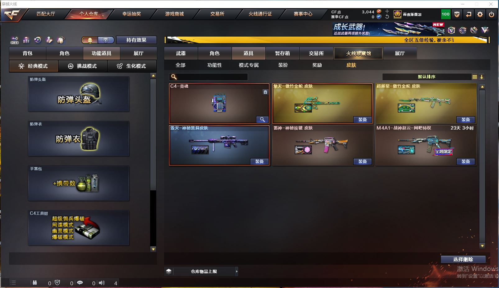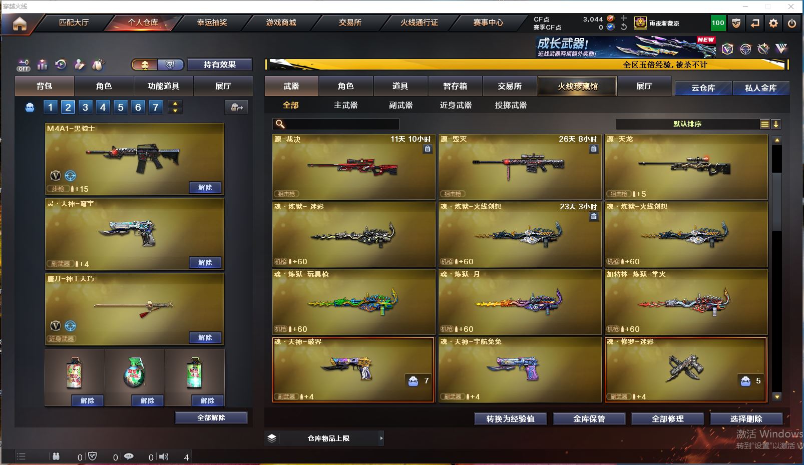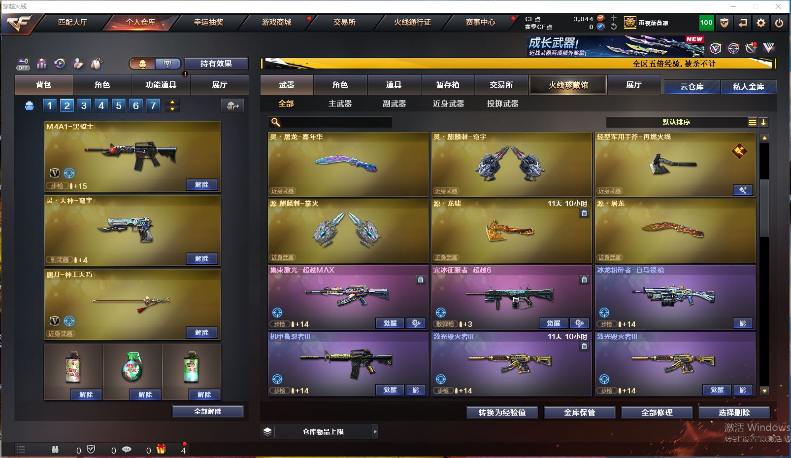 Lv.102段位精英5,VIP3,24V,0传说,0王者,0炫金,3044CF点,游戏年龄1.3年;【重要角色8】:司雨/兰-巾帼英雄/幻面灵狐/葵-阿尔法武装/铁骑荣耀/炽天使/灵狐者-职业经理/宋雨琦;【武器皮肤4】:毁灭-神秘黑洞/擎天-傲竹金蛇/超新星-傲竹金蛇/雷神-神秘按键;【英雄武器20】:barrett-金色蔷薇/Barrett-毁灭/ScarLight-白虎*3/QBZ03-金色蔷薇/M4A1-黑骑士/M4A1-玫瑰精灵/M4A1-再燃火线/HK417-朱雀-电竞之星/USP-神工天巧/炽芒蝶刃/擎天/唐刀-神工天巧/高爆手雷-神工天巧/烟雾弹-神工天巧/屠龙-电竞之星/炼狱-百战金芒/麒麟刺-百战金芒/机械迷城-穹宇;【热门武器1】:1黑骑士;【音效卡4】:ScarLight-白虎音效卡/HK417-朱雀-电竞之星-竞星跃动音效卡/屠龙-电竞之星-竞星跃动音效卡/炼狱-百战金芒-庆典舞曲音效卡;【小人枪22】:降世魔童/迷你火种*2/生化手雷-小钢*2/迷你白狐*8/ScarLight-马枪/迷你裂空之翼*5/迷你波特博士/AWM-灵狐-15周年嘉年华/Mini沃特X;【挑战大师17】:迷你火种*2/神圣爆裂者III/激光毁灭者III/试炼破坏者III/阐释者III/KAC-圣炎切割者III/冰龙粉碎者-白马银枪/末日裁决者/迷你白狐*8;【官方截图】【所有武器的数量可能含有时效性,具体请以游戏内仓库实际拥有为准】【湖北一区】【不可二次实名】