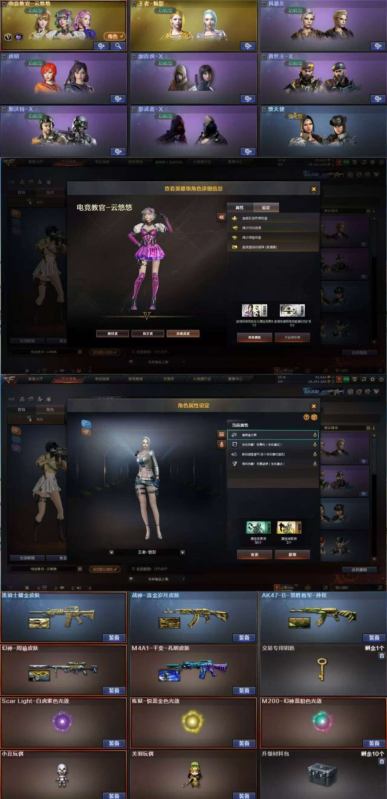 幻神周瑜/白虎/竞技荣光m200/4盘龙炼狱/6烈龙蝴蝶/4防云悠悠/4生化属性王者魅影【23v】 【实名情况】可二次实名 【可否排位】可排位 【账号状态】无封号 【区服】重庆一区 【vip】vip5 【游戏等级】lv.100 高阶大元帅 【段位排名】未上榜 【cf点】33542 【vvip数量】23 【重要套装】 【重要角色】电竞教官-云悠悠/王者-魅影 【传说武器】 【英雄武器】_m200-幻神/m200-竞技荣光/barrett-毁灭/m4a1-死神/m4a1-黑龙/m4a1-黑骑士/_scar light-白虎/ak47-火麒麟/ak47-b-身先士卒/rpk-盘龙(4)/汤姆逊-烈龙(6)/炼狱-悦蓝-觉醒版/擎天-竞技荣光/高爆手雷-幻灵 【王者武器】 【小人呛】斯泰尔-蝴蝶/cop-旗袍/夺魂/迷你深渊冰龙/魔能飞环-曼陀罗/迷你生化手雷 【其他重要武器】炫金雷神/m4a1-十二生肖·龙-雷神/激光毁灭者i/冰龙粉碎者-白马银呛/ak47-冰龙粉碎者/m4a1-秘银赤龙(3)/m4a1-紫狱/m4a1-s-能量核心/m4a1-破空冰刃/ak47-朋克/m4a1呛王排位ii/ak47-呛娘/雷神-赛博朋克/黄金ak-47(2)/9a-91翡翠(2)/ak47-绚樱/m4a1-电音/ak47-烛龙/awm-摸金校尉/awm-a呛王排位ii/m200-庆典-cfs 2021/awm-a-圣诞2021/破天狂龙/雷蛇awm/m200-万圣节/spas-12-黑金/沙鹰-呛王排位(2)/新usp-呛王排位奖励(3)/蟒蛇-炫彩/usp-黑大圣/anaconda-雷电核心/猫猫手套/幻影双斧-呛王排位/唐刀-九五至尊/闪光丹-呛王排位(3)/胜利奖杯盐雾蛋-呛王排位 【重要武器皮肤】幻神-周瑜皮肤/ak47-b-常胜将军-孙权/m4a1-千变-孔明皮肤/黑骑士耀金皮肤/战神-流金岁月皮肤 【重要光效】炼狱-悦蓝金色光效/m200-幻神蓝粉色光效/scar light-白虎紫色光效 【重要音效卡】 【重要戒指】龙眼(死神)/龙眼(鹰)/金蛇戒/银蛇戒/21赛季纪念戒指-耀银(拇指)/22赛季纪念戒指-耀铜(食指)/22赛季纪念戒指-耀银(拇指)/23赛季纪念戒指-耀银(拇指)/24赛季纪念戒指-耀银(拇指)/25赛季纪念戒指-耀铜(食指)/25赛季纪念戒指-耀铜(拇指) 【拥有重要玩偶】