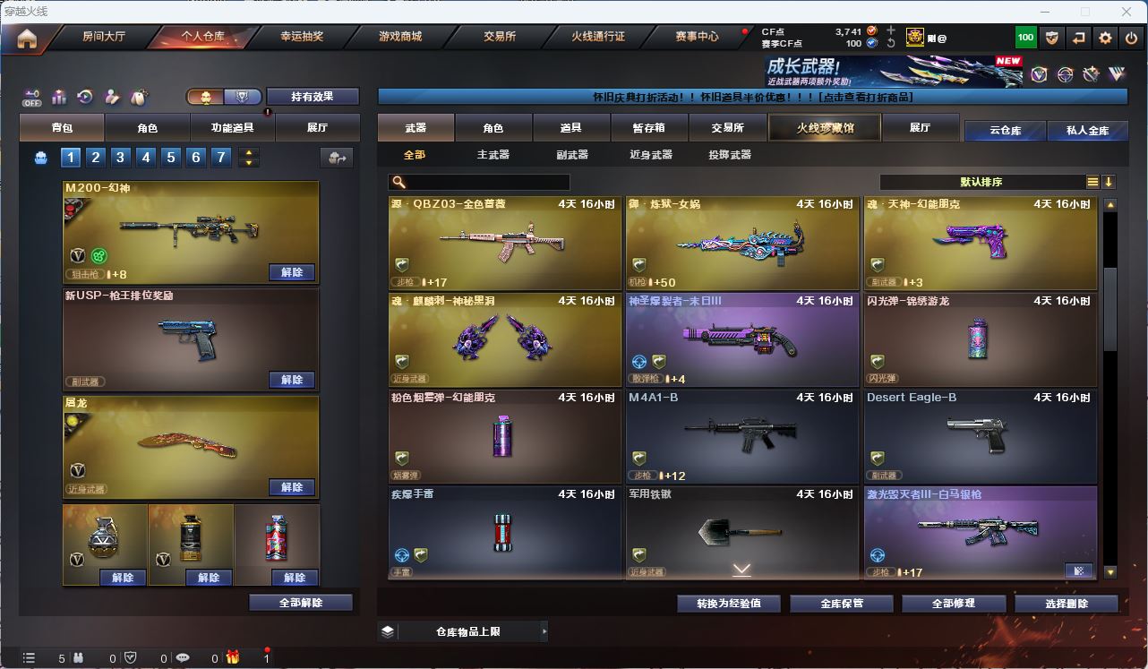 ljh AK035410 湖南二区 vip5 23v【M200-幻神+幻神-宠儿+幻神-N9】【G36C-幻影】【ScarLight-白虎】【QBZ03-金色蔷薇】【M4A1-雷神+雷神-荣耀之魄】【青龙】【5近战 炽芒蝶刃蝴蝶刀 屠龙 幻灵之锋*2 】【5手雷 幻灵雷 】【角色 战地猎狐 云海玲珑】-----安全箱等时效性道具请以游戏内数据为准:详情请看图----截图展示段位不代实际段位,赛季更新等不可抗拒因素发生变化、时限道具不保证所剩时间、标题未写送三角币默认不送】【主播担保+安全至上+性价比 买号卖号只选金牌商家一左友】