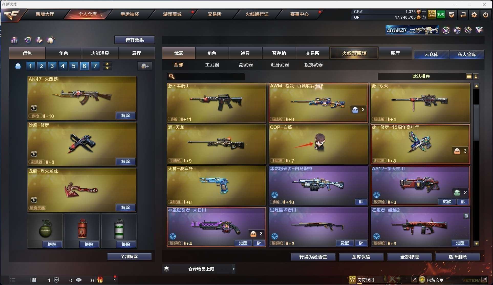 云南一区41v vip5【m200幻神+荣耀世冠白鲨皮肤】【王者风神】【98k星神+呛娘皮肤】【王者白虎】【qbz03金色蔷薇+荣耀世冠白鲨皮肤+王者芳薇】【6烈龙+1盘龙+斯泰尔呛娘暗刃】【hk417朱雀+朱雀音效卡】【极光+极光音效卡】【黑骑士+黑骑士音效卡】【雷神 火麒麟 玄武 无影神兵利器 超新星悦享 极光 】——【热门武器/小人呛】【cop白鲨 斯泰尔呛娘暗刃 】——【cop幻灵*2 修罗*5】——【幻灵之锋 龙啸烈火龙威 麒麟刺 王者云击 擎天云海游龙】——【幻灵投掷武器套装】——【角色】【4防(王者潘多拉 王者影豹)】【截图展示段位不代表实际段位,如赛季更新等不可抗拒因素发生变化、时限道具不保证所剩时间、标题未写送cf点默认不送】更多武器角色道具详情看图 ⭐️买号《无忧》 售后放心无忧⭐️】