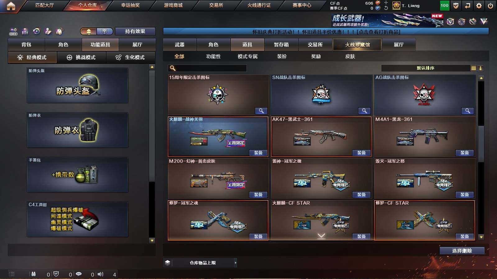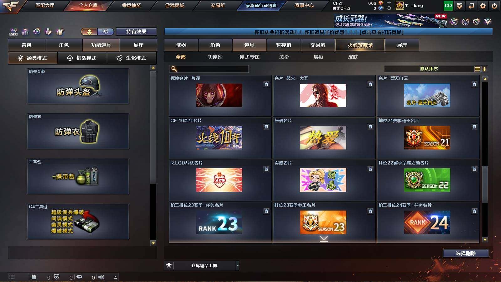 可二次可排位广西一区-40V-2王者武器数-1炫金武器数【热门武器】:QBZ03-金色蔷薇,M200-幻神,M200-竞技荣光,柯尔特-冠军之特,M4A1-黑骑士,加特林-炼狱,金色蔷薇-空,沙鹰-修罗*4,Knife-冠军之刃【王者炫金武器】:炫金毁灭【音效卡】:M200-幻神音效卡,Barrett-毁灭音效卡,QBZ03-金色蔷薇音效卡【皮肤】:M200-幻神-黄忠皮肤,雷神-冠军之魄,火麒麟-战神关羽,毁灭-冠军之怒,M4A1-黑龙-361,AK47-黑武士-361,修罗-冠军之魂【角色】:葵,4防关小雨,4防王者沙漠玫瑰,修道士,暗夜-X,嘉年华灵狐,灵狐者-X,灵狐者-黄金海岸,曼陀罗-X,潘多拉-X,潜龙队-X,斯沃特-X,铁骑荣耀,影武者-X,职业选手【人偶武器】:白虎-迷你小艾,金色蔷薇-空,AWM-灵狐-15周年嘉年华,迷你牛牛【挑战大师】:神圣爆裂者-末日III【英雄级武器】:AK47-火麒麟,M4A1-雷神,M4A1-黑骑士,AK47-无影,M4A1-死神,AK47-黑武士,M4A1-武圣,无影-神兵利器,QBZ03-金色蔷薇,王者之魄-觉醒版,王者之烈-觉醒版,白虎之魄-觉醒版,AWM-天龙,Barrett-毁灭,M200-幻神,M200-竞技荣光,加特林-炼狱,沙鹰-修罗*4,柯尔特-冠军之特,Glock18-武圣,屠龙,龙啸,擎天,龙啸-烈火龙威,高爆手雷-竞技荣光*3,闪光弹-竞技荣光*3,烟雾弹-竞技荣光*4,烟雾弹-神工天巧【其他武器】:源-千变,源·雷神,AWM-裁决-百城联赛天津,源·毁灭,加特林-炼狱-掌火【道具】:AG战队炫彩背包,战舰背包,炫彩背包,变异宝贝,夺命之镰,防化服*2,金色流光-枪王排位*2,星辰流光-枪王排位,枪王排位28赛季金色流光,枪王排位29赛季金色流光,斯沃特表情,防弹头盔*2,防弹衣*2,C4工具钳,手雷包【特殊枪械】:1黑骑士,1炼狱各种道具详情看截图、低价出售找回包 赔、截图展示段位不代 表实际段位,如赛季更新等不可抗拒因素发生变化、时限道具不保证所剩时间、标题未写送点劵默认不送【卖号买号首选亿梦】