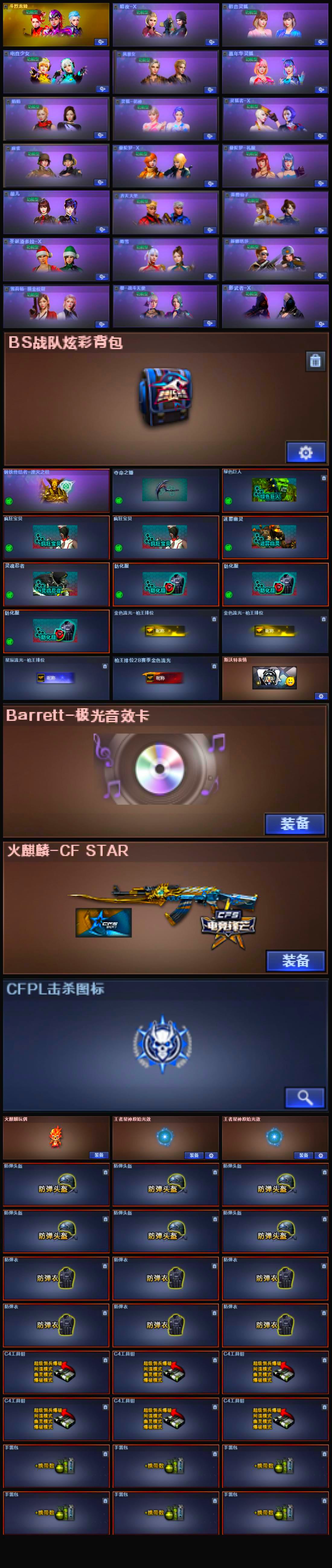 王者风神觉醒版+王者星神+G36C幻影+BSK94金蚀+黄金猫猫手套白鲨+天罚+炼狱百战金芒 【可否排位】可排位 【账号状态】无封号 【区服】河南一区 【VIP】VIP5 【游戏段位】荣耀之巅53豆 【游戏等级】Lv.100 大元帅 【段位排名】241565 【CF点】1194 【VVIP数量】19 【重要套装】 【重要角色】葵-阿尔法武装/电竞少女 【传说武器】 【英雄武器】AK12-天启/云龙扇/屠龙(2)/高爆手雷-幻灵/烟雾弹-幻灵/闪光弹-幻灵(2)/天罚-斗烈龙驹/M4A1-苍鸣雷神/机械迷城-穹宇/G36C-幻影/Barrett-碧霄极光/VSK-94-金蚀/王者风神-觉醒版/炼狱-百战金芒/屠龙-斗烈龙驹/麒麟刺-百战金芒/龙啸-烈火龙威 【王者武器】王者星神 【小人枪】火麒麟-零·纪元(2)/AWM-灵狐-15周年嘉年华(2)/迷你牛牛/魔能飞环-曼陀罗 【其他重要武器】炫金火麒麟/炫金毁灭/M4A1-再燃火线/激光毁灭者III-白马银枪(2)/M4A1-万圣节/AK-47-二次元/纯金AK-47/黄金AK-47/海浪AK47-QQ浏览器/M4A1-紫狱/M4A1-圣诞2021(3)/AK47-盛典-CFS 2022/M4A1-S-能量核心/AK47-齐天大圣/M14EBR-情人节2020/Barrett-战龙/98K-烛龙/M200-万圣节/AWM-Pink/AWM-S/AWM-A/98K-炫彩/M200-大黄蜂/暗金M200/百城AWM/蓝色魅影/AWM-盛典-CFS 2022(2)/M200-朋克/M200-青帝/KAC-小动物(3)/EVOIII-机甲核心/斯泰尔-巧克力/MK5-枪王排位/死亡之眼-庆典-CFS 2021/死亡之眼/Spas-12-幻能朋克/柯尔特-百城(2)/Colt1911-彩蝶(3)/幻影沙鹰-枪王排位/愤怒公牛左轮-枪王排位(2)/沙鹰-枪王排位(2)/新USP-枪王排位奖励(3)/沙漠之鹰-盛典-CFS 2022/Anaconda-黑金神龙/USP-黑大圣/COP-青帝(2)/轻型军用手斧-再燃火线/虹光女皇利刃-枪王排位/招财猫-枪王排位/黄金猫猫手套-白鲨/蝴蝶刀-枪王排位/Laser Sword-夏日/虹光鹰爪-枪王排位/斩神刀-青帝/闪光弹-枪王排位(2) 【重要武器皮肤】天龙-CFSTAR/火麒麟-CFSTAR/雷神-神秘按键 皮肤/天启-暗月/修罗-百战金芒 皮肤/修罗-CFSTAR 【重要光效】王者星神原始光效/龙啸-盛典烟花光效 【重要音效卡】Barrett-极光音效卡/Barrett-碧霄极光音效卡/炼狱-百战金芒-庆典舞曲音效卡 【重要戒指】8周年戒1/15周年限定戒指/龙眼(死神)/22赛季纪念戒指-耀铜(食指)/23赛季纪念戒指-耀银(拇指)/23赛季纪念戒指-耀银(食指)/24赛季纪念戒指-耀铜(食指)/24赛季纪念戒指-耀银(拇指)/25赛季纪念戒指-耀银(食指)/25赛季纪念戒指-耀银(拇指) 【拥有重要玩偶】