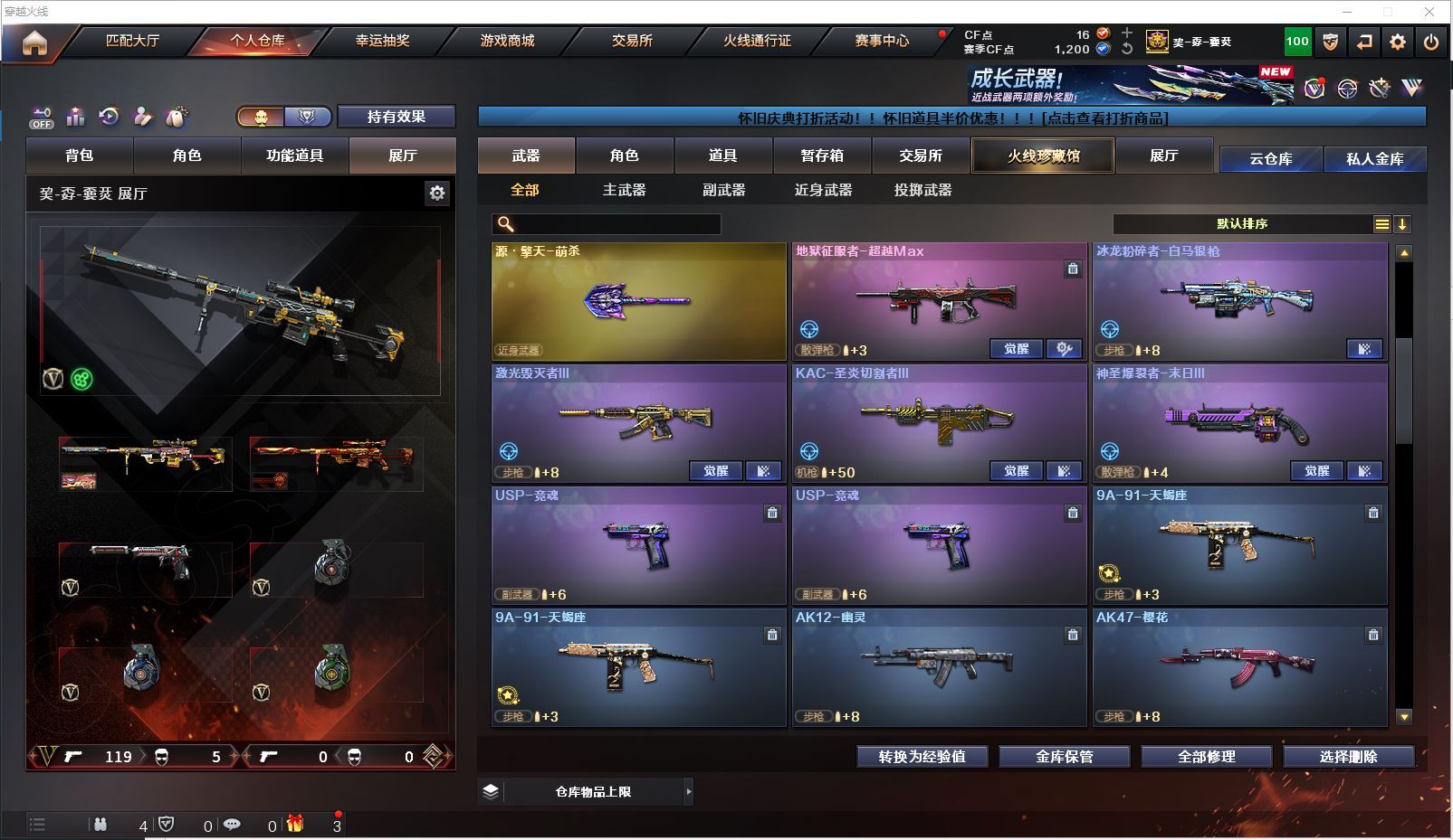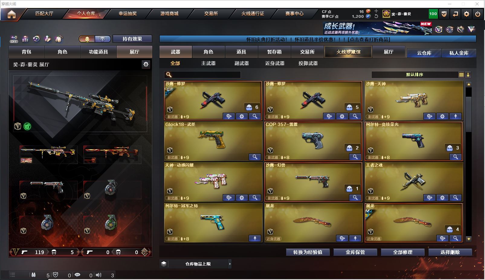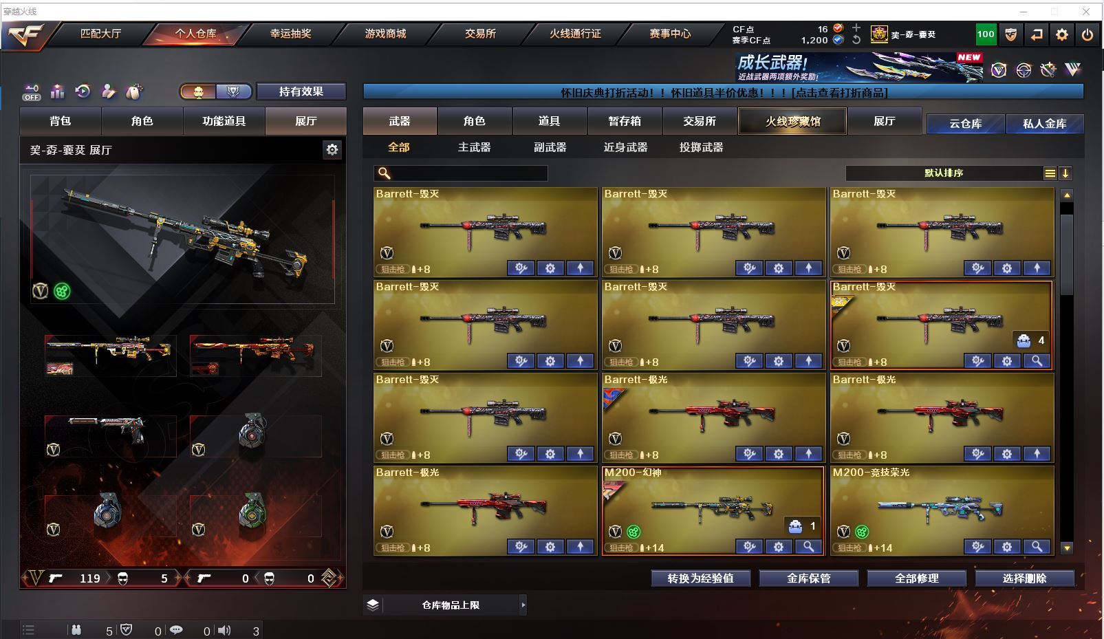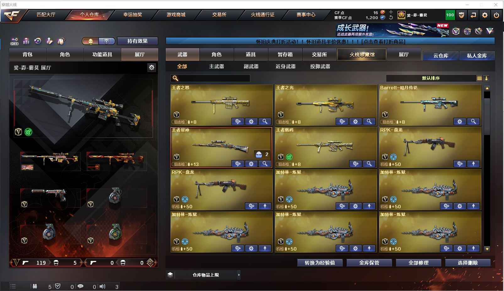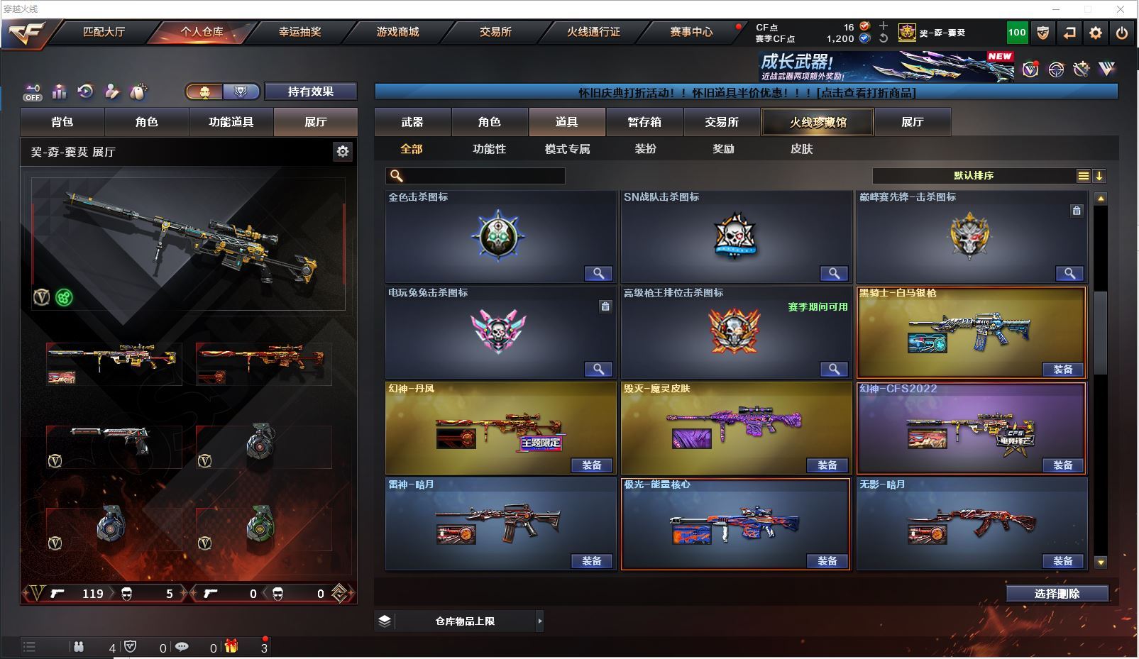 m75 特价幻兽全装精品号👇【北方大区/112V/vip1】【鹰】【竞技荣光套/武圣套/6炼狱/6修罗】【5烈龙】【M200-幻神/幻神-CFS2022/幻神-丹凤】【M200-竞技荣光】【王者星神】【柯尔特-冠军之特/柯尔特-竞技荣光】【Scar Light-白虎】【QBZ03-金色蔷薇/金色蔷薇-枪娘阿敏 皮肤】【M4A1-雷神6/M4A1-雷神-CFS 2019/雷神-暗月/雷神-能量核心】【Glock18-武圣/沙鹰-幻兽/雷霆之契】【Barrett-毁灭7/Barrett-毁灭音效卡/毁灭-荣耀之怒/毁灭-CFS2020/毁灭-魔灵皮肤/毁灭-暗月3】【AK47-火麒麟4/火麒麟-CFSTAR4/火麒麟-轻羽皮肤/火麒麟-心动糖果/火麒麟-雷神/火麒麟-平天大圣】【M4A1-黑骑士3/黑骑士-海王2】【M4A1-黑龙4】【AK47-无影/无影-神兵利器】【AK47-黑武士】【AWM-天龙2/AWM-天龙-传奇70KG】【Barrett-极光3/极光-能量核心】【M4A1-死神2/M4A1-千变3/M4A1-千变-孔明皮肤】【汤姆逊-烈龙5/烈龙-悦心】【RPK-盘龙2】【加特林-炼狱6】【死亡之眼3】【沙鹰-修罗8/修罗-CFSTAR3/修罗-星空】【沙鹰-天神/天神-动感闪耀】【女皇利刃-幻兽】【麒麟刺2】【擎天2/擎天-竞技荣光】【屠龙3/屠龙-荣耀之锋2】【龙啸3】【电竞教官-云悠悠/王者涂鸦/王者涂鸦/王者零-华冠丽服/王者-零/王者-瞳-闭月羞花/龙儿/莎莎/乔伊教练/灵狐者-黄金海岸/娟娟/斯沃特-X/救世主-X/影武者-X/铁骑荣耀/幻影/堕天使/复仇者】【M4A1-玫瑰精灵/M4A1-武圣】【AK47-B-常胜将军/AK47-B-身先士卒/AK47-B-战士/AK-47-猩红传说/玫瑰精灵-悦动2】【AK47-黑鲨/AK47-机械迷城2/AK12-天启3】【AN94-超新星/超新星-悦享2】【Barrett-暗月传说】【Colt1911-小故障/毛瑟-玄龙/Colt 1911-大黄蜂2/COP 357-青龙/新USP-枪王排位奖励5】【斩魔刀/斩神刀2/金刚伞-电玩红兔/迷你深渊冰龙】【神圣爆裂者-末日III/KAC-圣炎切割者III/激光毁灭者III/冰龙粉碎者-白马银枪/征服者4】【斯泰尔-巧克力2/轻型军用手斧-镜】【C.A.T/M4A1-刀锋/M4A1-小黄鸡/COP-旗袍/火麒麟-灵狐/金色小号】【王者凰鸣/王者之心/王者之影2/王者之刺/王者之魄/王者之戮3/王者冰魄/王者之光/王者之魂/王者之锋/王者之击/王者之武2】【高爆手雷-幻兽/闪光弹-幻兽/烟雾弹-幻兽】【高爆手雷-竞技荣光2/闪光弹-竞技荣光2/烟雾弹-竞技荣光2】【炫金火麒麟/炫金无影/炫金武士/炫金雷神/炫金修罗3】【语音特效-机器人】【透明头盔/运动护目镜/超级背包/炫彩背包/防弹头盔2/防弹衣3/C4工具钳2/手雷包2/防化服2】