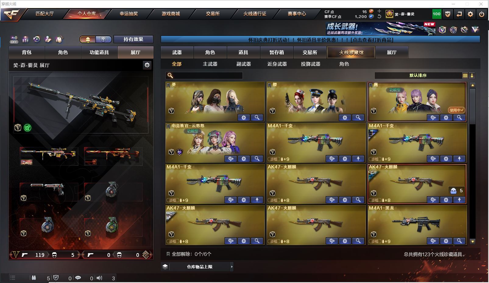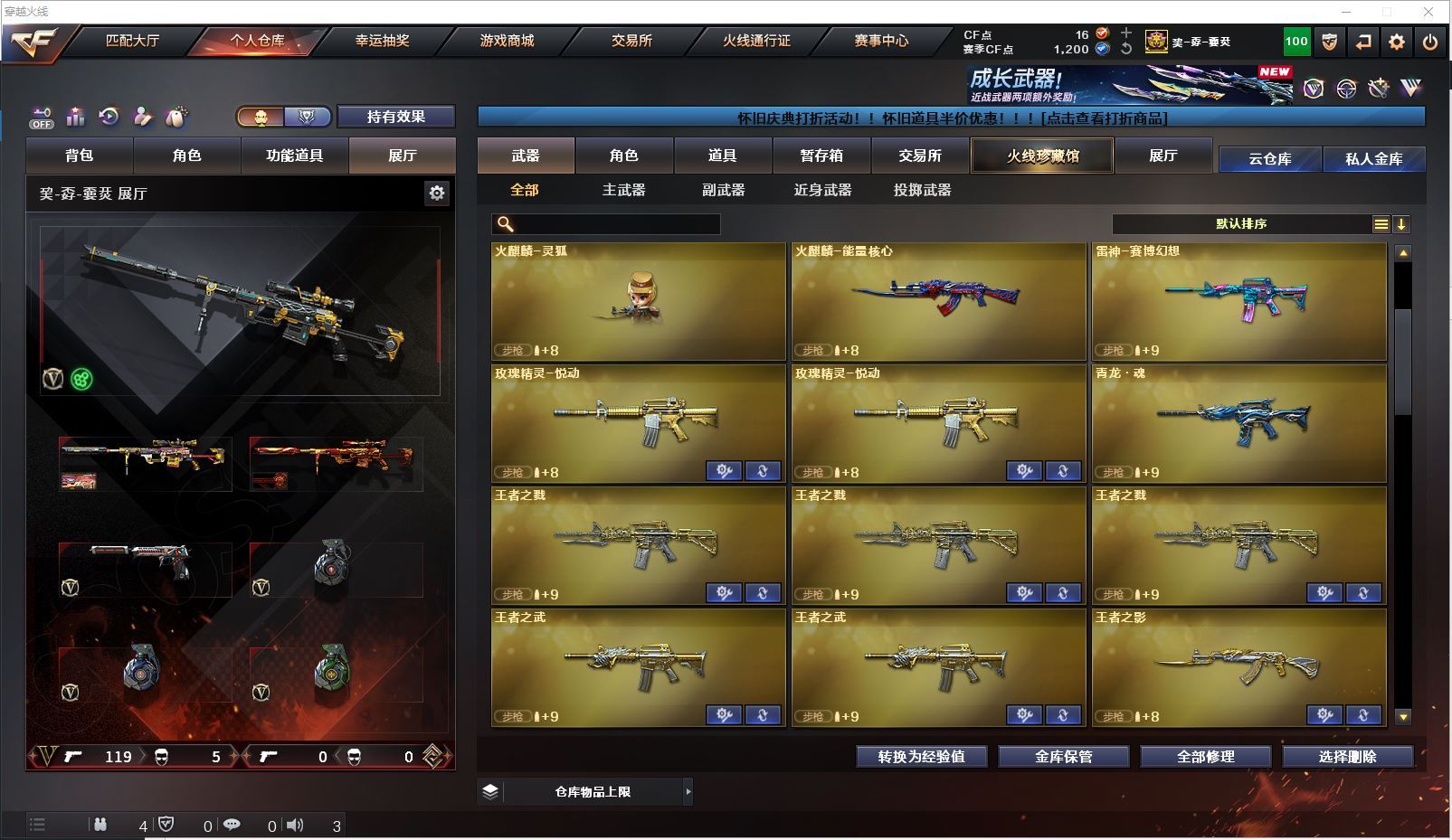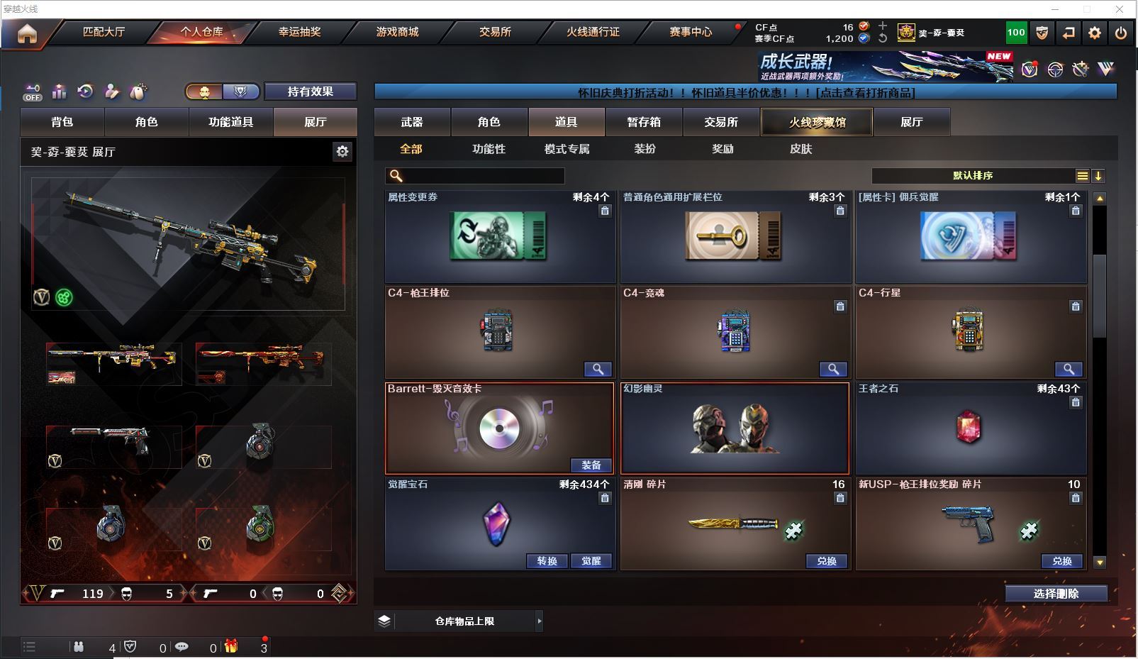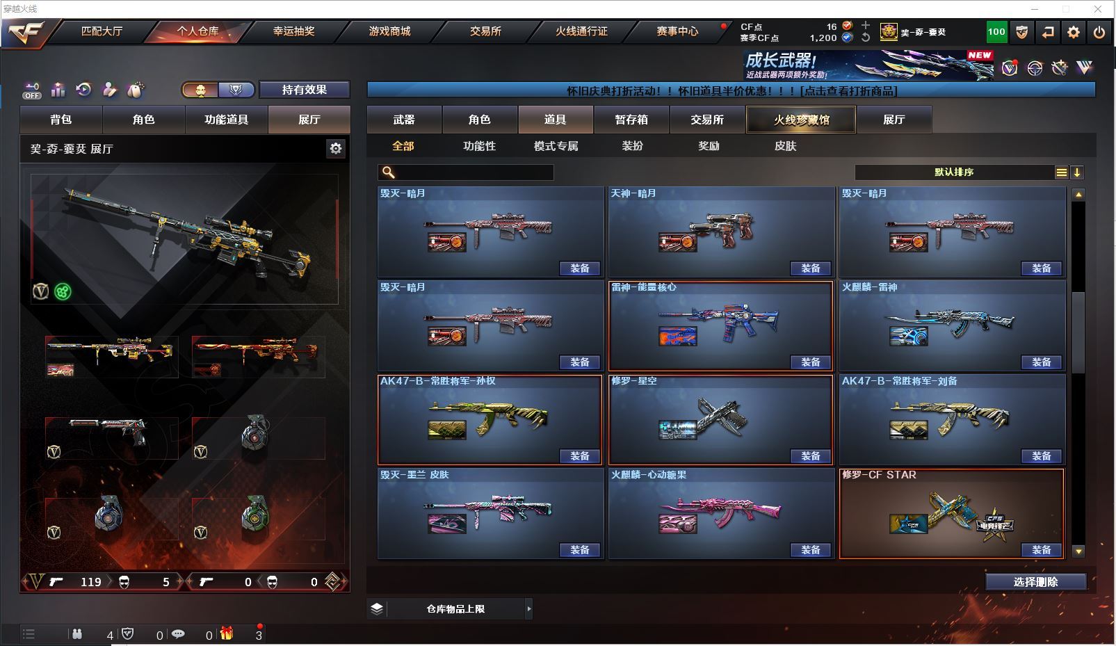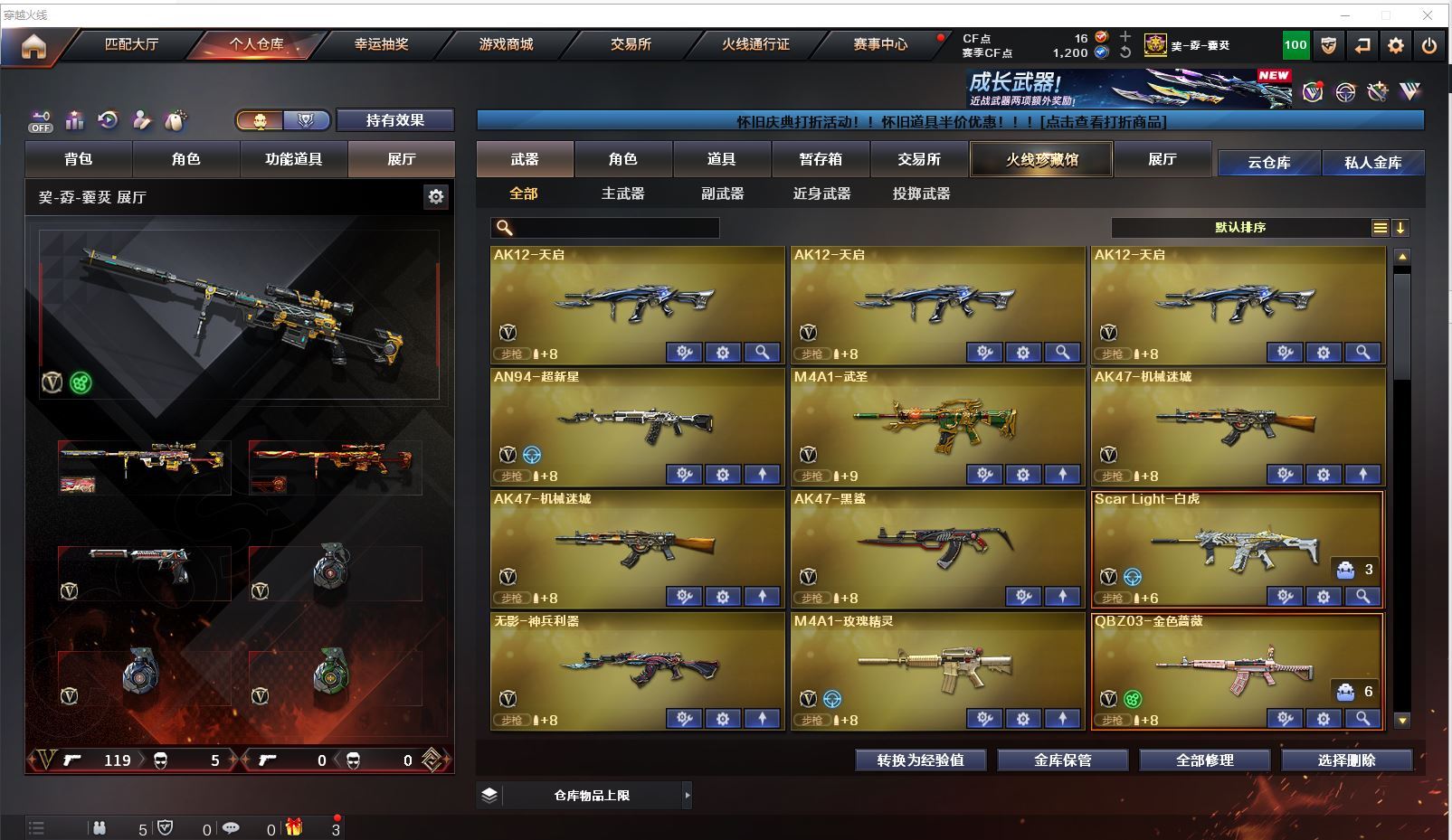 m75 特价幻兽全装精品号👇【北方大区/112V/vip1】【鹰】【竞技荣光套/武圣套/6炼狱/6修罗】【5烈龙】【M200-幻神/幻神-CFS2022/幻神-丹凤】【M200-竞技荣光】【王者星神】【柯尔特-冠军之特/柯尔特-竞技荣光】【Scar Light-白虎】【QBZ03-金色蔷薇/金色蔷薇-枪娘阿敏 皮肤】【M4A1-雷神6/M4A1-雷神-CFS 2019/雷神-暗月/雷神-能量核心】【Glock18-武圣/沙鹰-幻兽/雷霆之契】【Barrett-毁灭7/Barrett-毁灭音效卡/毁灭-荣耀之怒/毁灭-CFS2020/毁灭-魔灵皮肤/毁灭-暗月3】【AK47-火麒麟4/火麒麟-CFSTAR4/火麒麟-轻羽皮肤/火麒麟-心动糖果/火麒麟-雷神/火麒麟-平天大圣】【M4A1-黑骑士3/黑骑士-海王2】【M4A1-黑龙4】【AK47-无影/无影-神兵利器】【AK47-黑武士】【AWM-天龙2/AWM-天龙-传奇70KG】【Barrett-极光3/极光-能量核心】【M4A1-死神2/M4A1-千变3/M4A1-千变-孔明皮肤】【汤姆逊-烈龙5/烈龙-悦心】【RPK-盘龙2】【加特林-炼狱6】【死亡之眼3】【沙鹰-修罗8/修罗-CFSTAR3/修罗-星空】【沙鹰-天神/天神-动感闪耀】【女皇利刃-幻兽】【麒麟刺2】【擎天2/擎天-竞技荣光】【屠龙3/屠龙-荣耀之锋2】【龙啸3】【电竞教官-云悠悠/王者涂鸦/王者涂鸦/王者零-华冠丽服/王者-零/王者-瞳-闭月羞花/龙儿/莎莎/乔伊教练/灵狐者-黄金海岸/娟娟/斯沃特-X/救世主-X/影武者-X/铁骑荣耀/幻影/堕天使/复仇者】【M4A1-玫瑰精灵/M4A1-武圣】【AK47-B-常胜将军/AK47-B-身先士卒/AK47-B-战士/AK-47-猩红传说/玫瑰精灵-悦动2】【AK47-黑鲨/AK47-机械迷城2/AK12-天启3】【AN94-超新星/超新星-悦享2】【Barrett-暗月传说】【Colt1911-小故障/毛瑟-玄龙/Colt 1911-大黄蜂2/COP 357-青龙/新USP-枪王排位奖励5】【斩魔刀/斩神刀2/金刚伞-电玩红兔/迷你深渊冰龙】【神圣爆裂者-末日III/KAC-圣炎切割者III/激光毁灭者III/冰龙粉碎者-白马银枪/征服者4】【斯泰尔-巧克力2/轻型军用手斧-镜】【C.A.T/M4A1-刀锋/M4A1-小黄鸡/COP-旗袍/火麒麟-灵狐/金色小号】【王者凰鸣/王者之心/王者之影2/王者之刺/王者之魄/王者之戮3/王者冰魄/王者之光/王者之魂/王者之锋/王者之击/王者之武2】【高爆手雷-幻兽/闪光弹-幻兽/烟雾弹-幻兽】【高爆手雷-竞技荣光2/闪光弹-竞技荣光2/烟雾弹-竞技荣光2】【炫金火麒麟/炫金无影/炫金武士/炫金雷神/炫金修罗3】【语音特效-机器人】【透明头盔/运动护目镜/超级背包/炫彩背包/防弹头盔2/防弹衣3/C4工具钳2/手雷包2/防化服2】